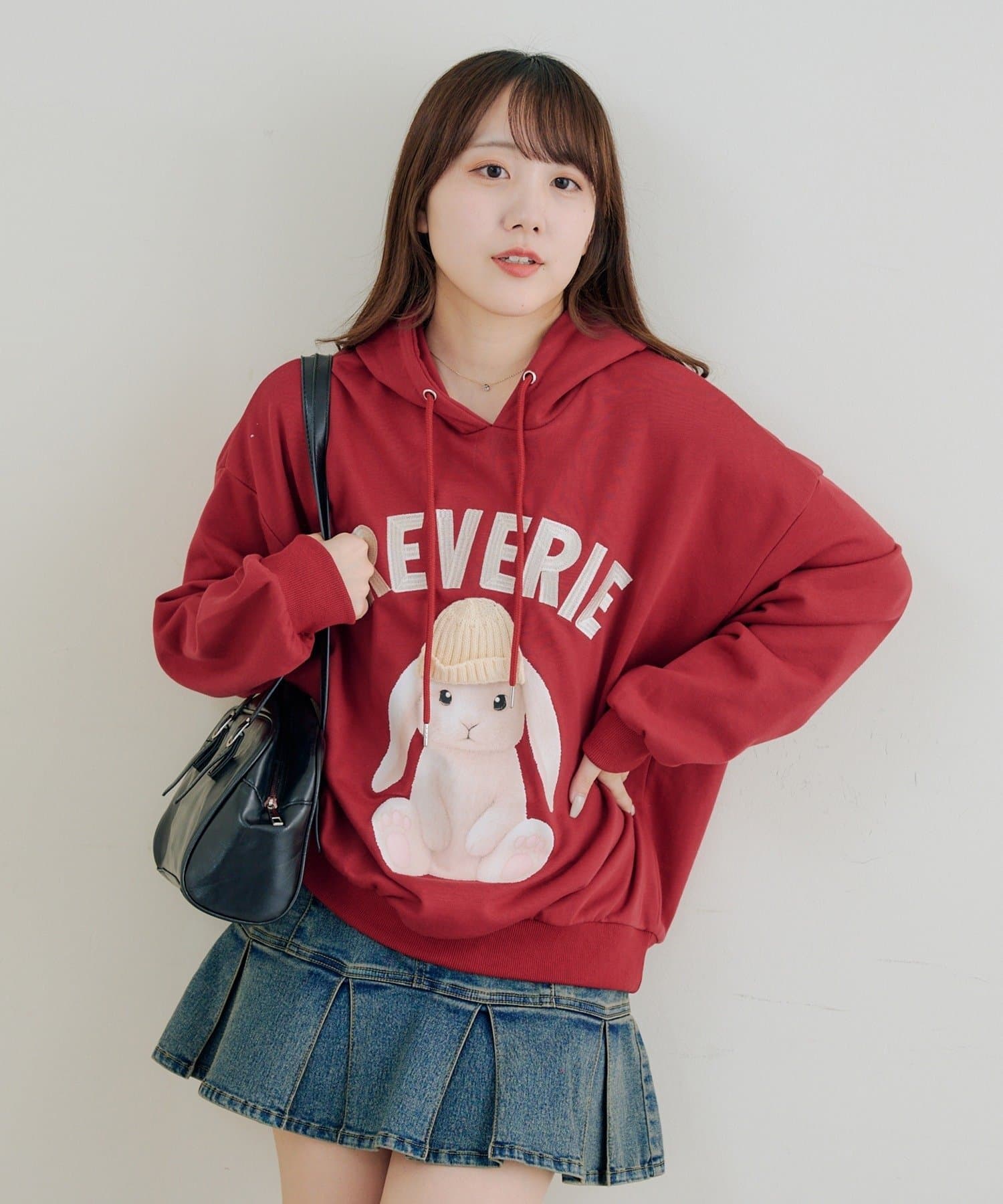 ・ニット帽をかぶったウサギデザインが可愛いパーカー