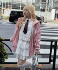 ・キャミワンピースにさらっと羽織って、抜け感のある着こなしに。アクセサリーで上品さをプラス