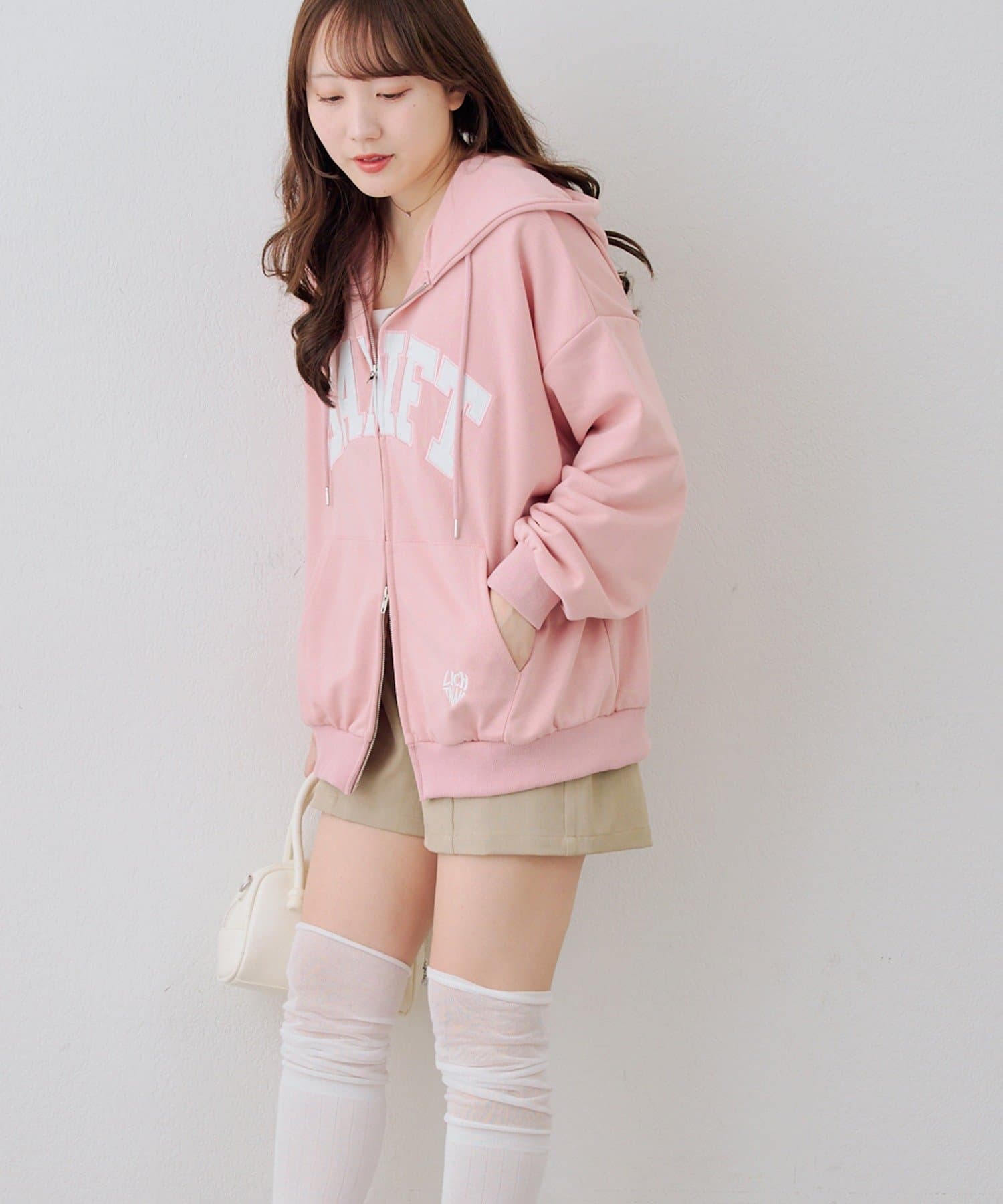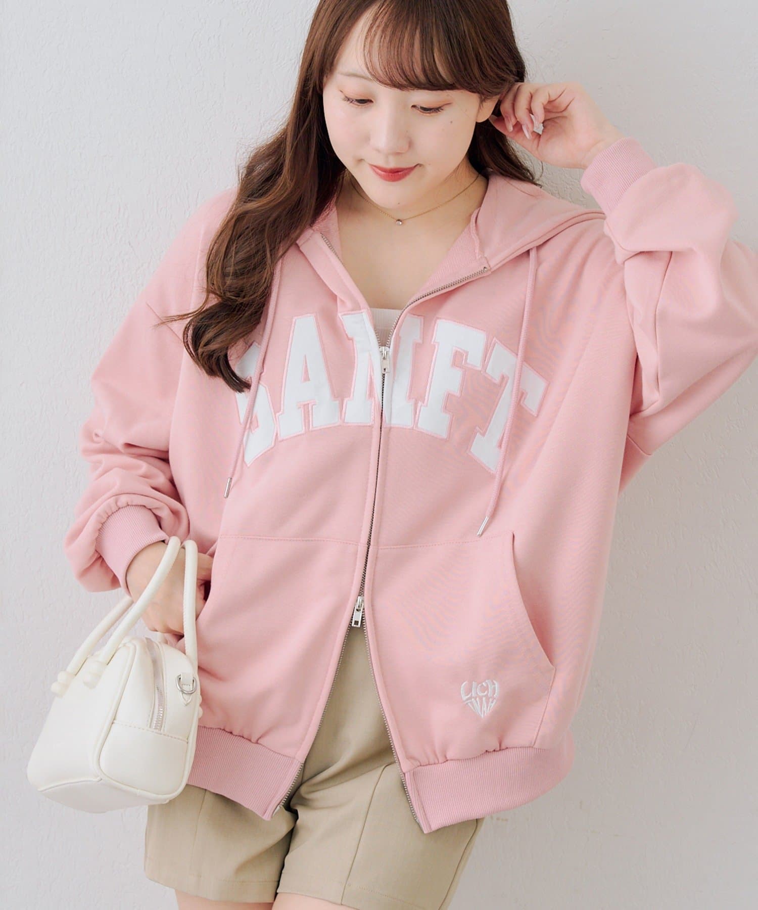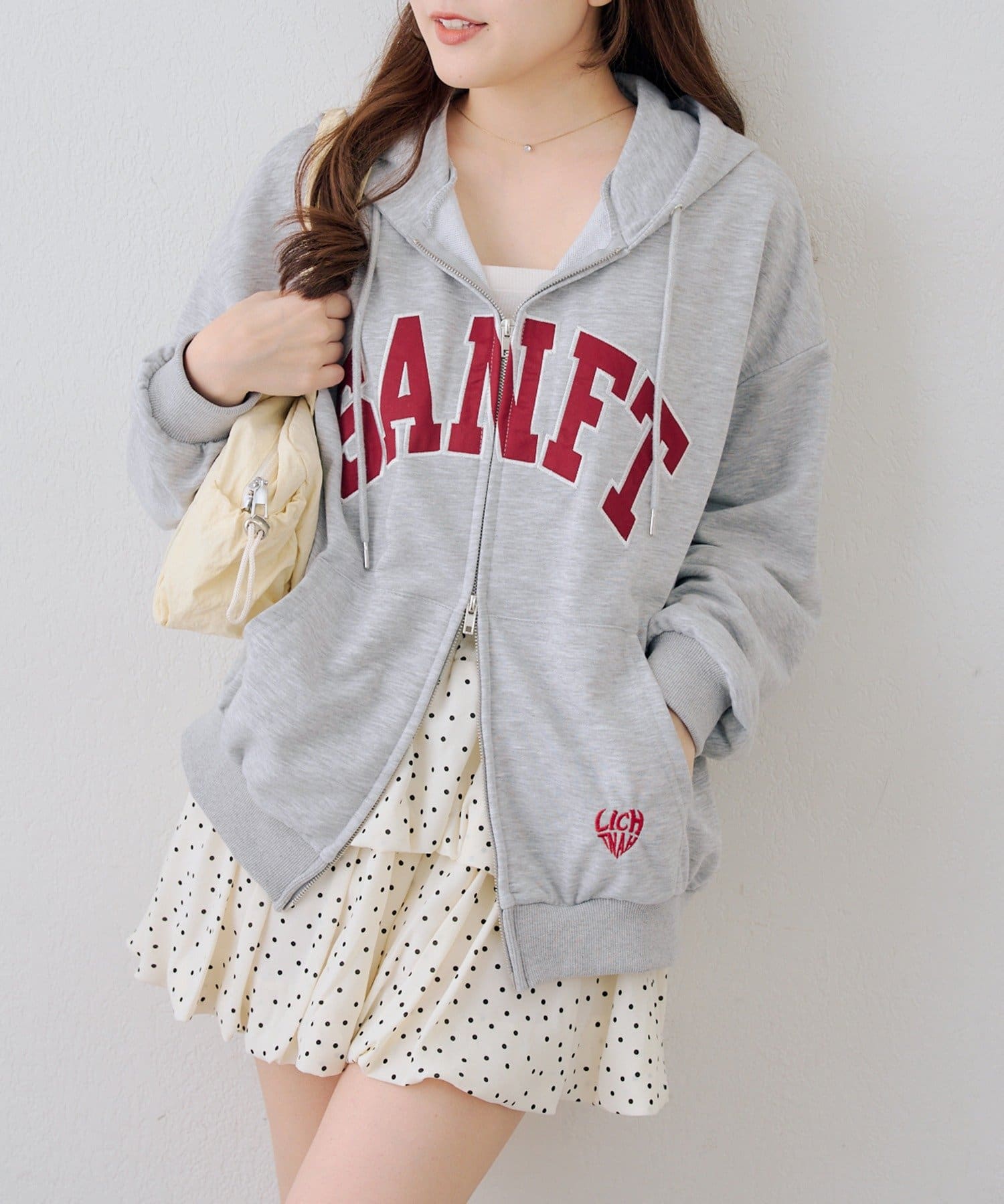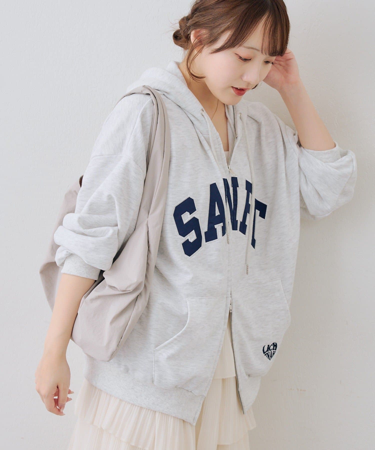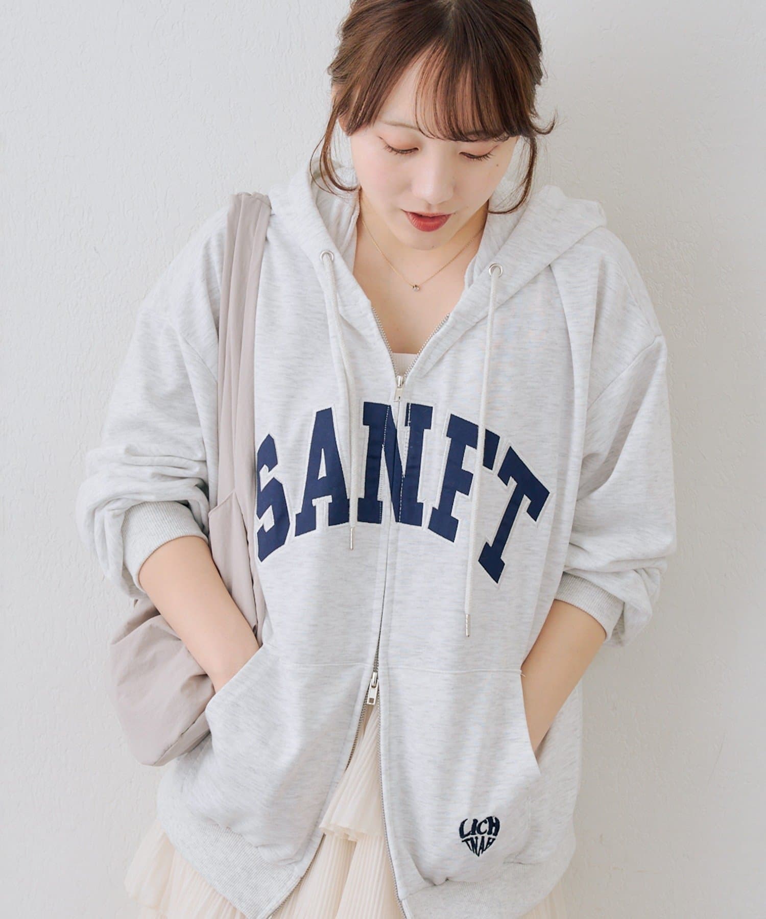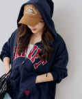 ・カレッジロゴが目を引く、カジュアル可愛いジップアップパーカー