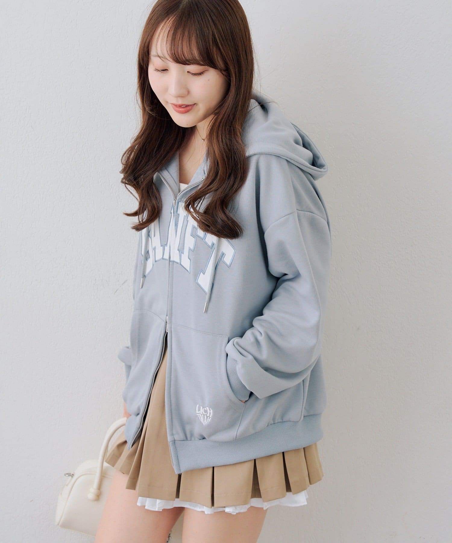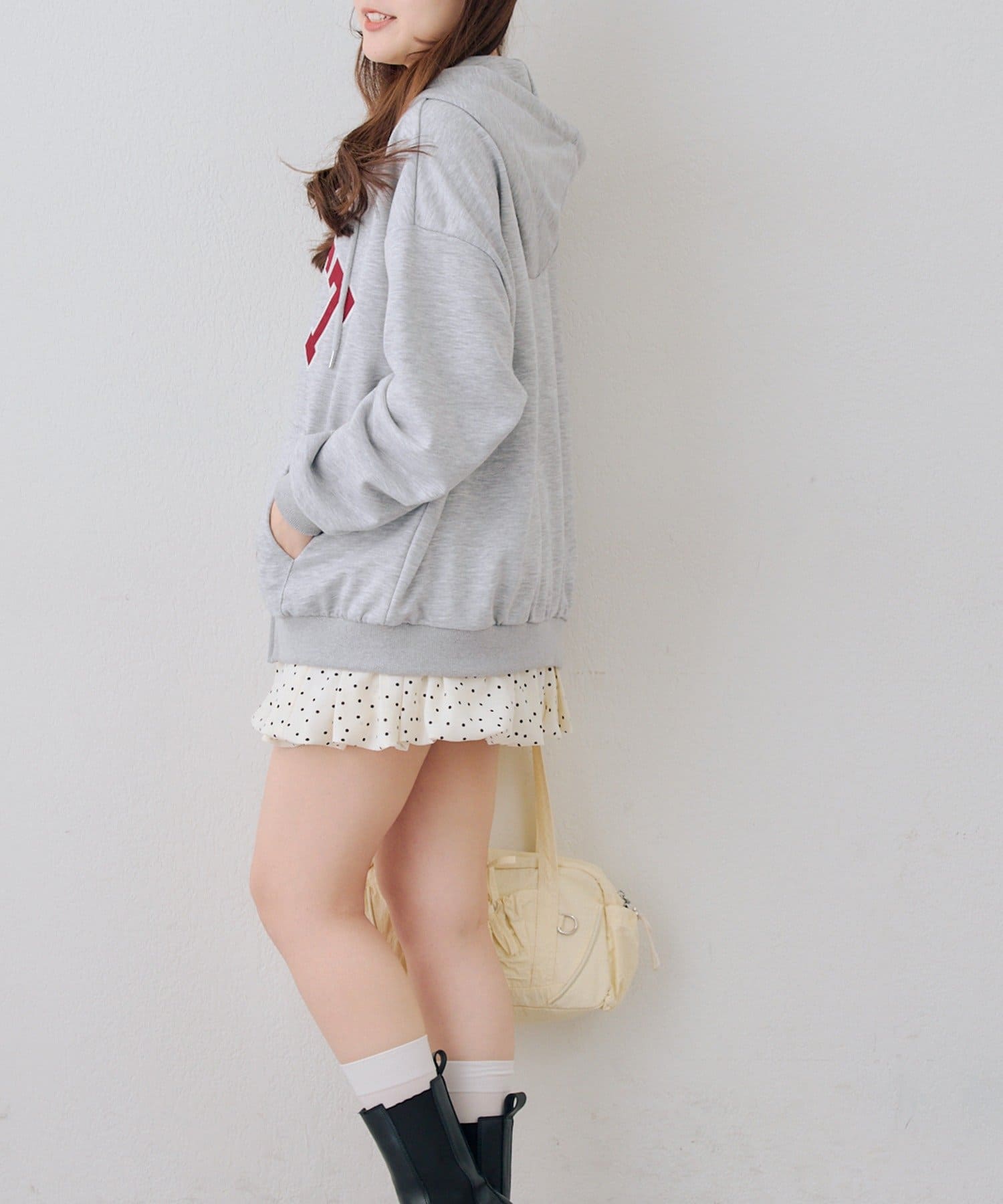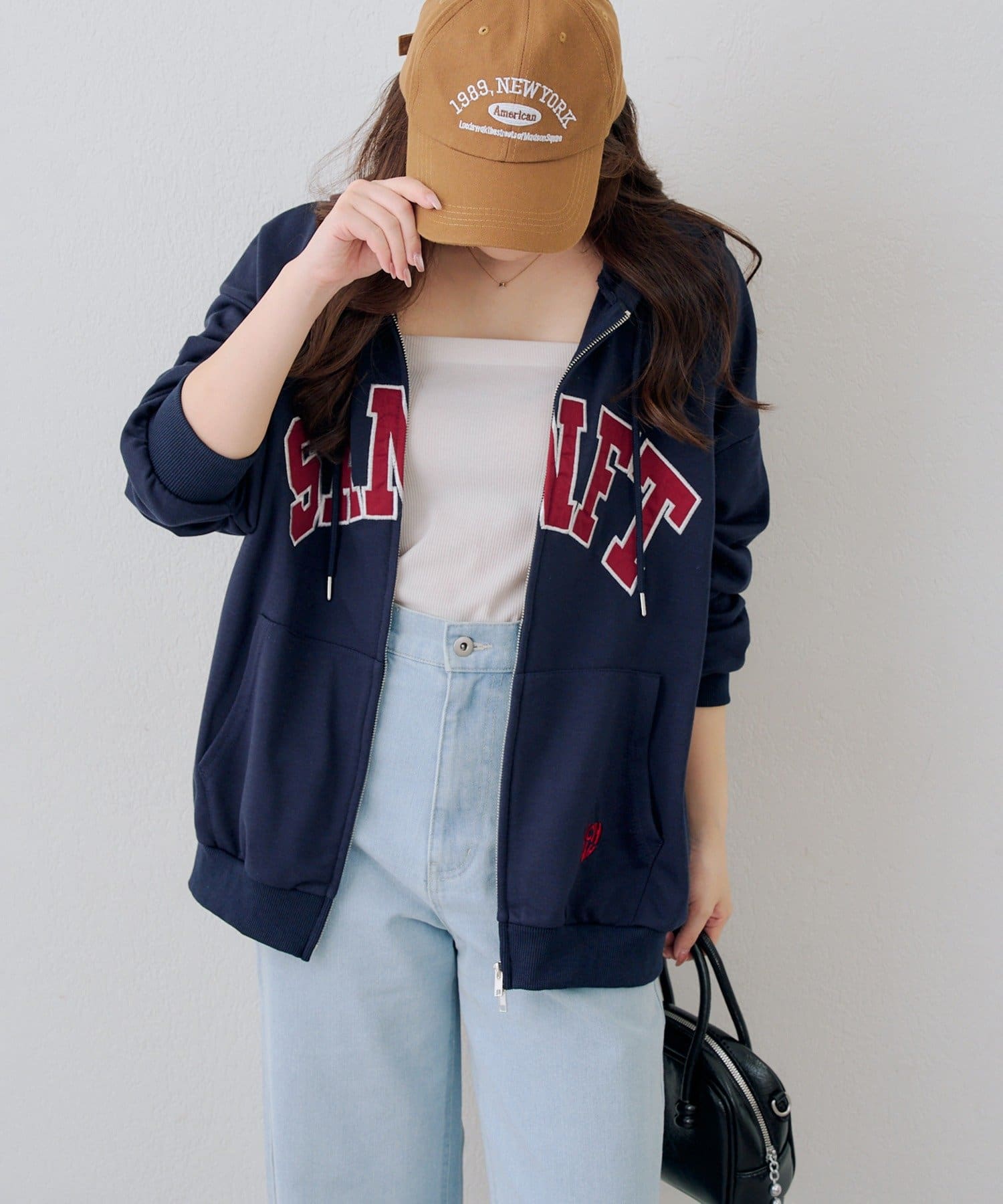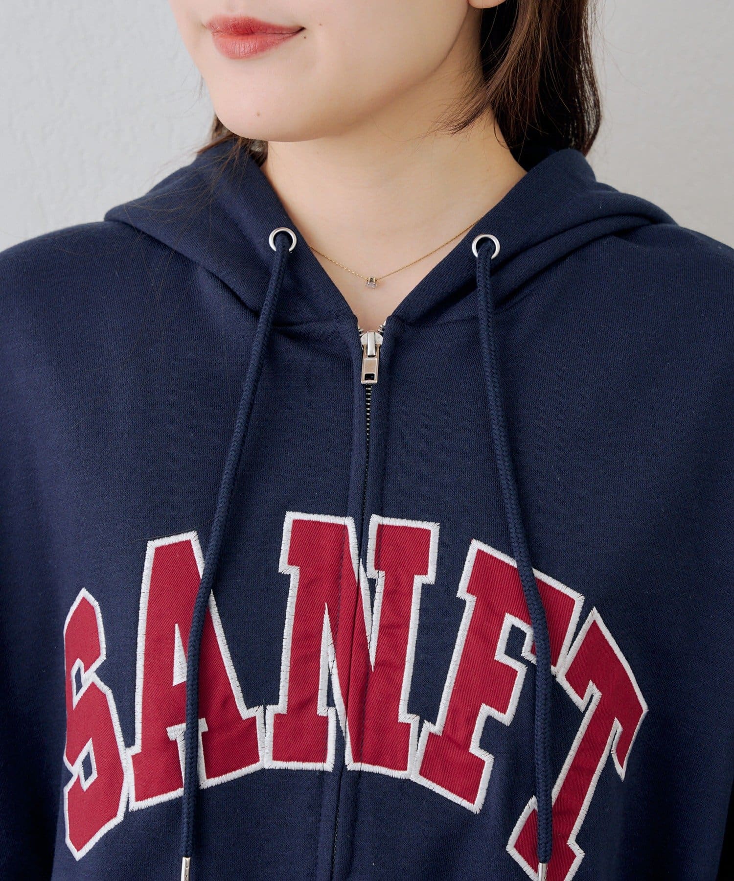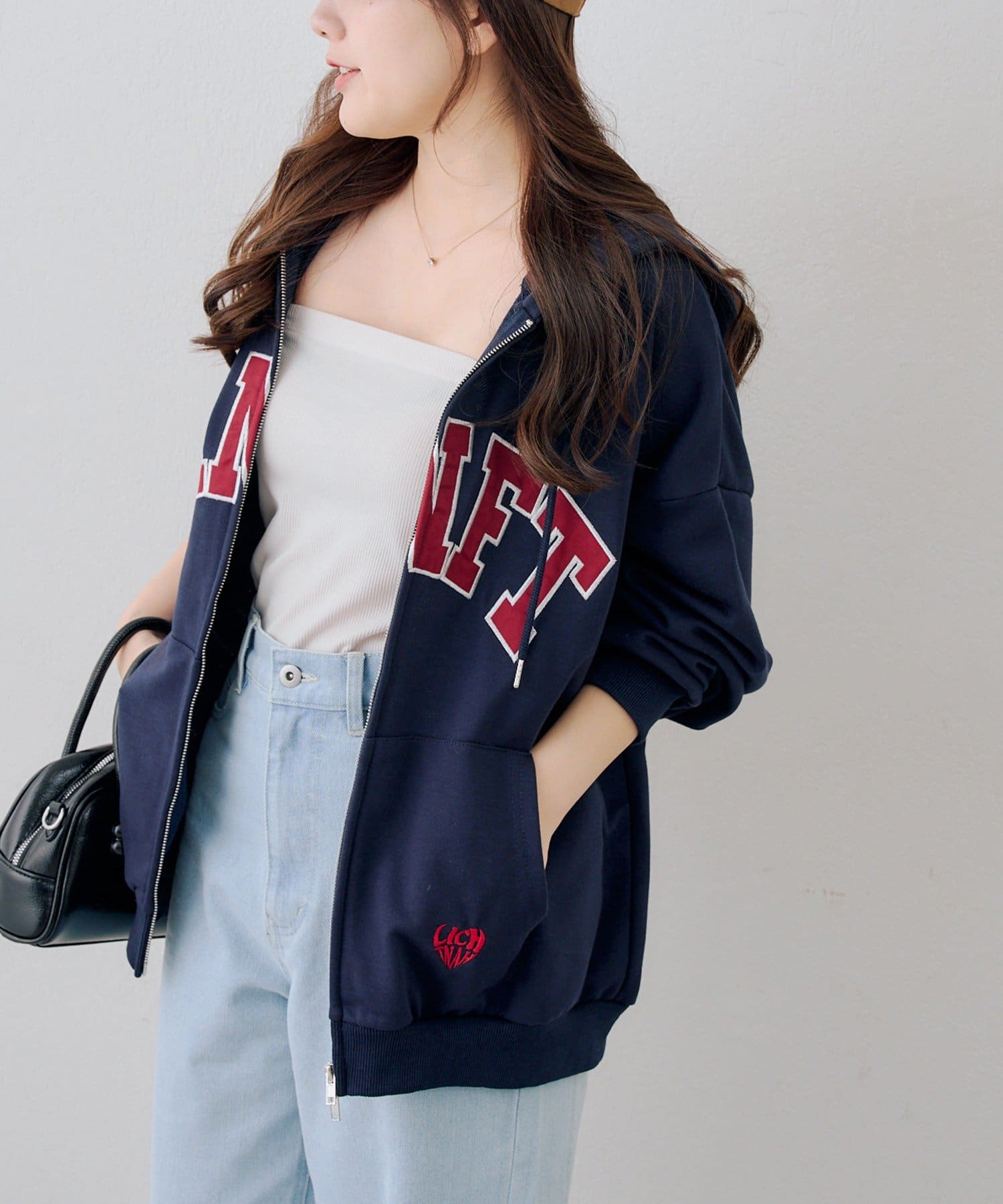 ・カレッジロゴが目を引く、カジュアル可愛いジップアップパーカー