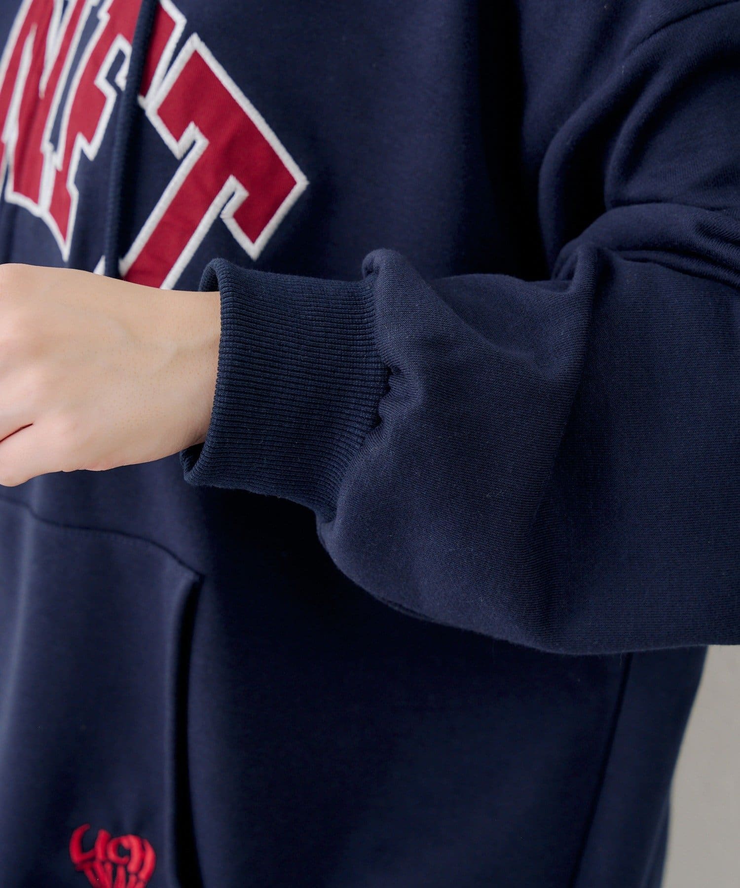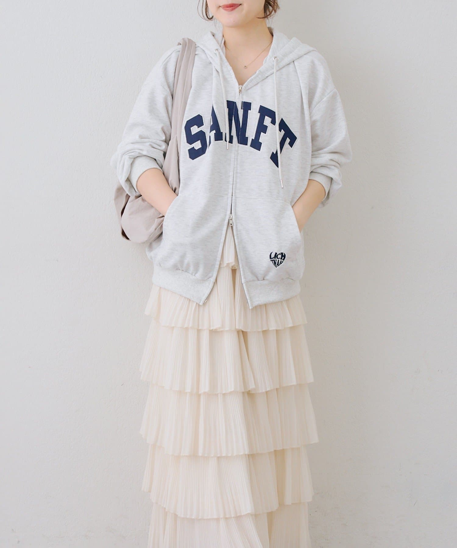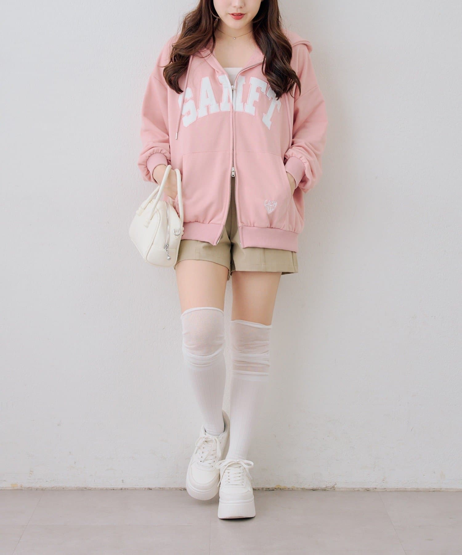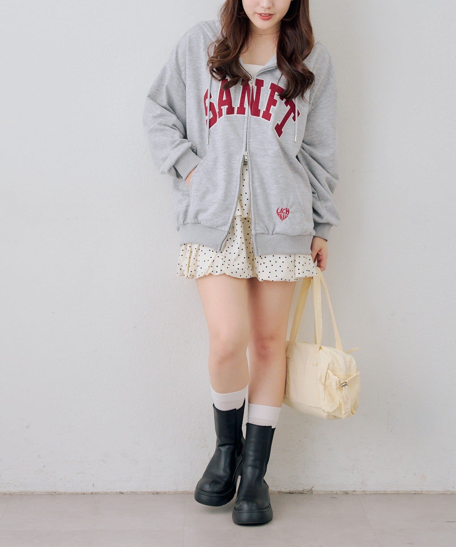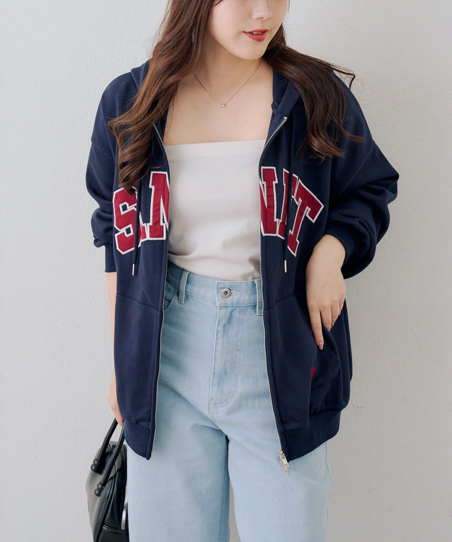 ・カレッジロゴが目を引く、カジュアル可愛いジップアップパーカー