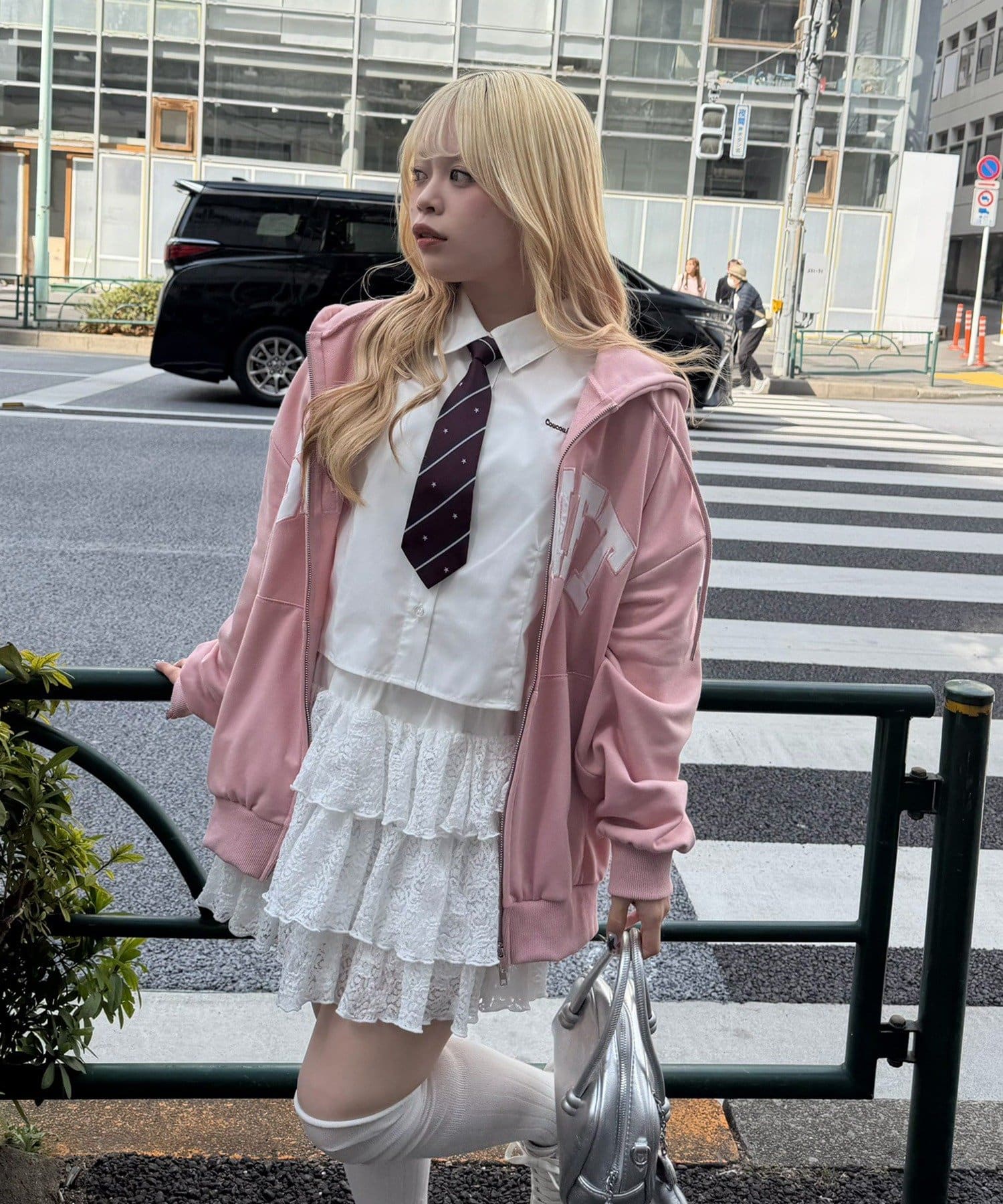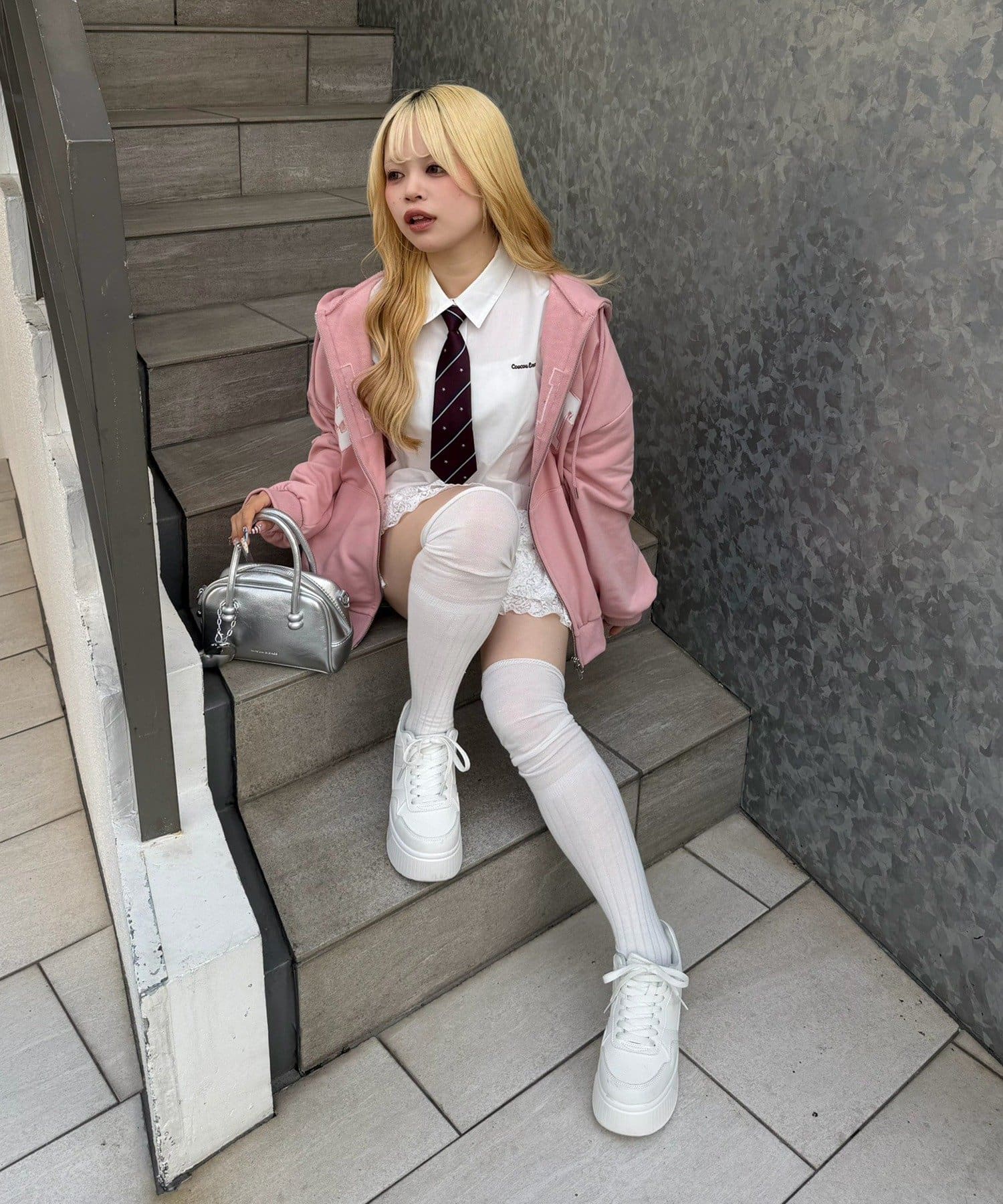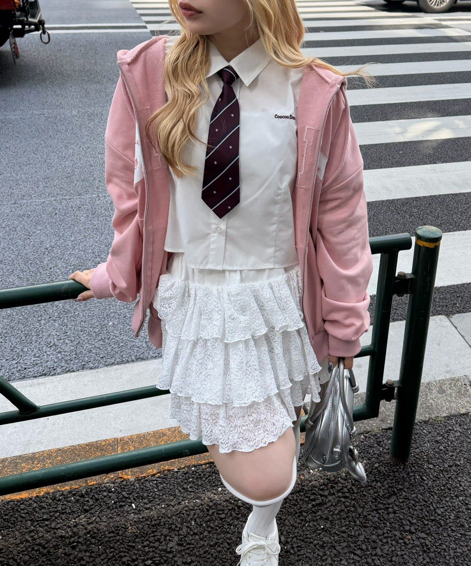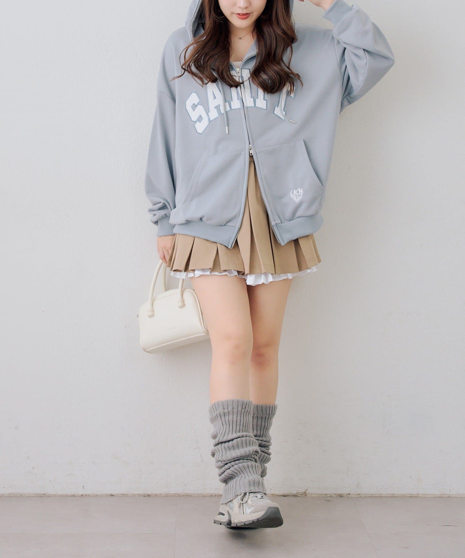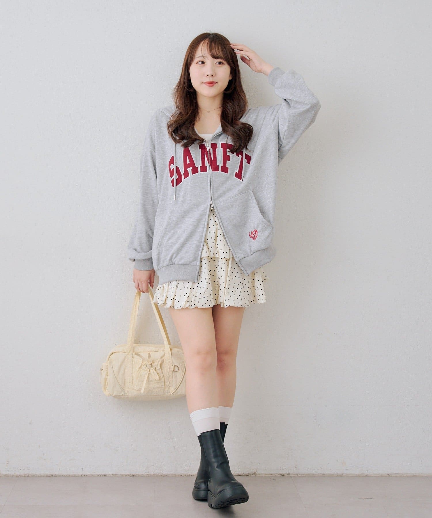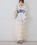 ・ドット柄スカートと合わせて、とことんキュートに。足元はスニーカーでカジュアルダウン