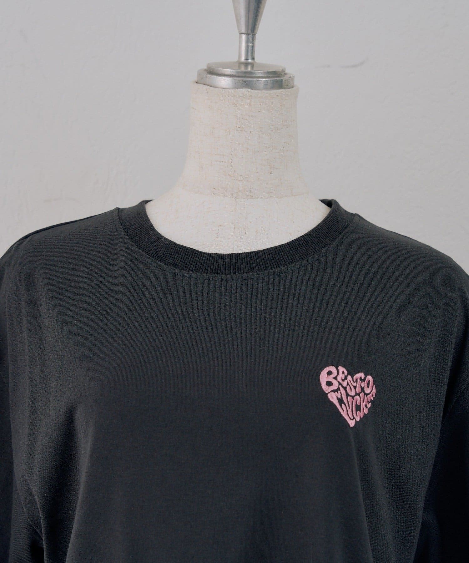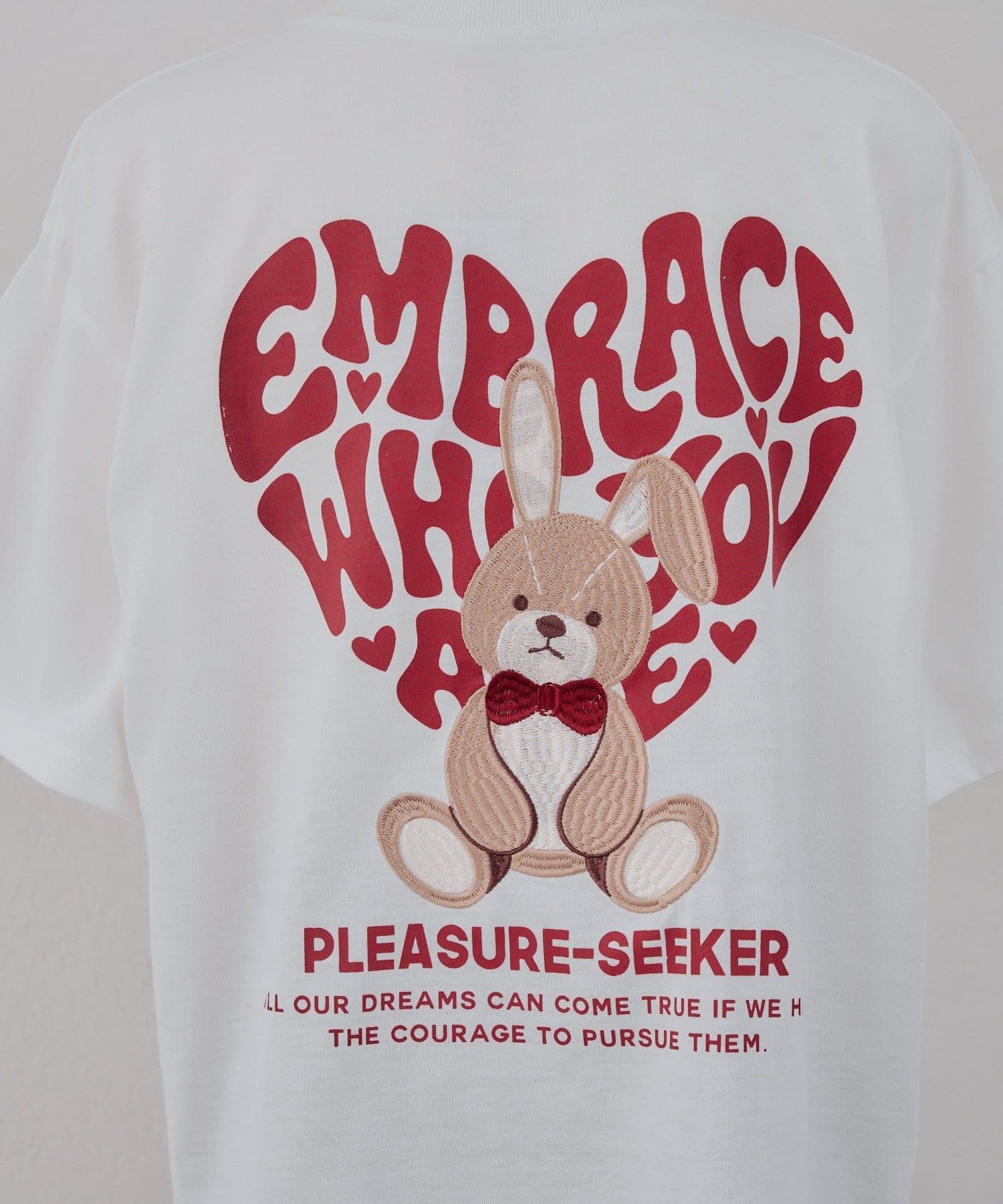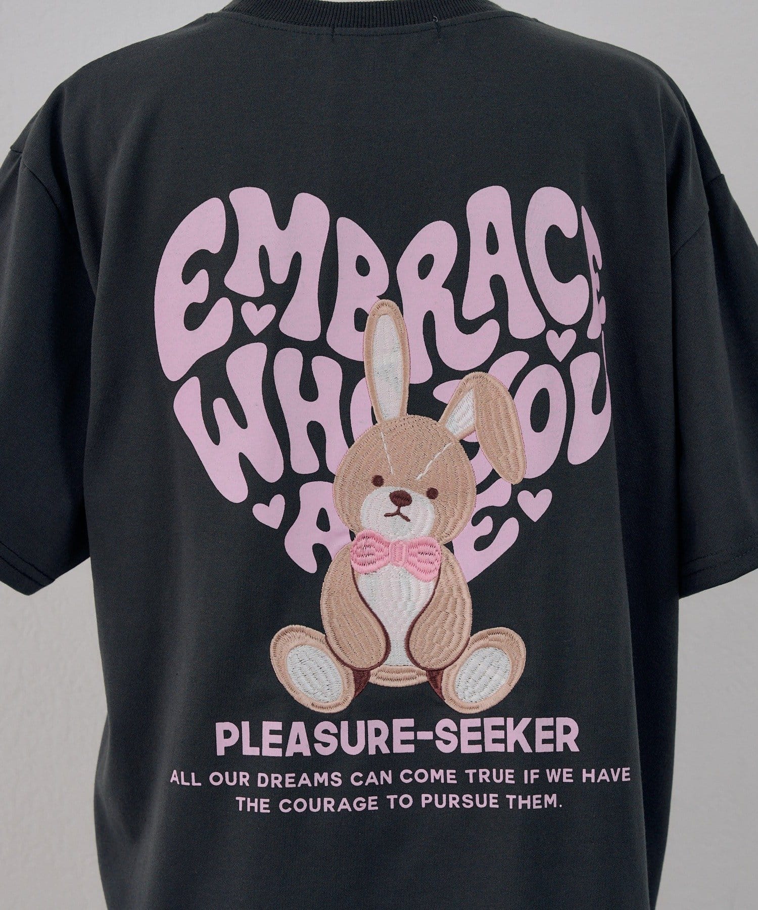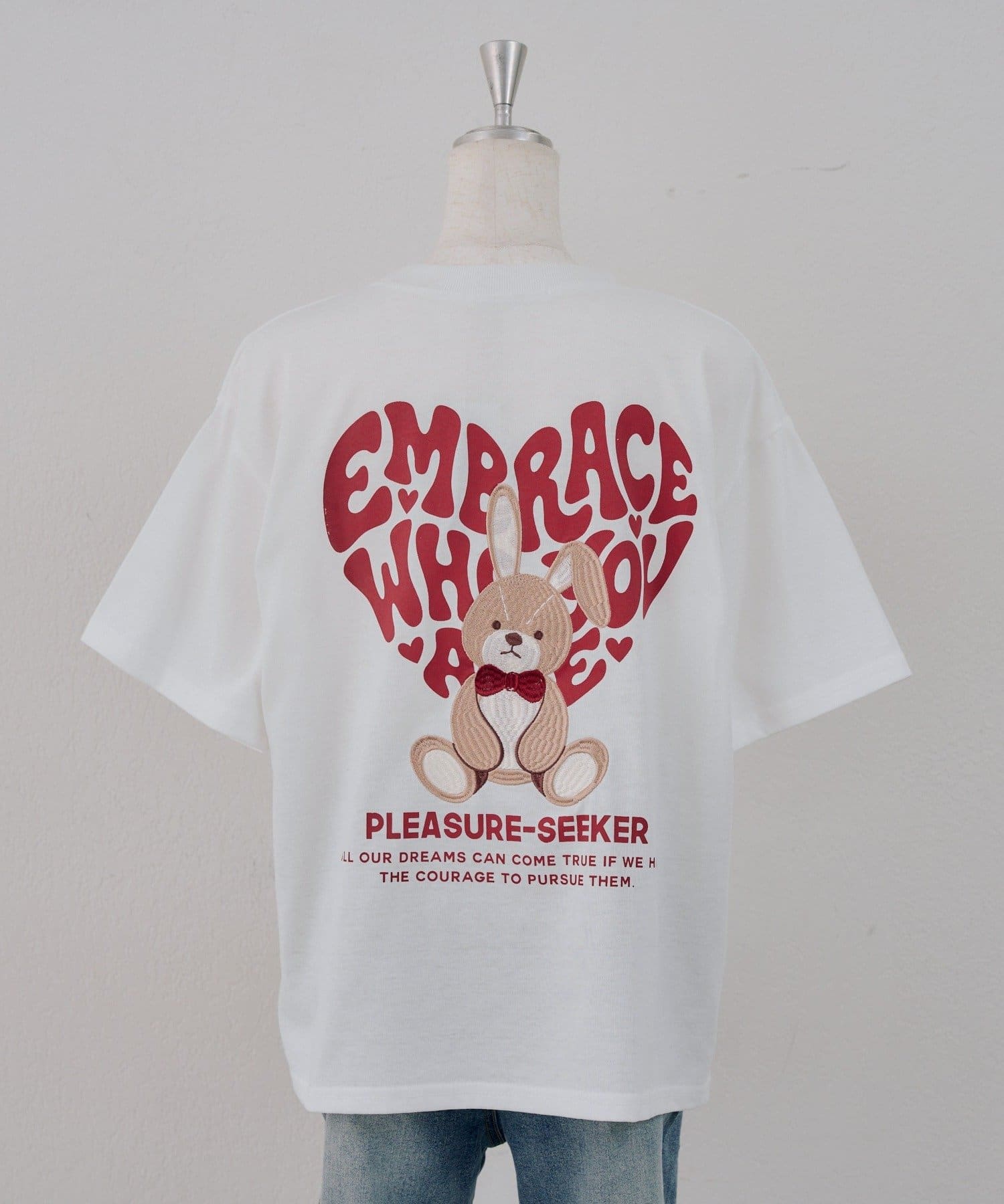 ・胸元のキュートなハートウサギ刺繍がポイントのTシャツ