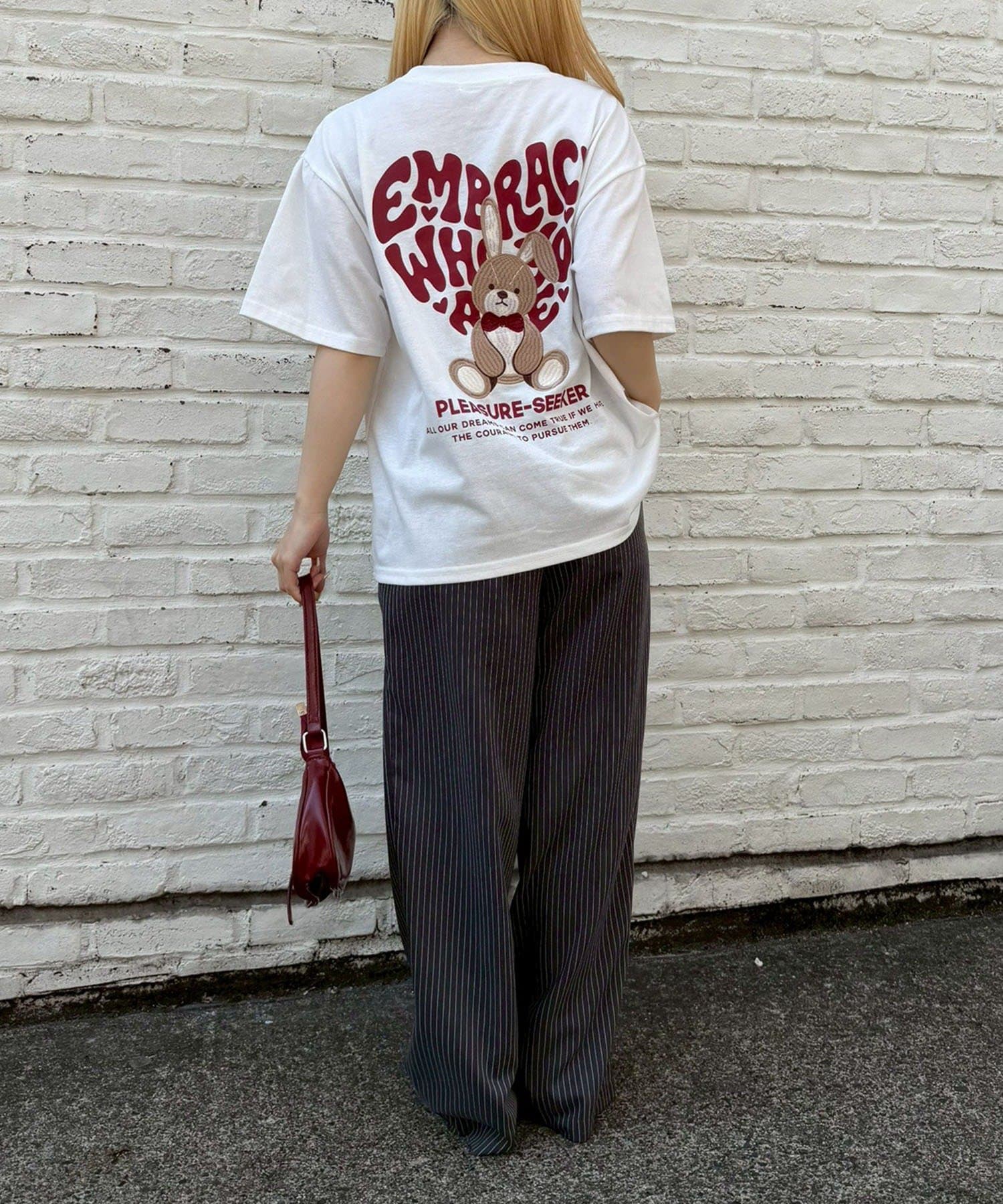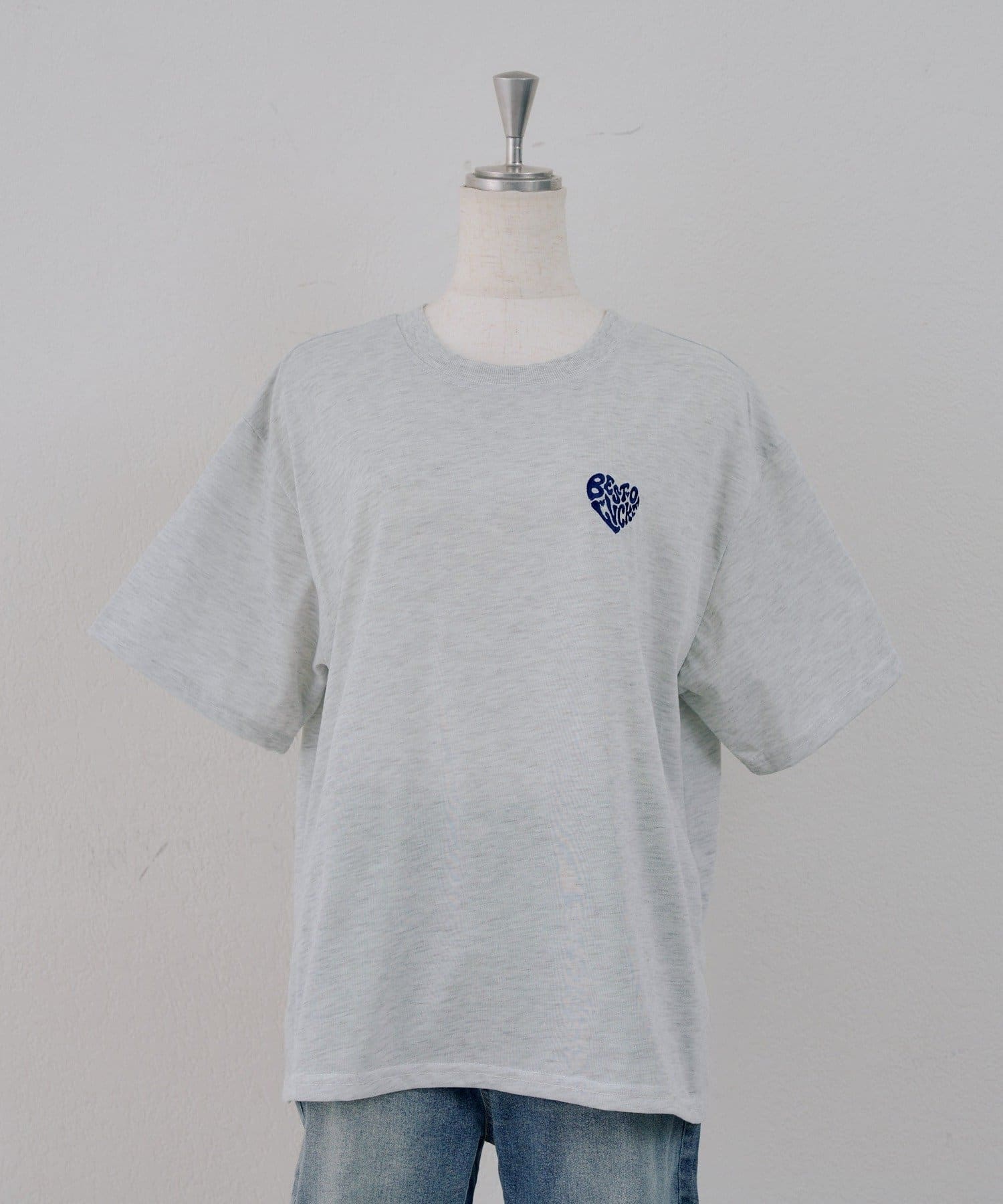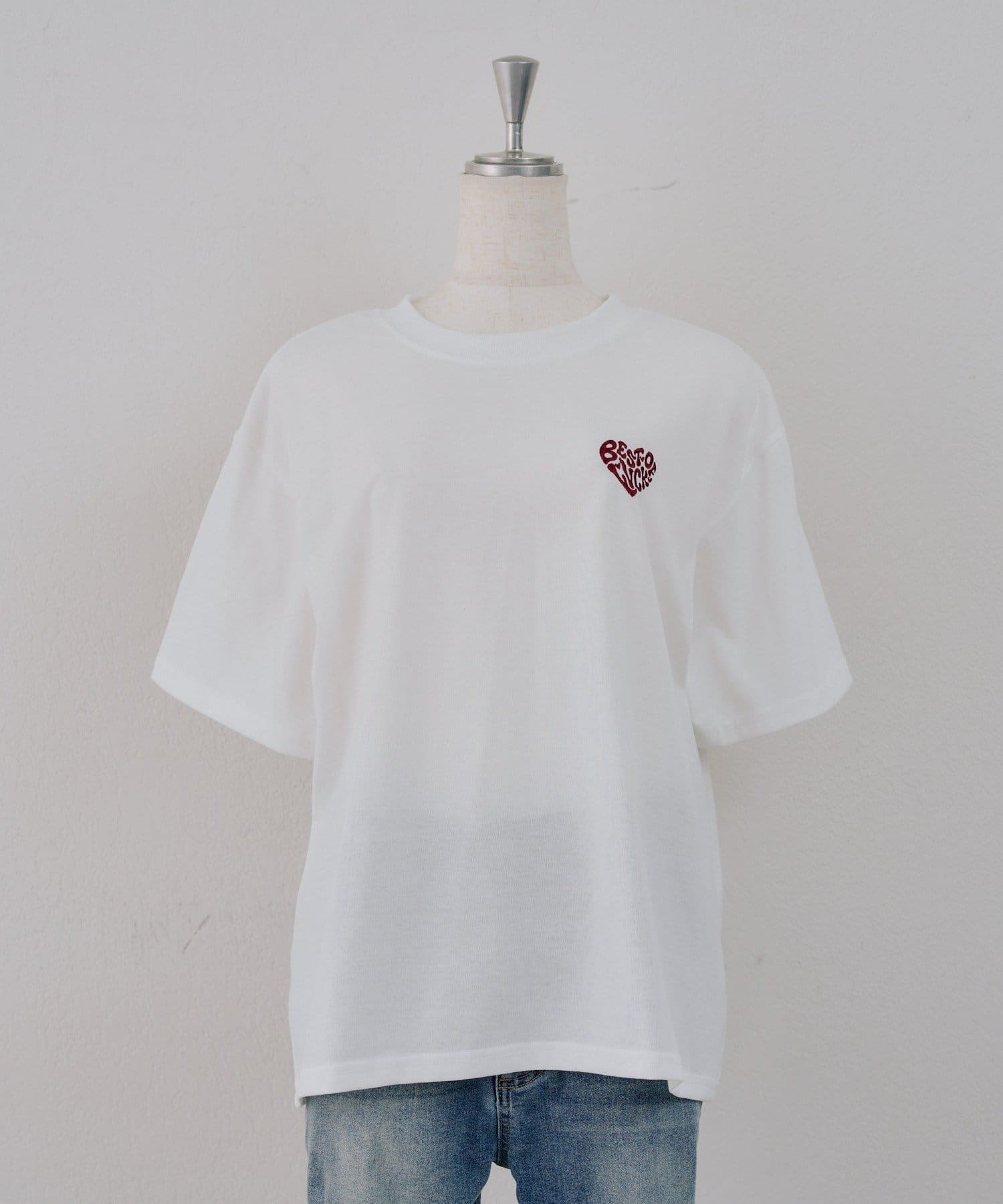 ・胸元のキュートなハートウサギ刺繍がポイントのTシャツ