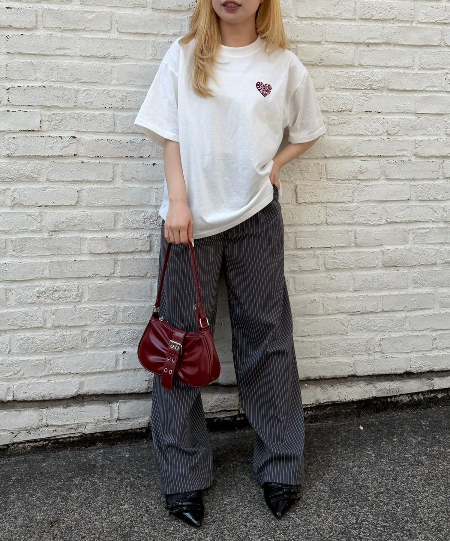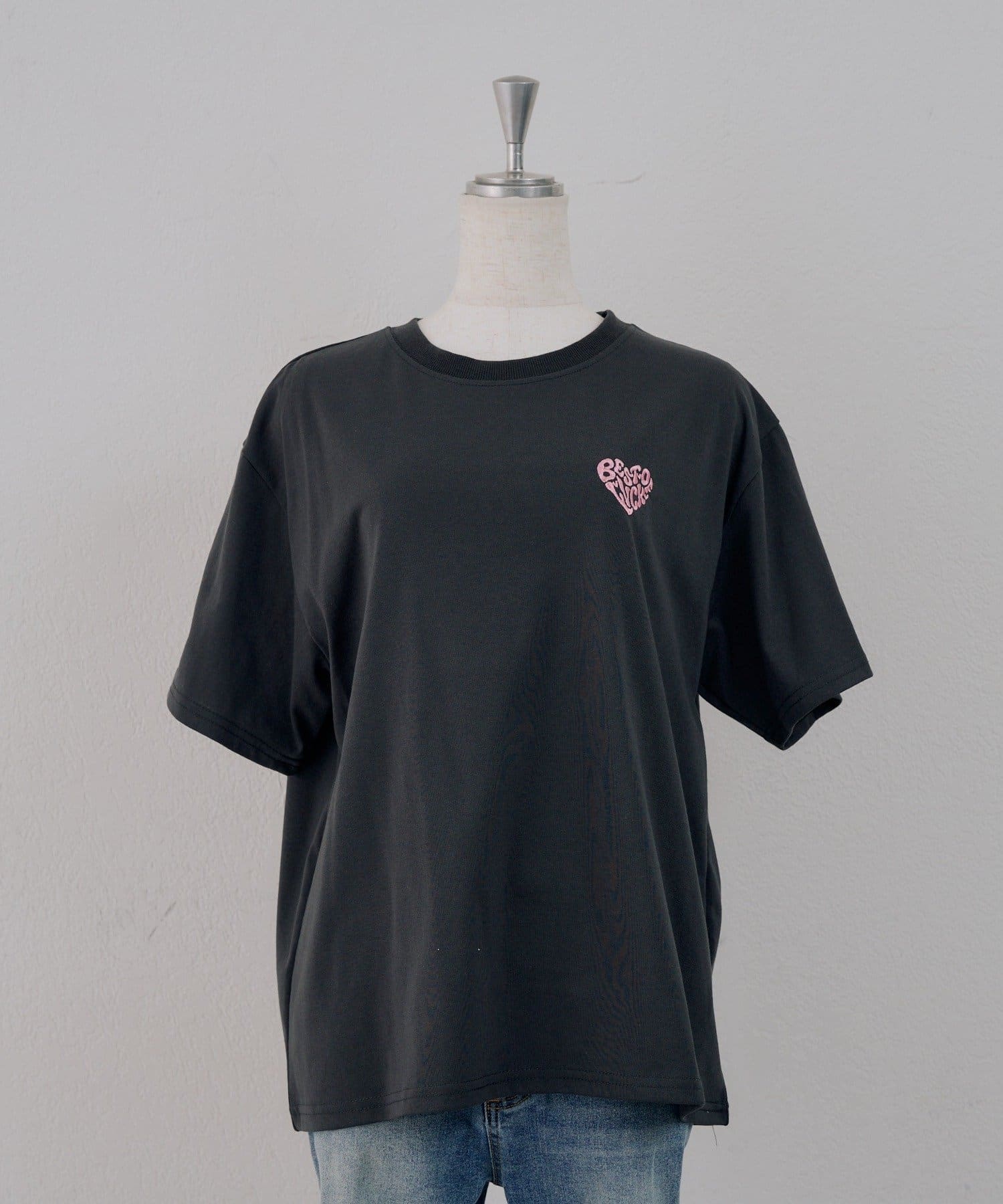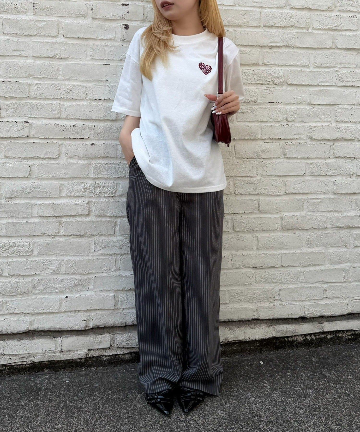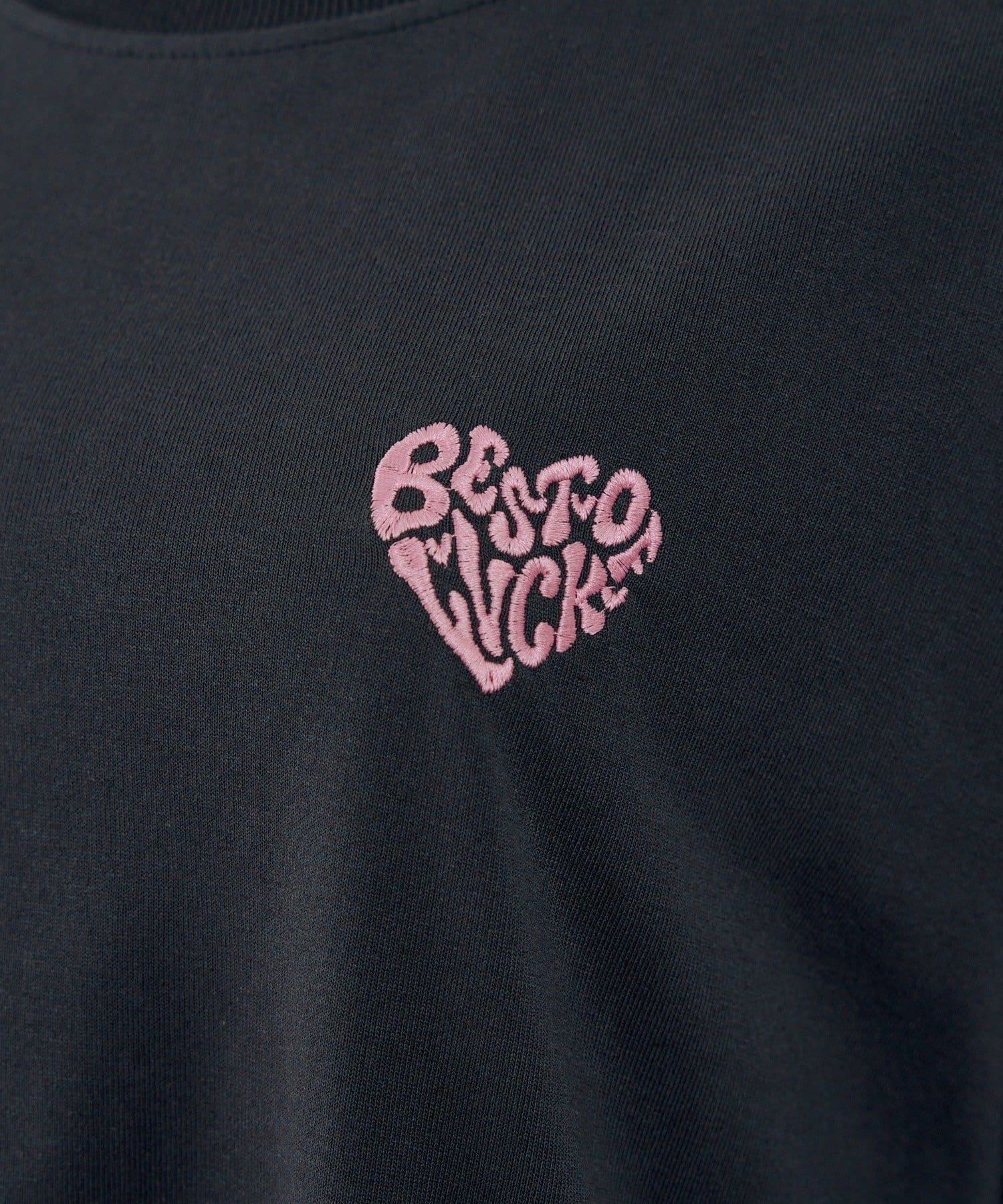 ・胸元のキュートなハートウサギ刺繍がポイントのTシャツ