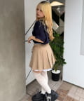 ・チェック柄のミニスカートを合わせて、スニーカーでカジュアルダウン