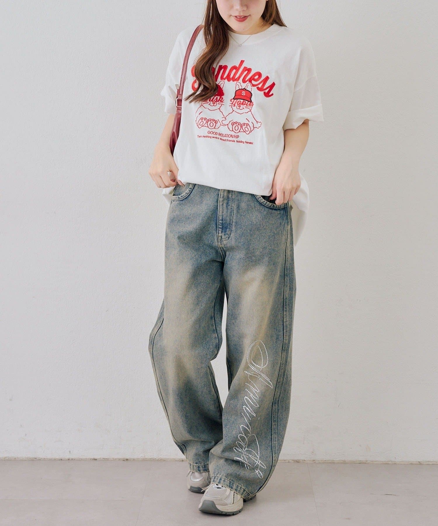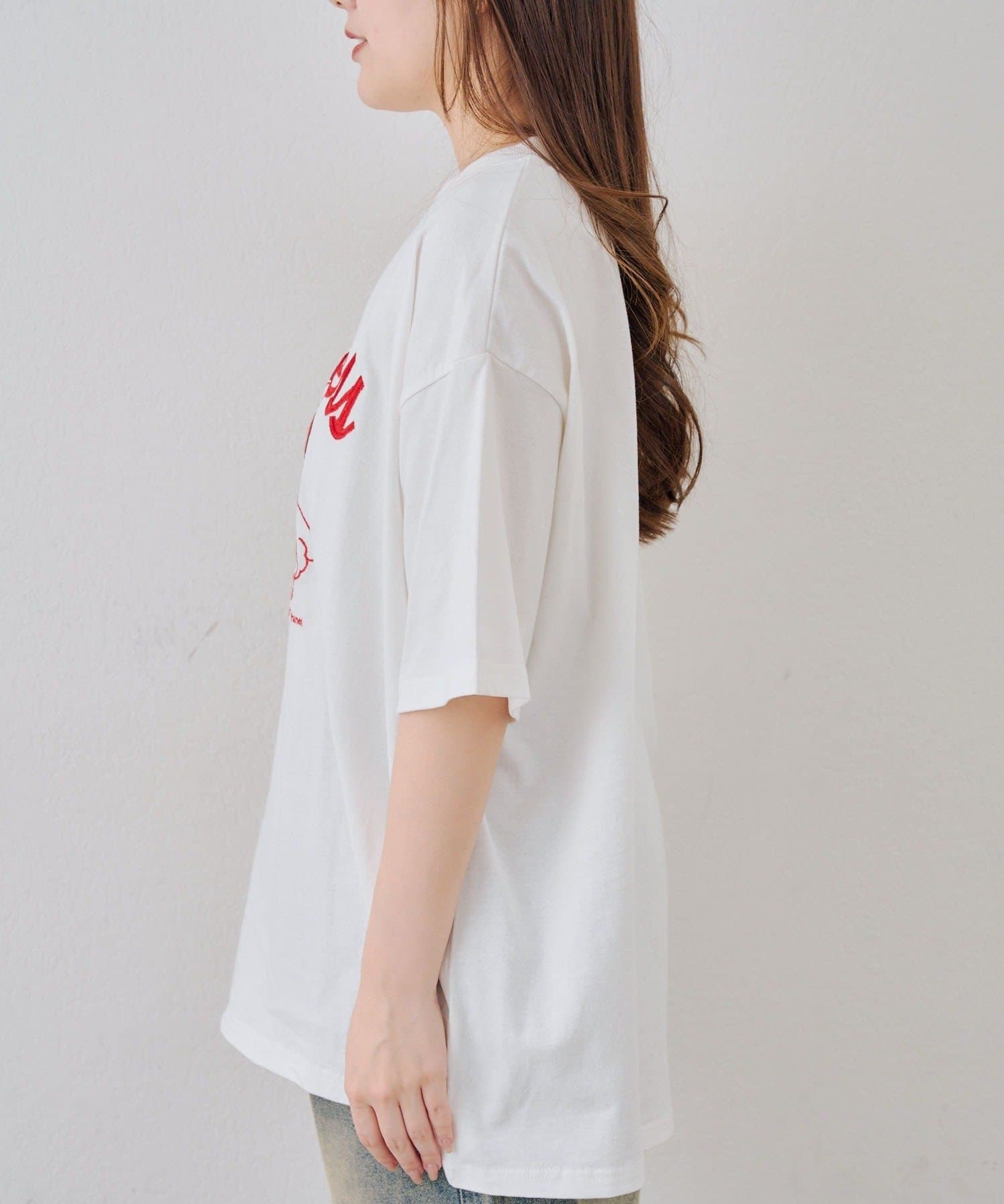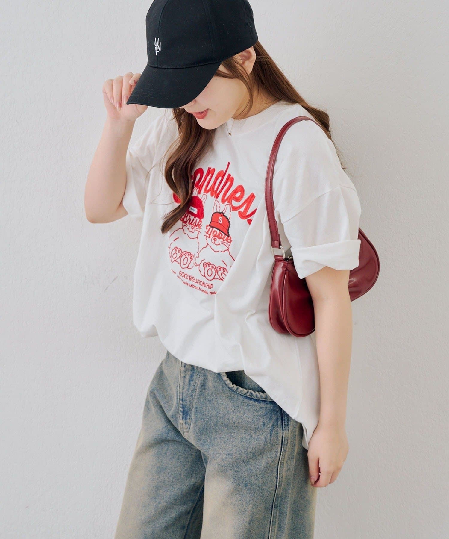 ・遊び心あふれるウサギの刺繍がポイントのTシャツ