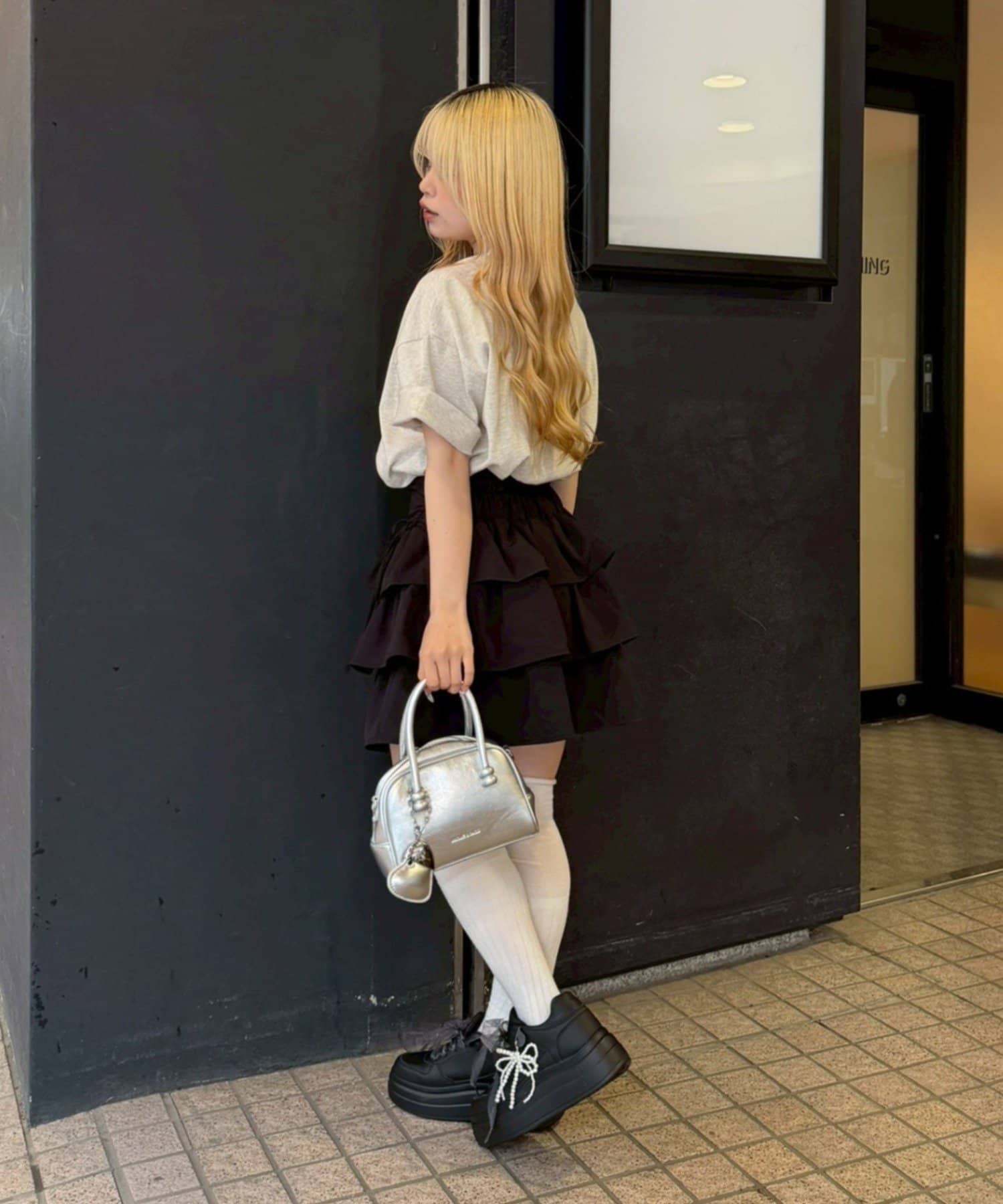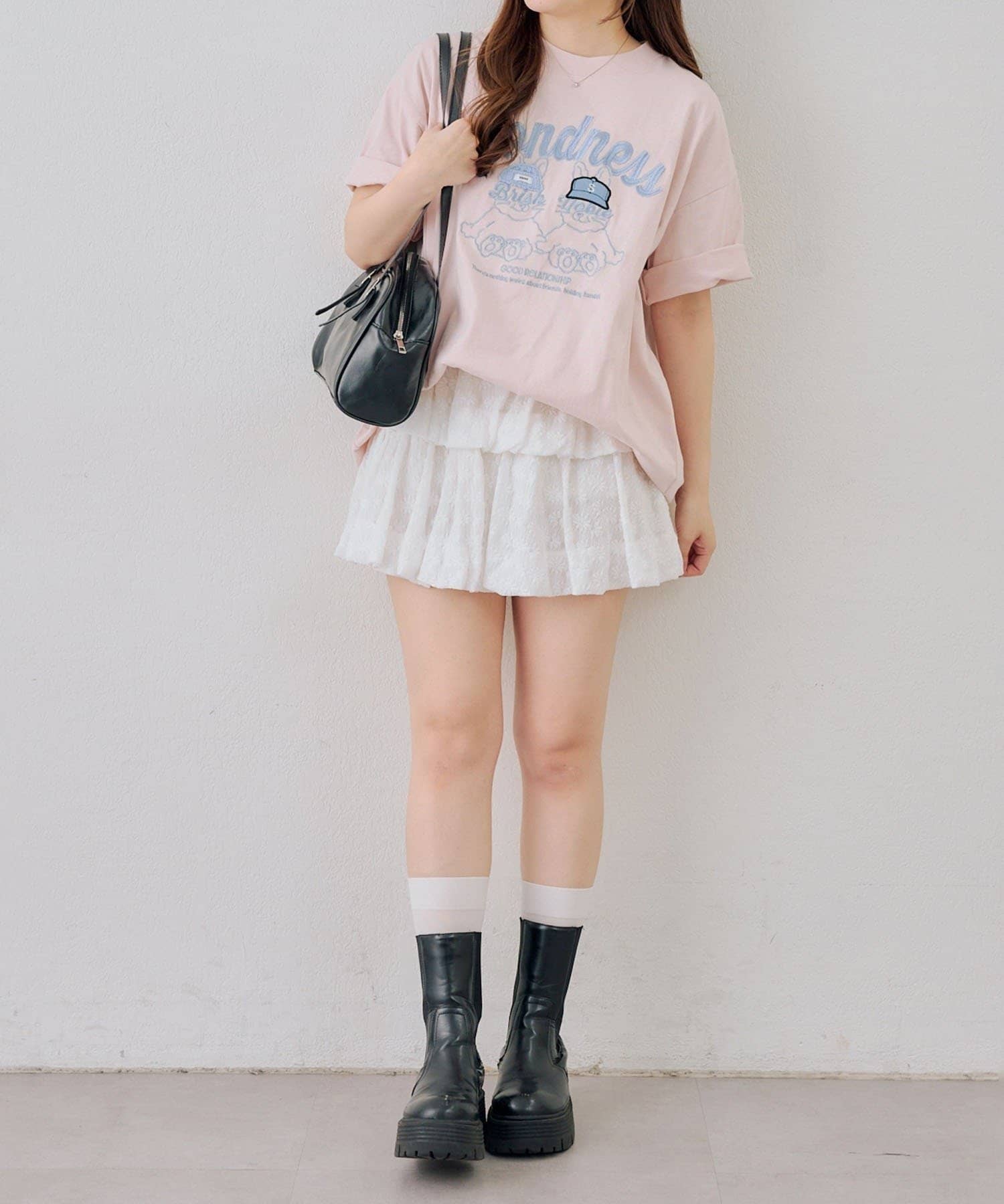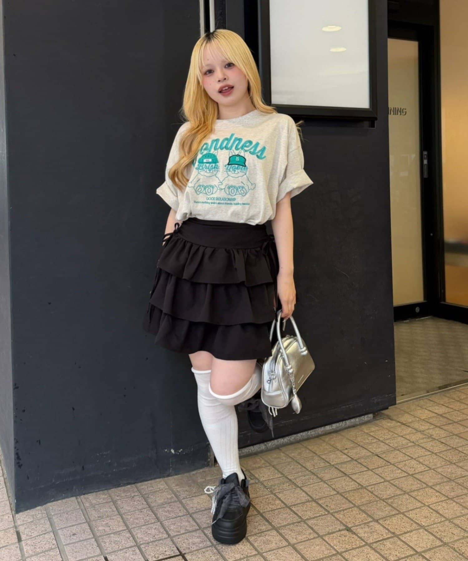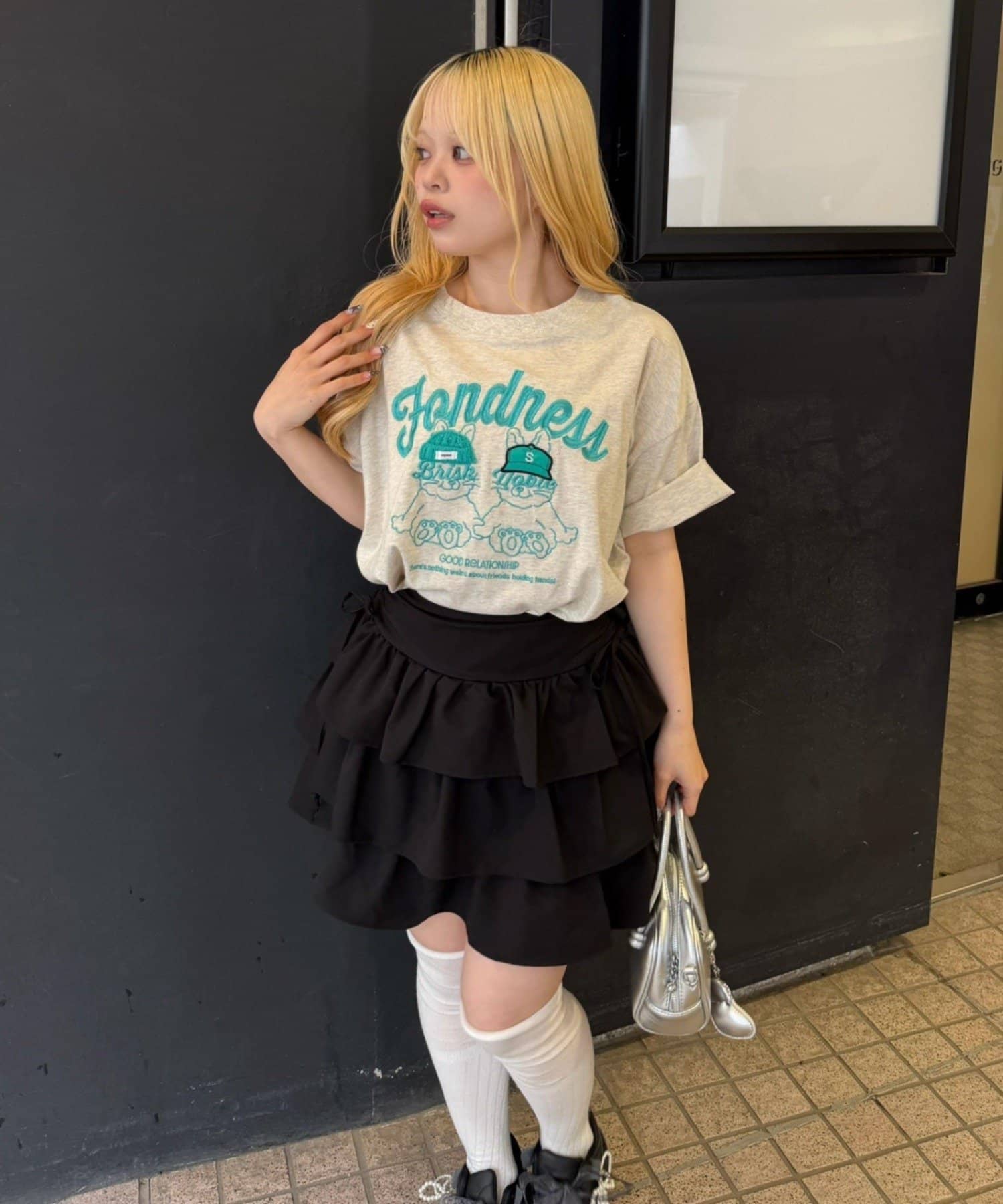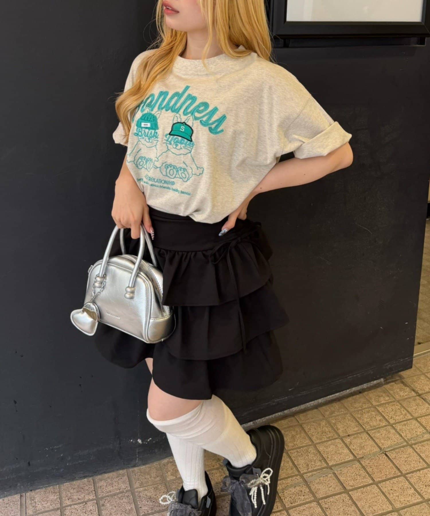 ・ Tシャツにチュールスカートを合わせて、足元はバレエシューズで軽やかに
