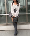 ・Tシャツとデニムに羽織って、甘さをプラス。足元はスニーカーでカジュアルダウン