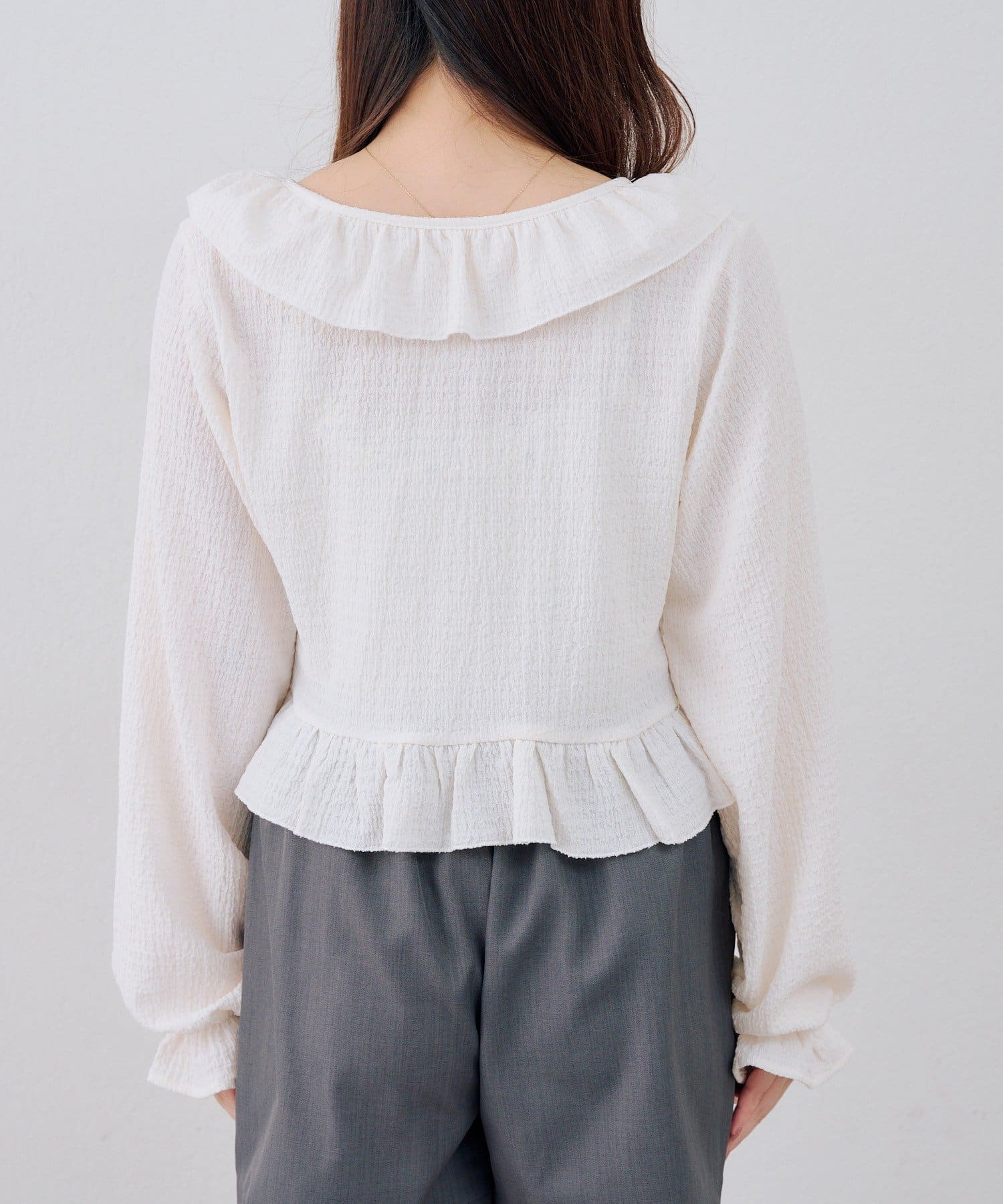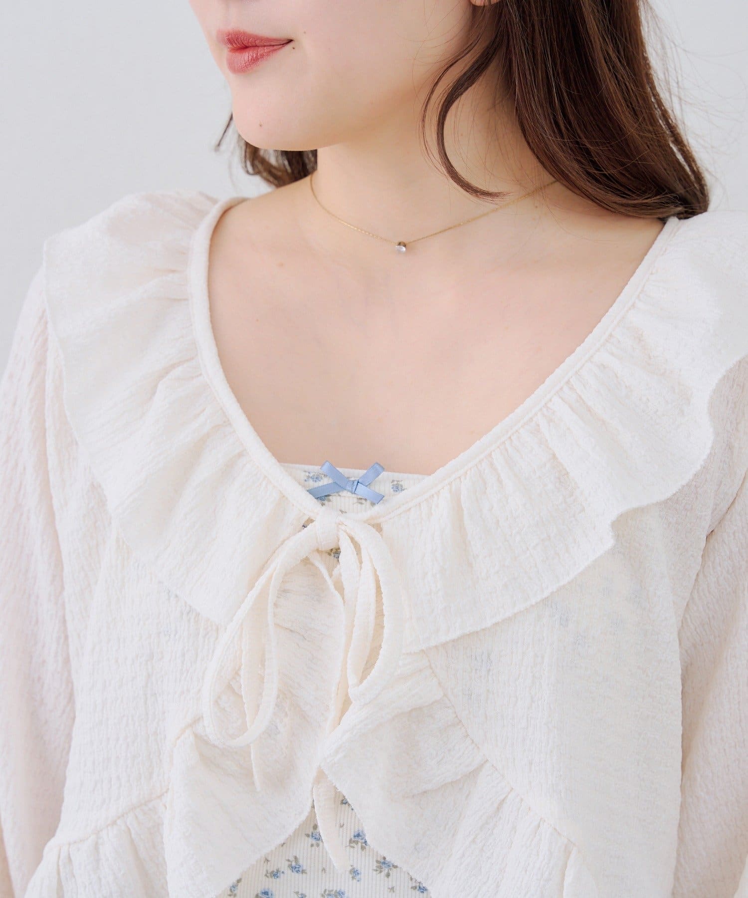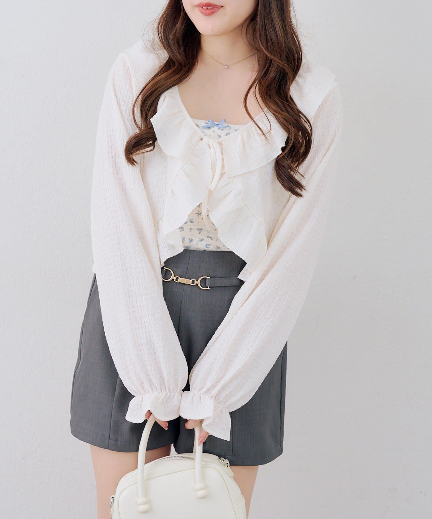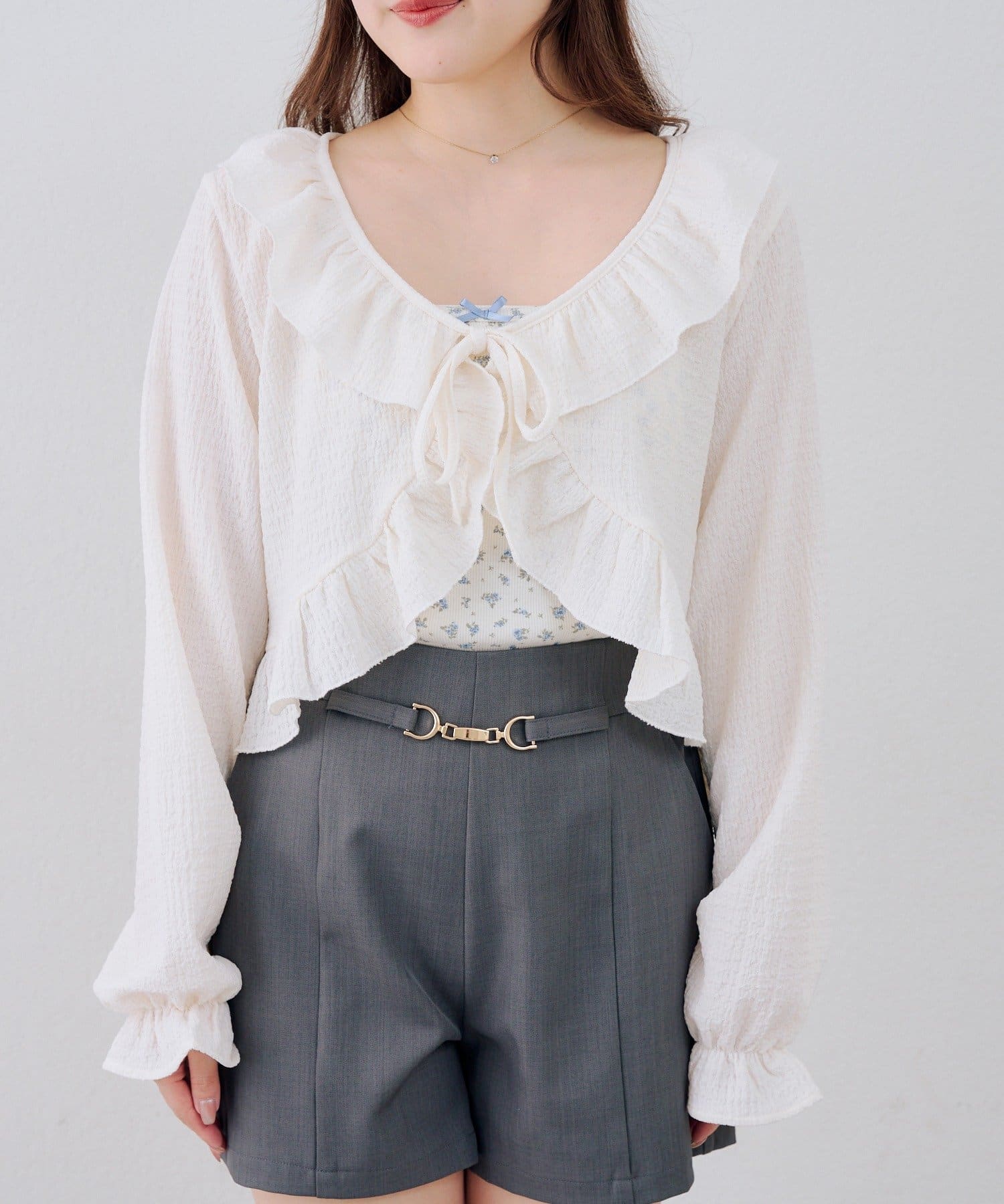 ・繊細なラッフルが、装いに華やぎを添えるボレロ