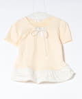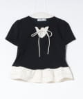 ・胸元のリボンと裾のドット柄フリルがガーリーな雰囲気のトップス