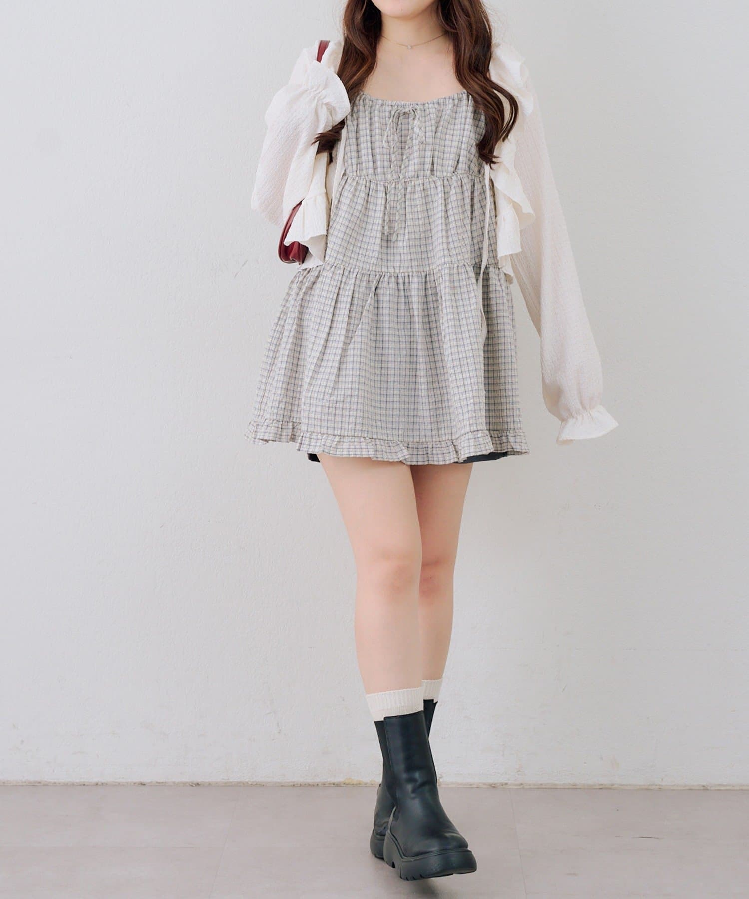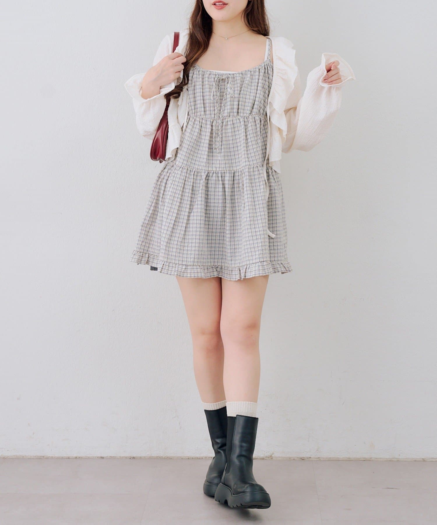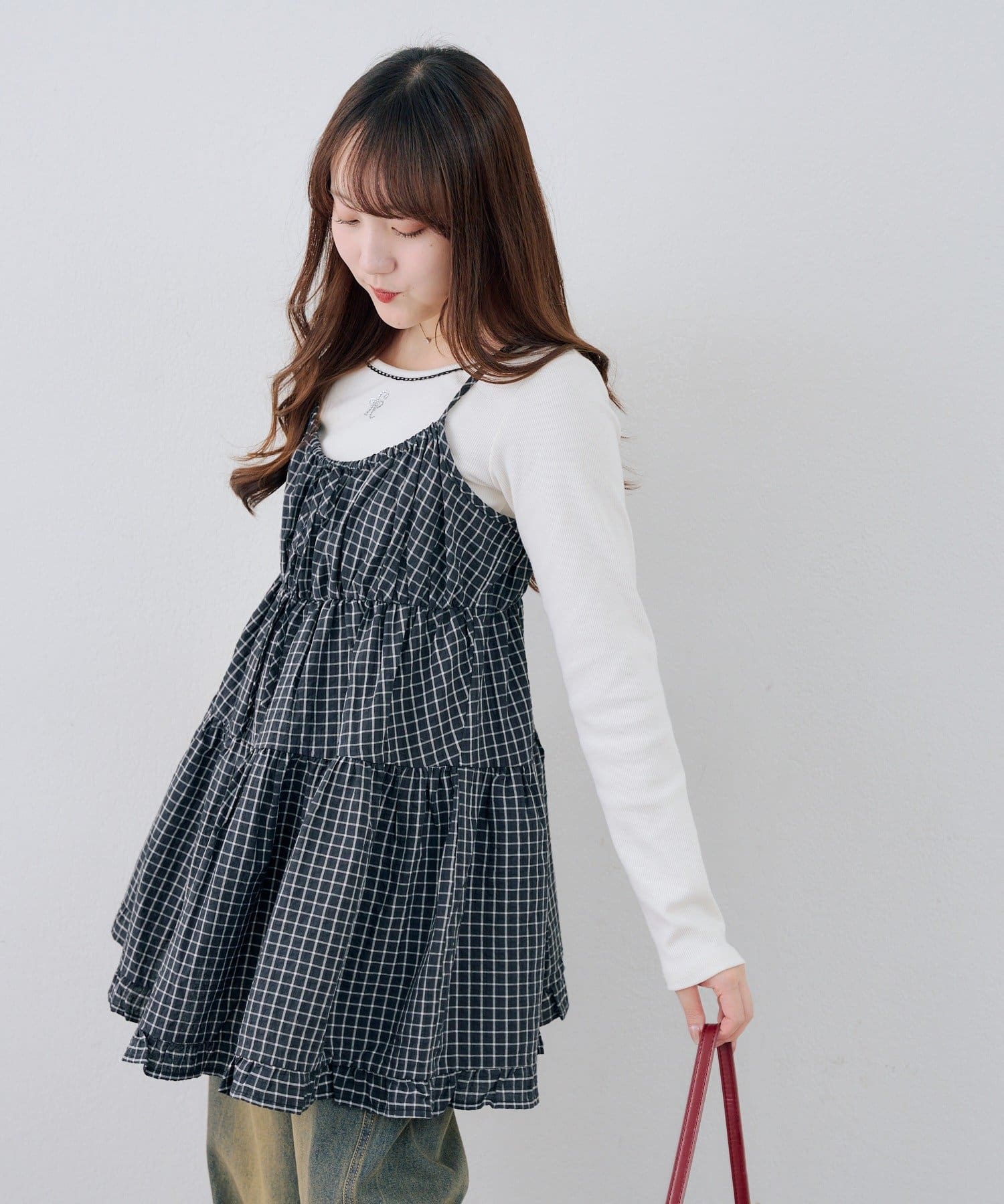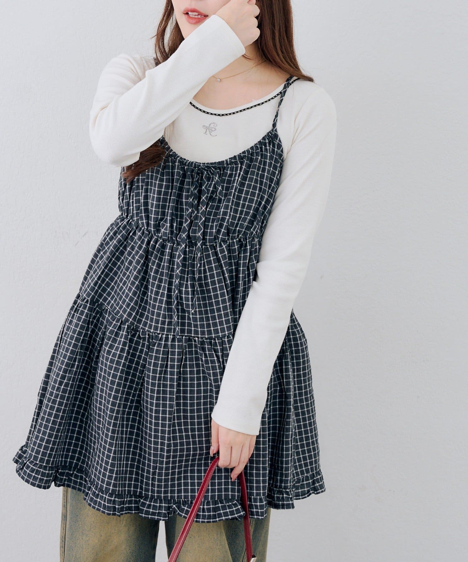 ・涼しげな印象のチェック柄ティアードチュニックワンピース