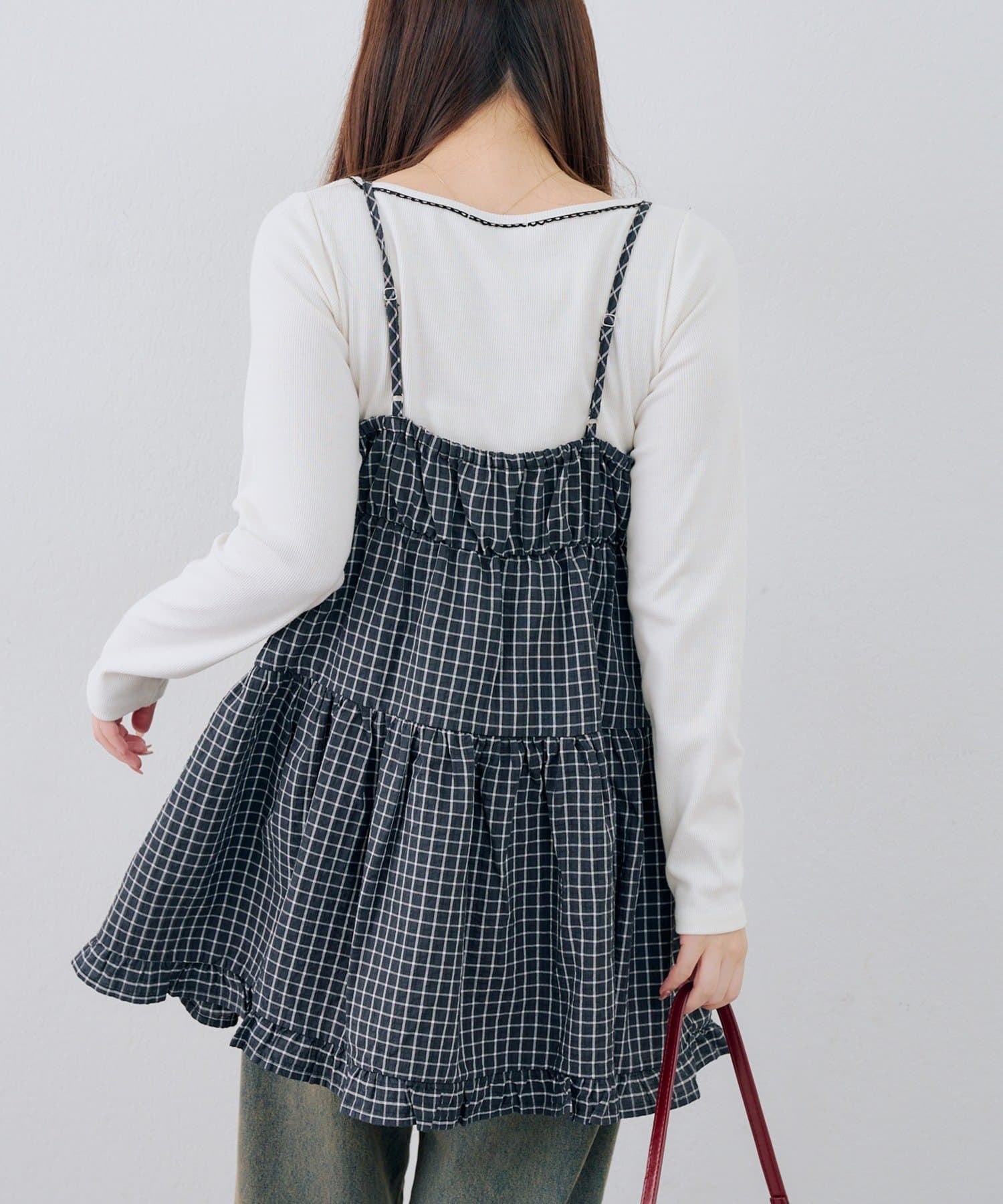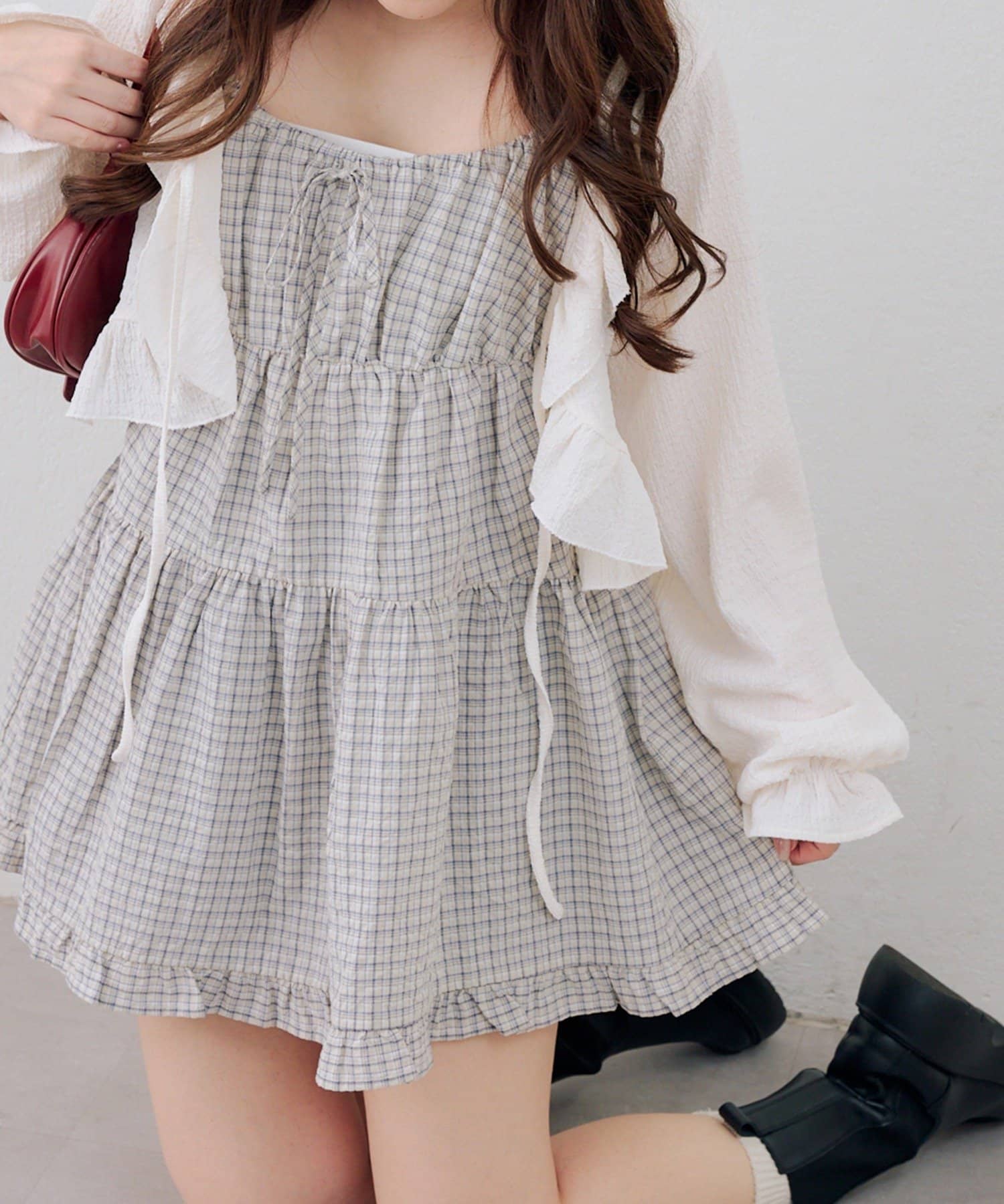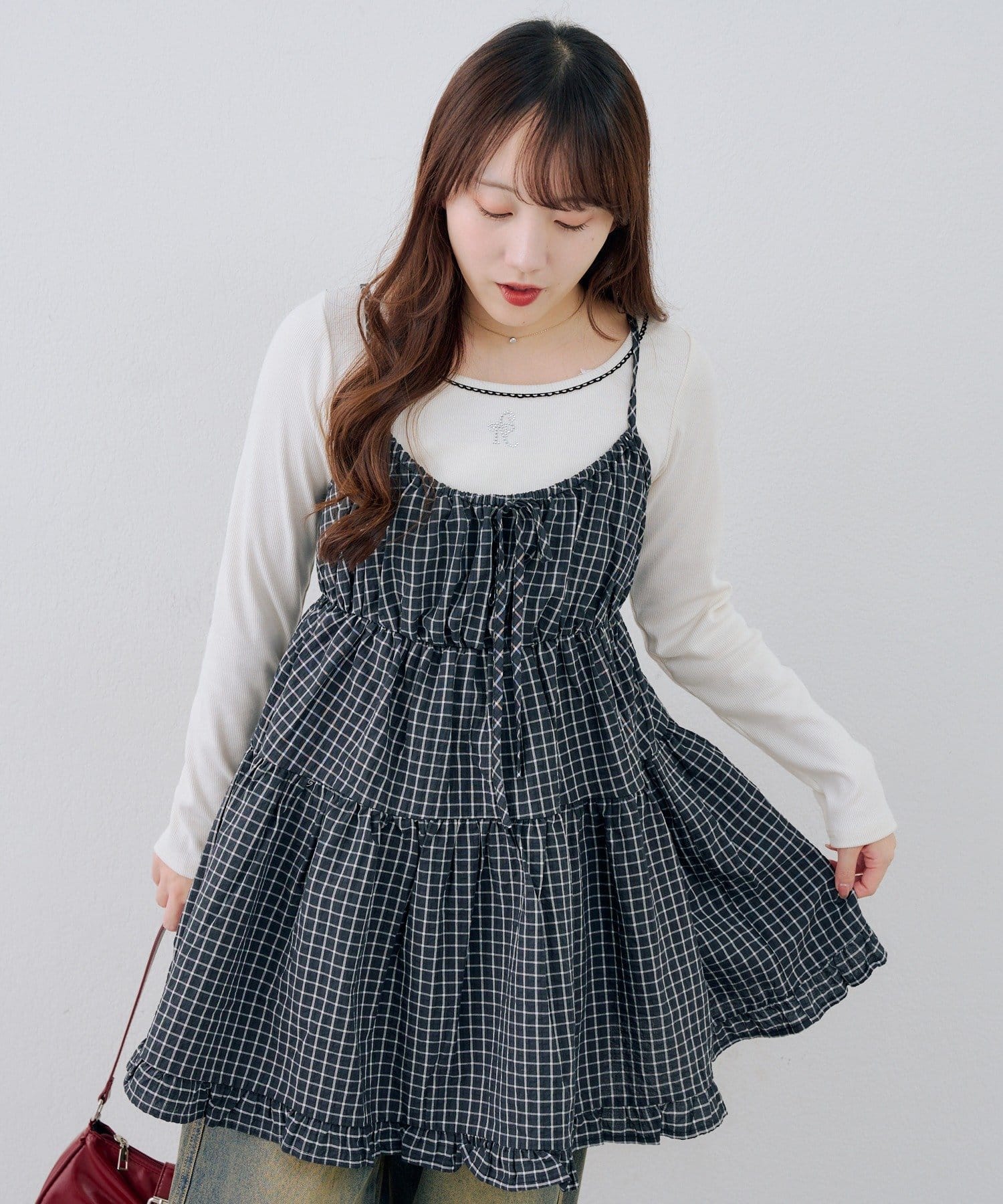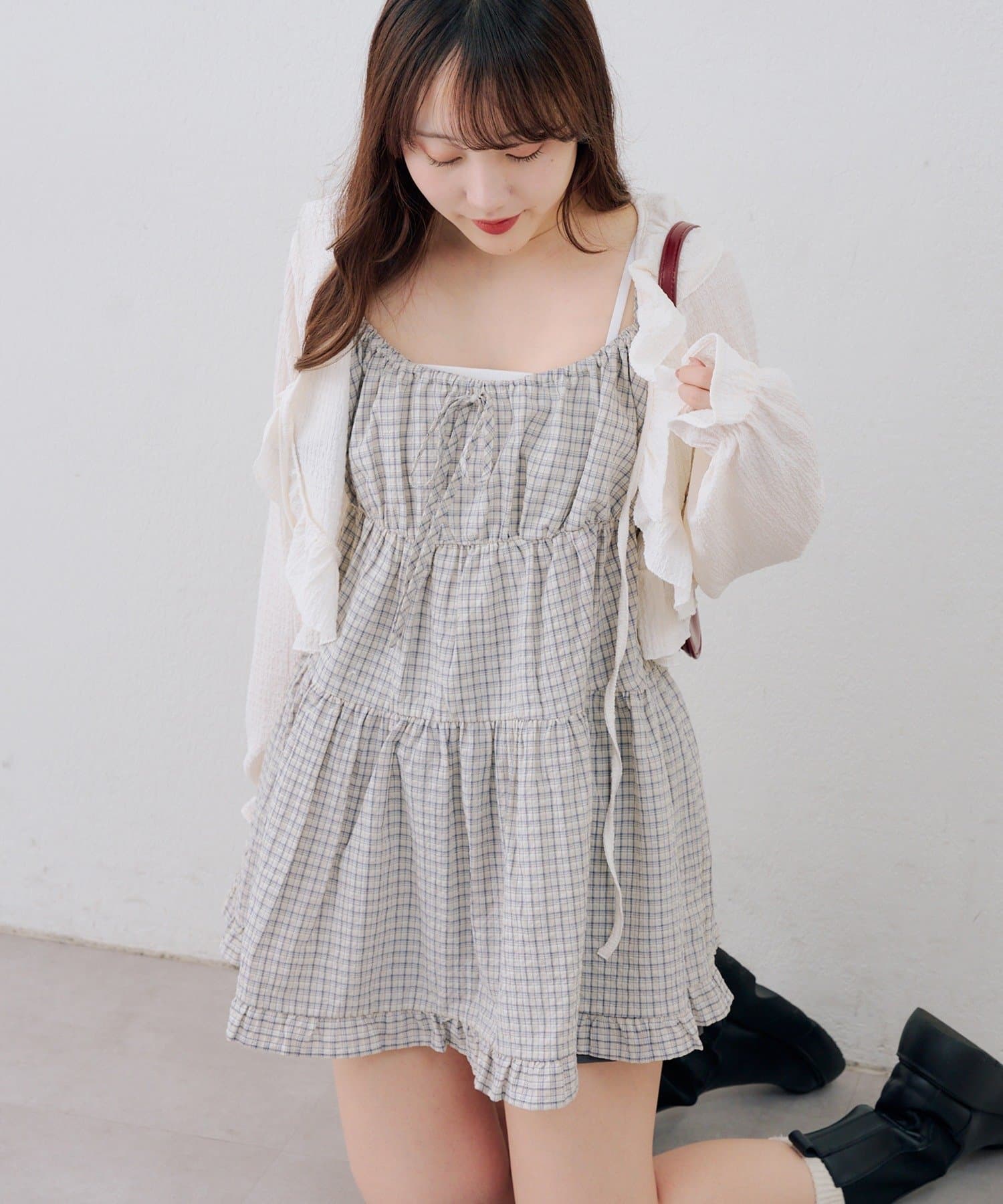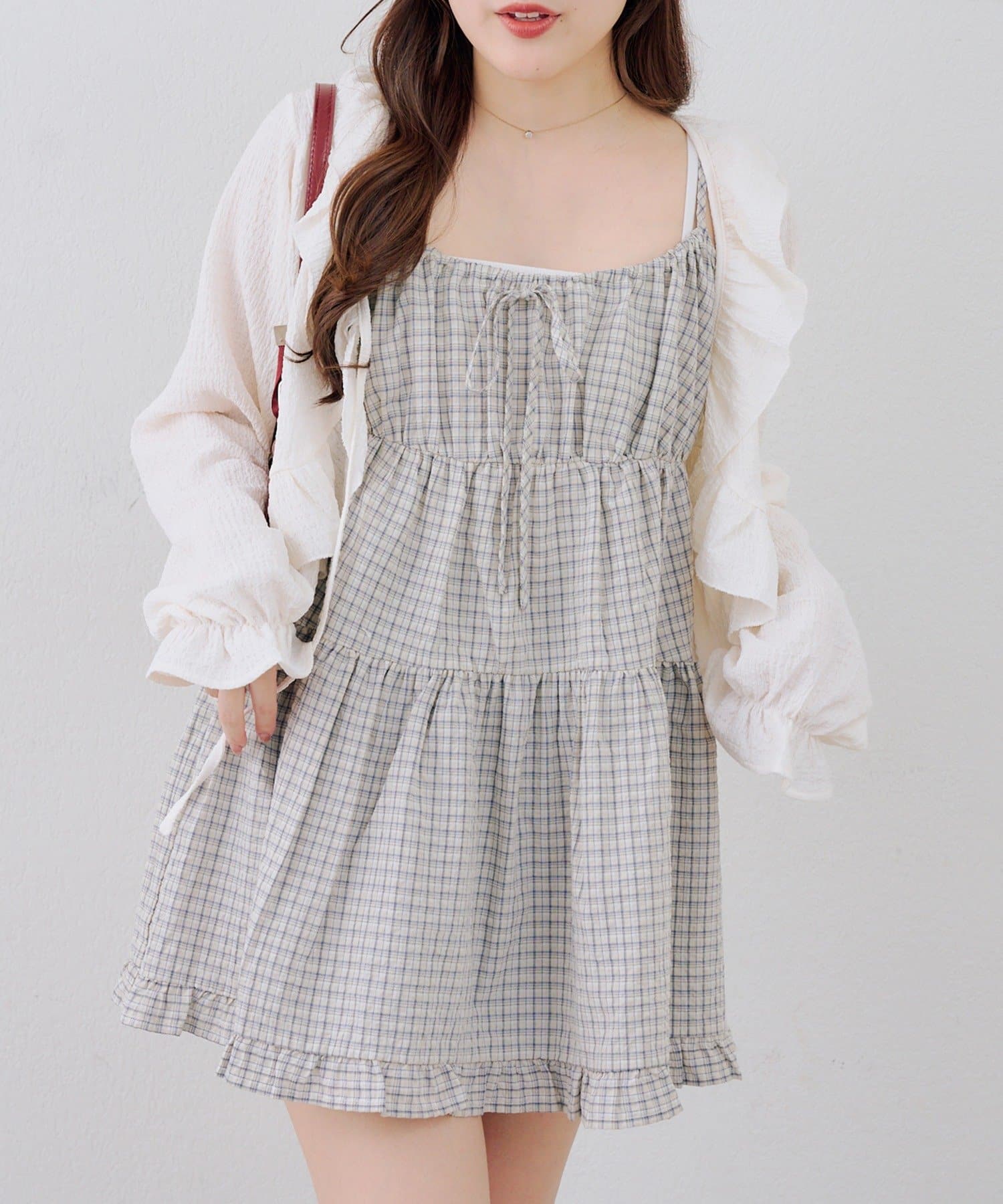 ・涼しげな印象のチェック柄ティアードチュニックワンピース