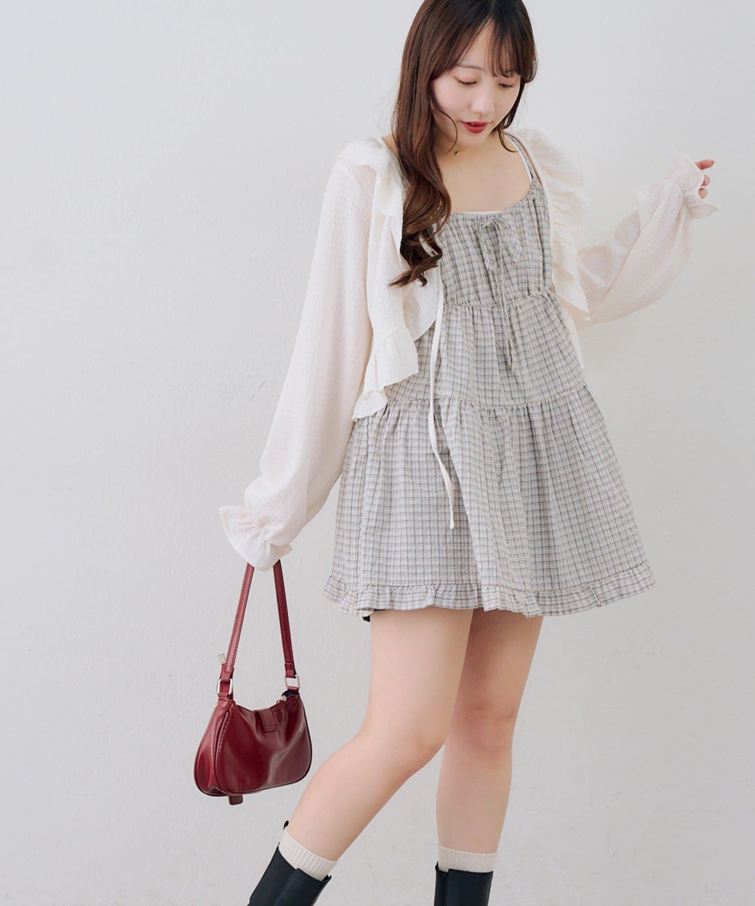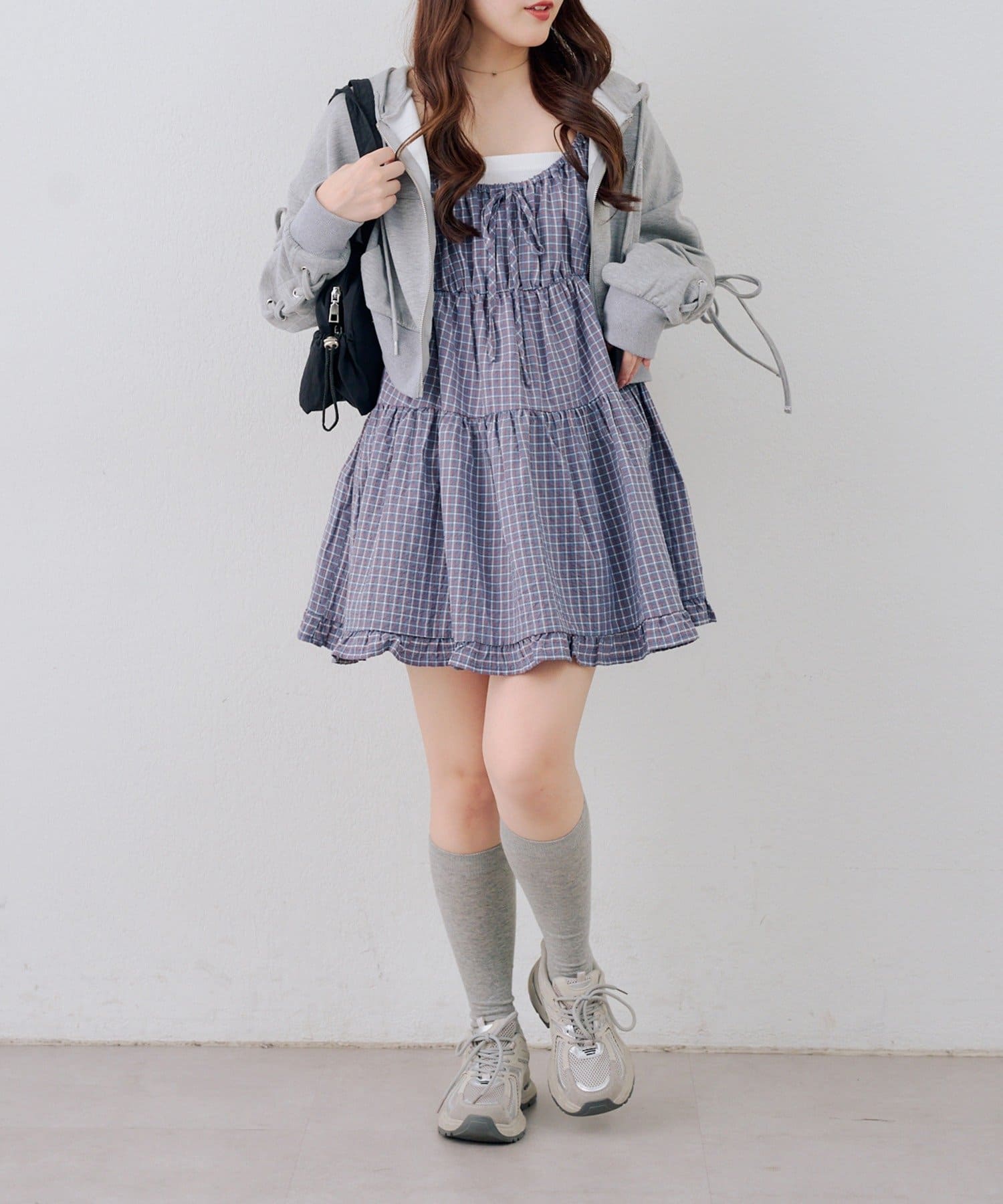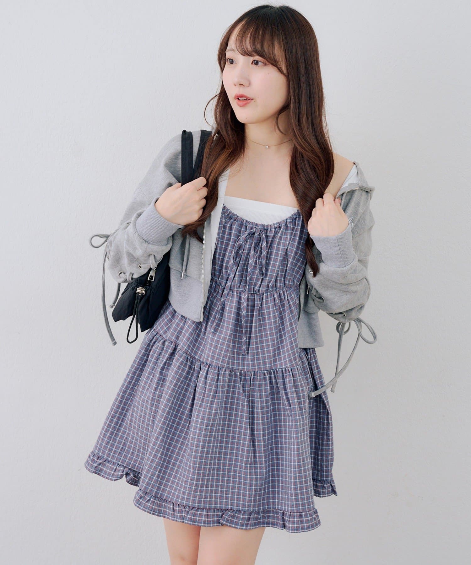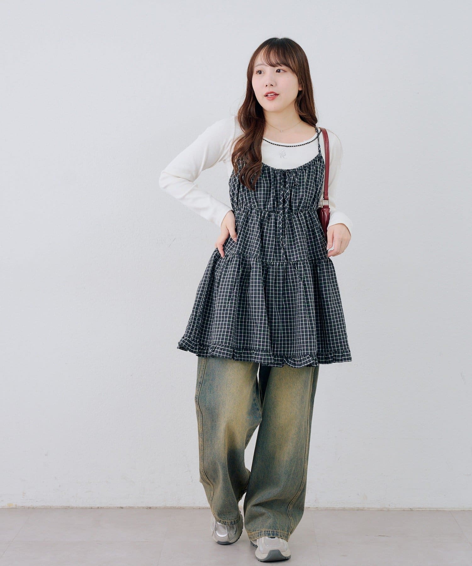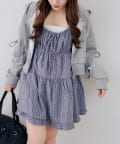 ・涼しげな印象のチェック柄ティアードチュニックワンピース