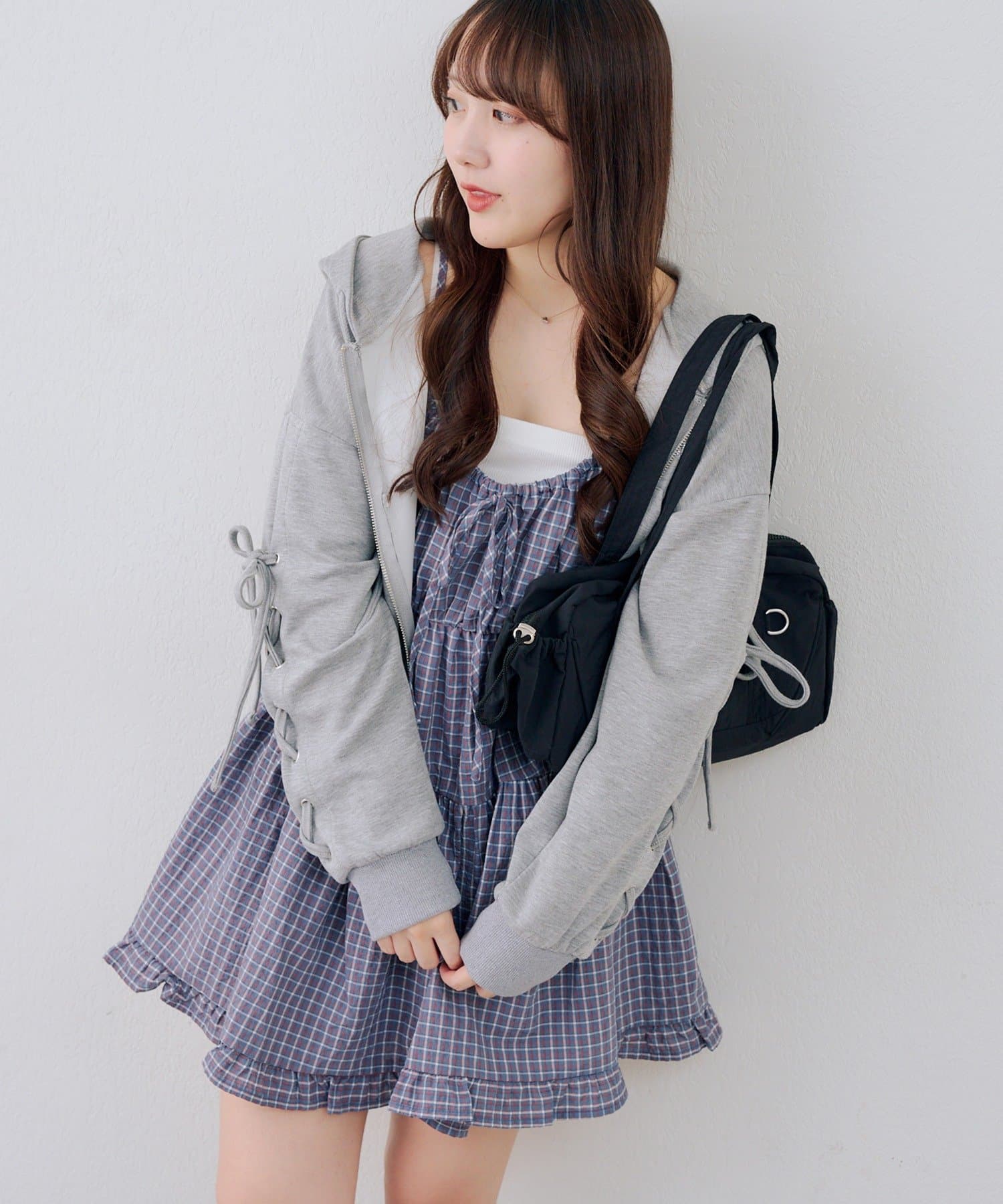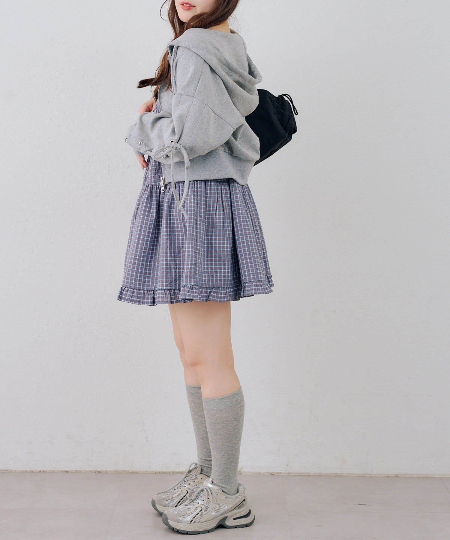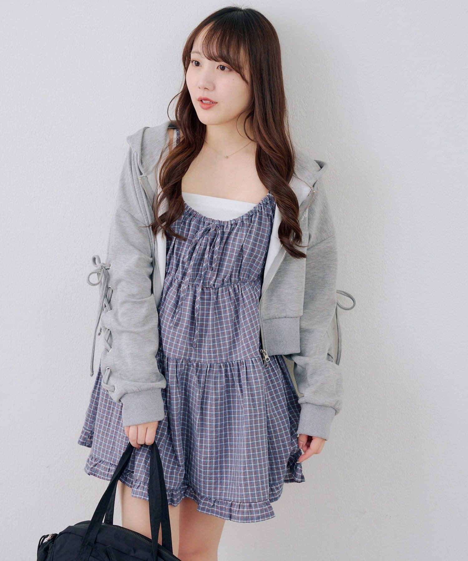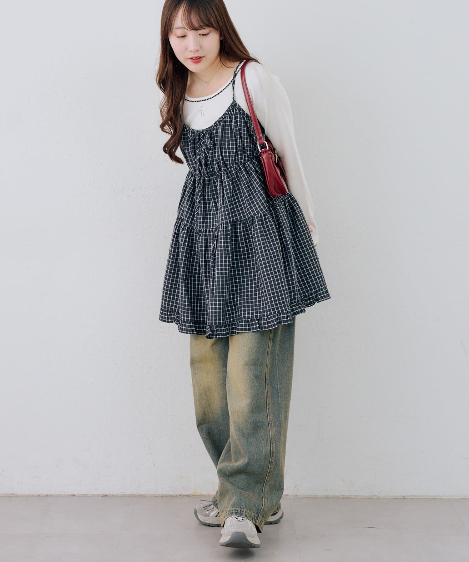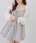 ・涼しげな印象のチェック柄ティアードチュニックワンピース