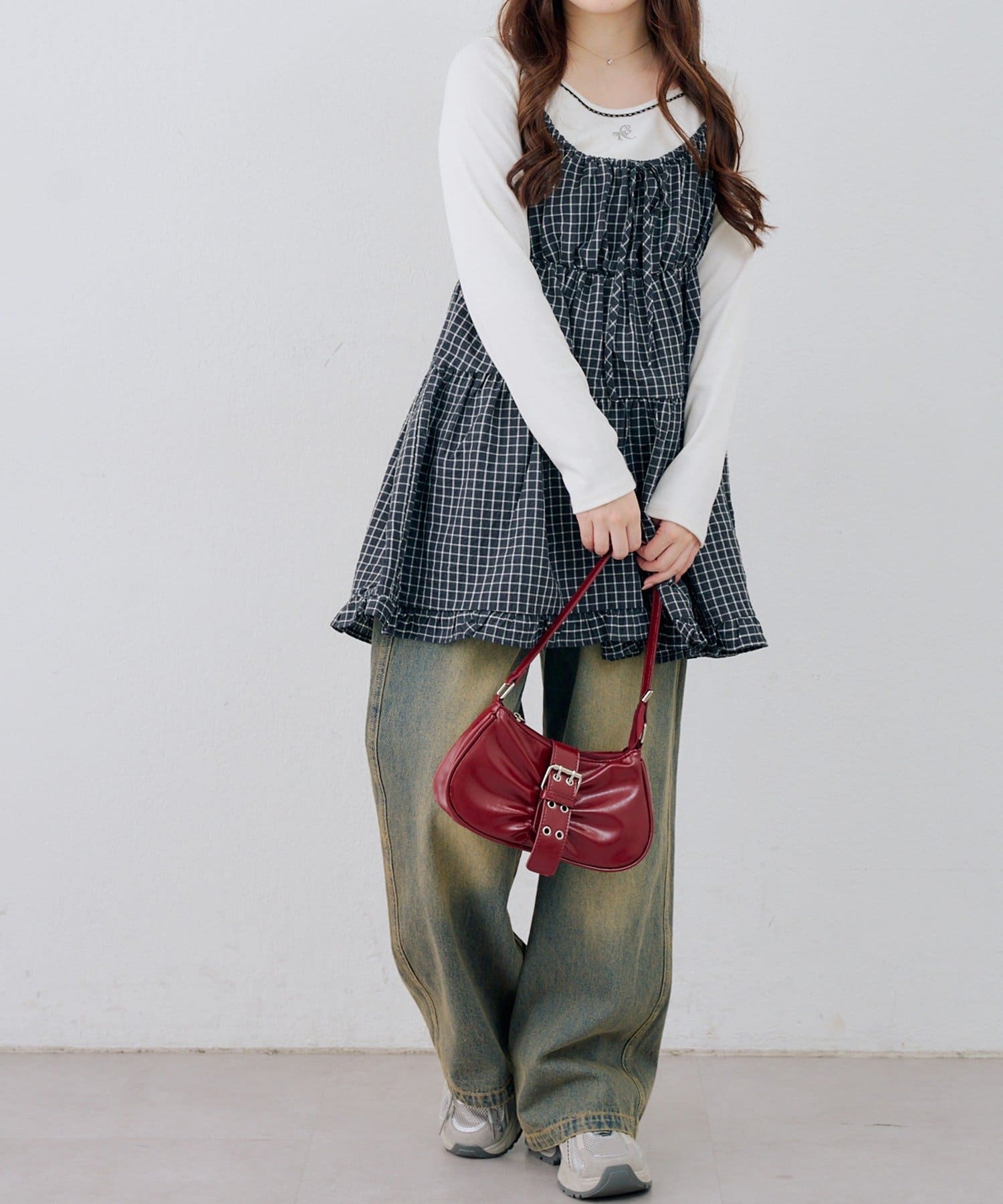 ・ロングスカートやワイドパンツとレイヤードして、トレンド感のある着こなしに。ベルトでウエストマークすれば、スタイルアップ効果も期待できます