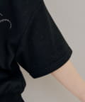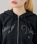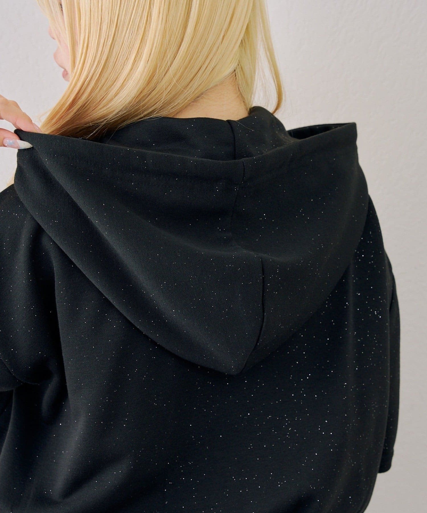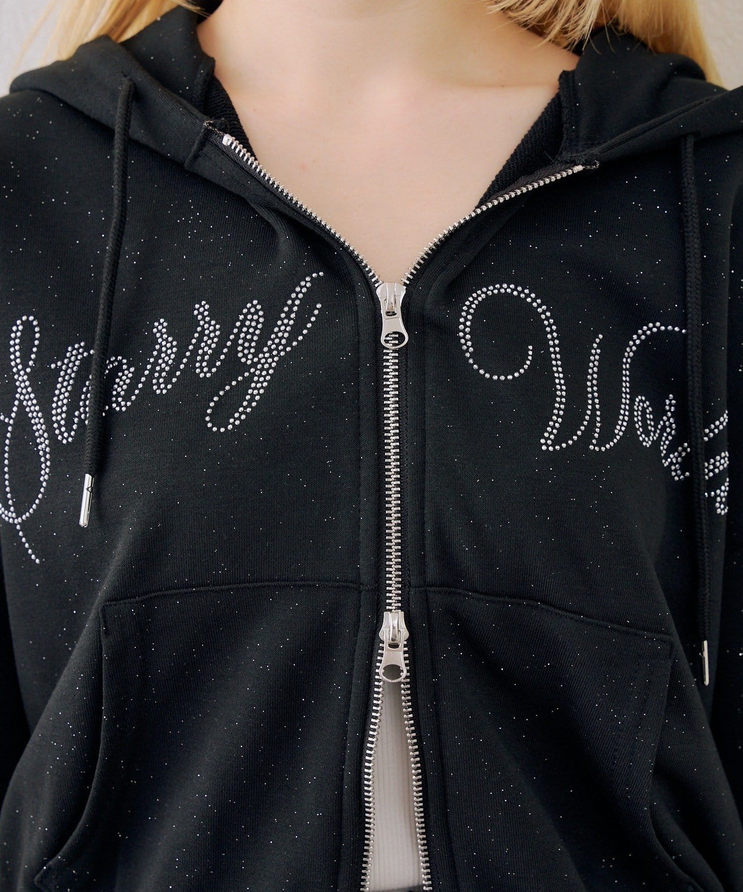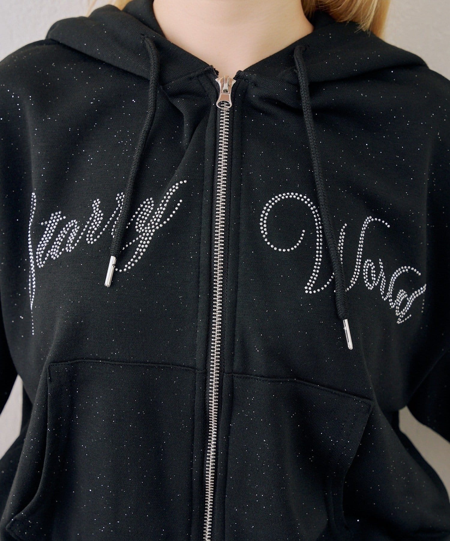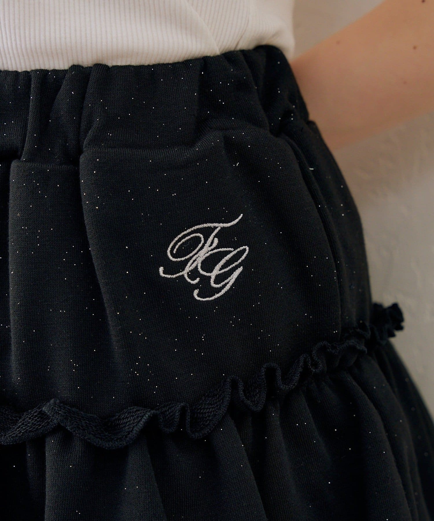 ・フロントのロゴがキラキラと輝き、遊び心と大人っぽさを兼ね備えた半袖スウェットパーカーとスカートのセット