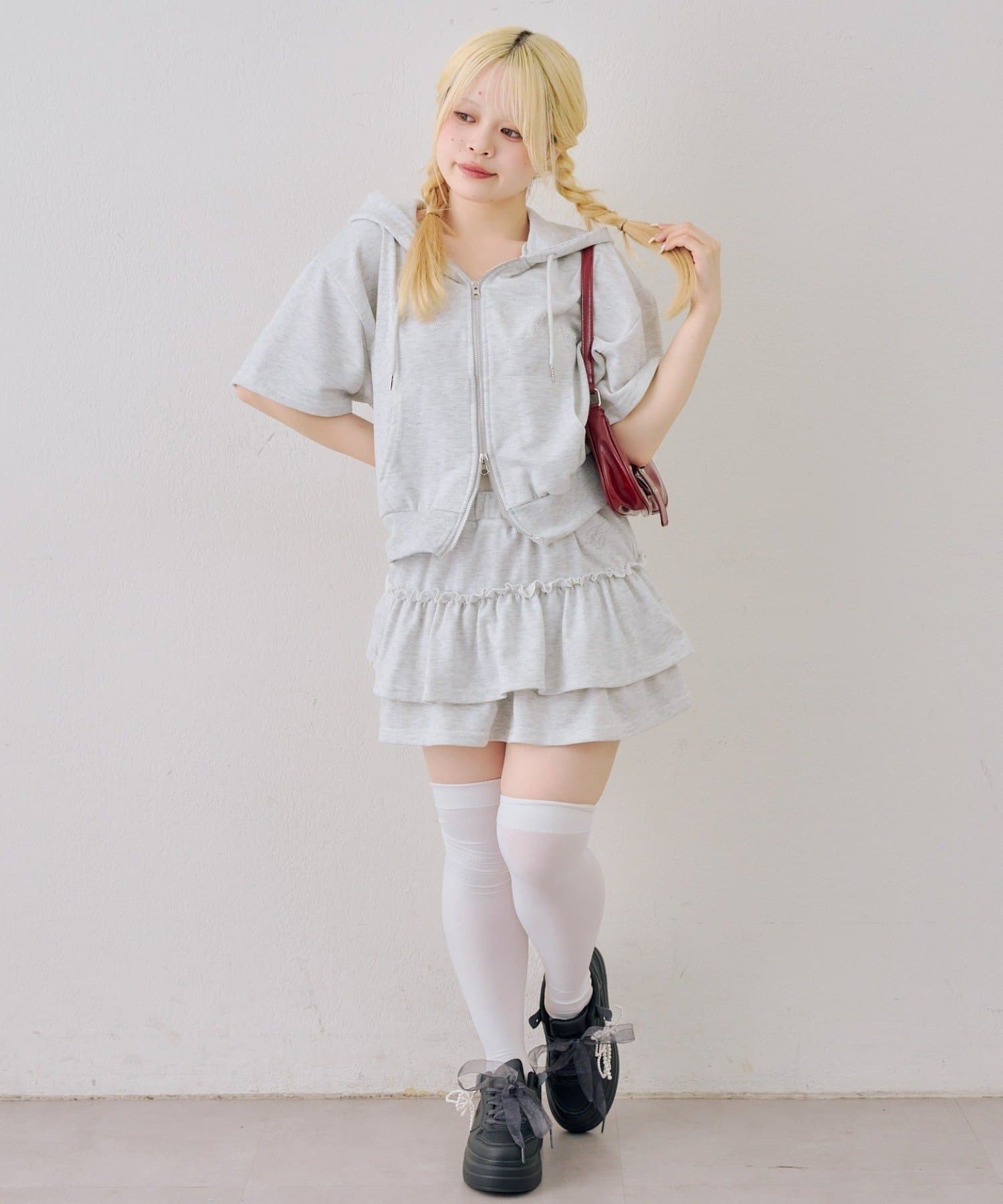 【ANOTHER BRANCH】スウェットZIP半袖+ティアードミニスカート