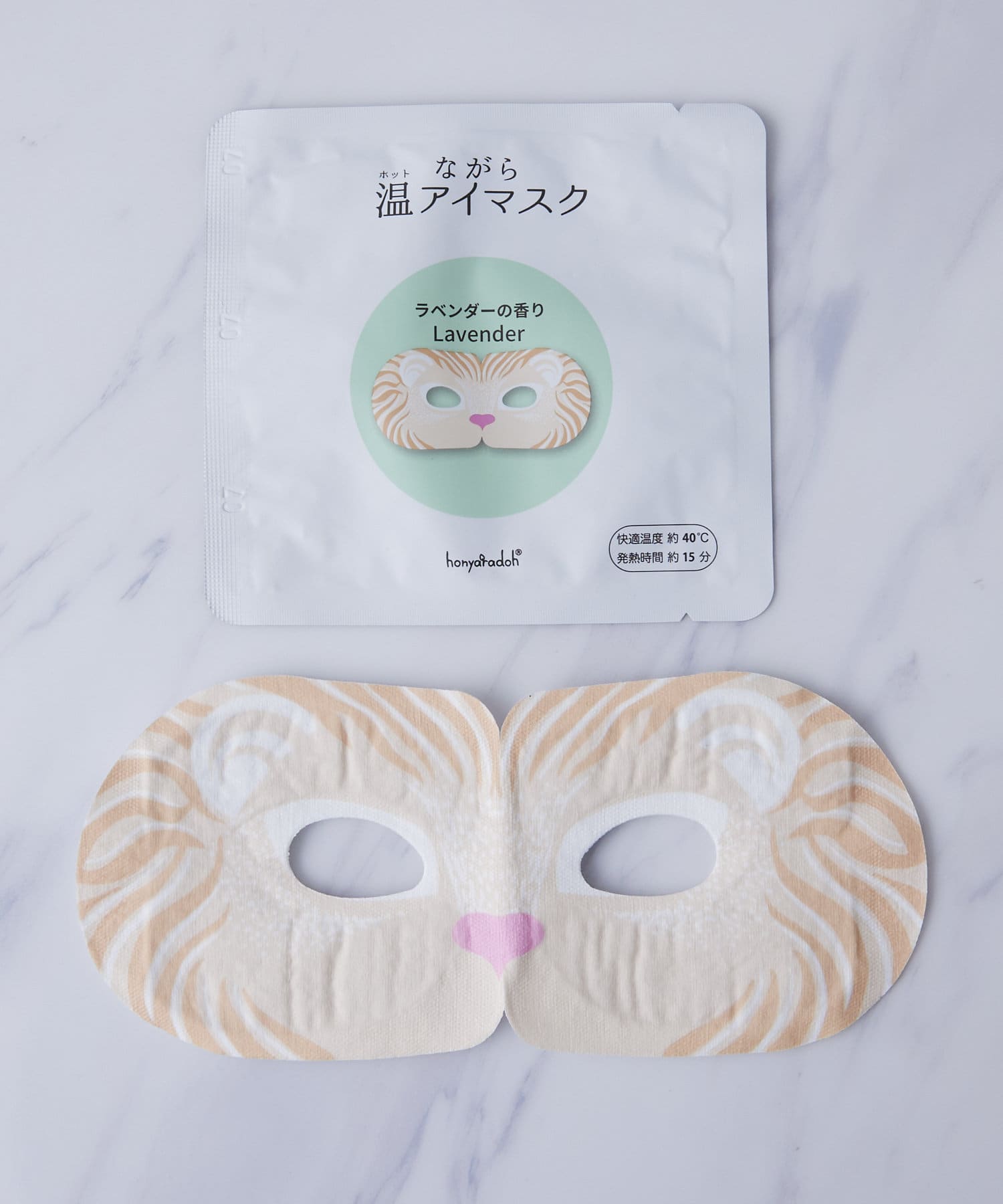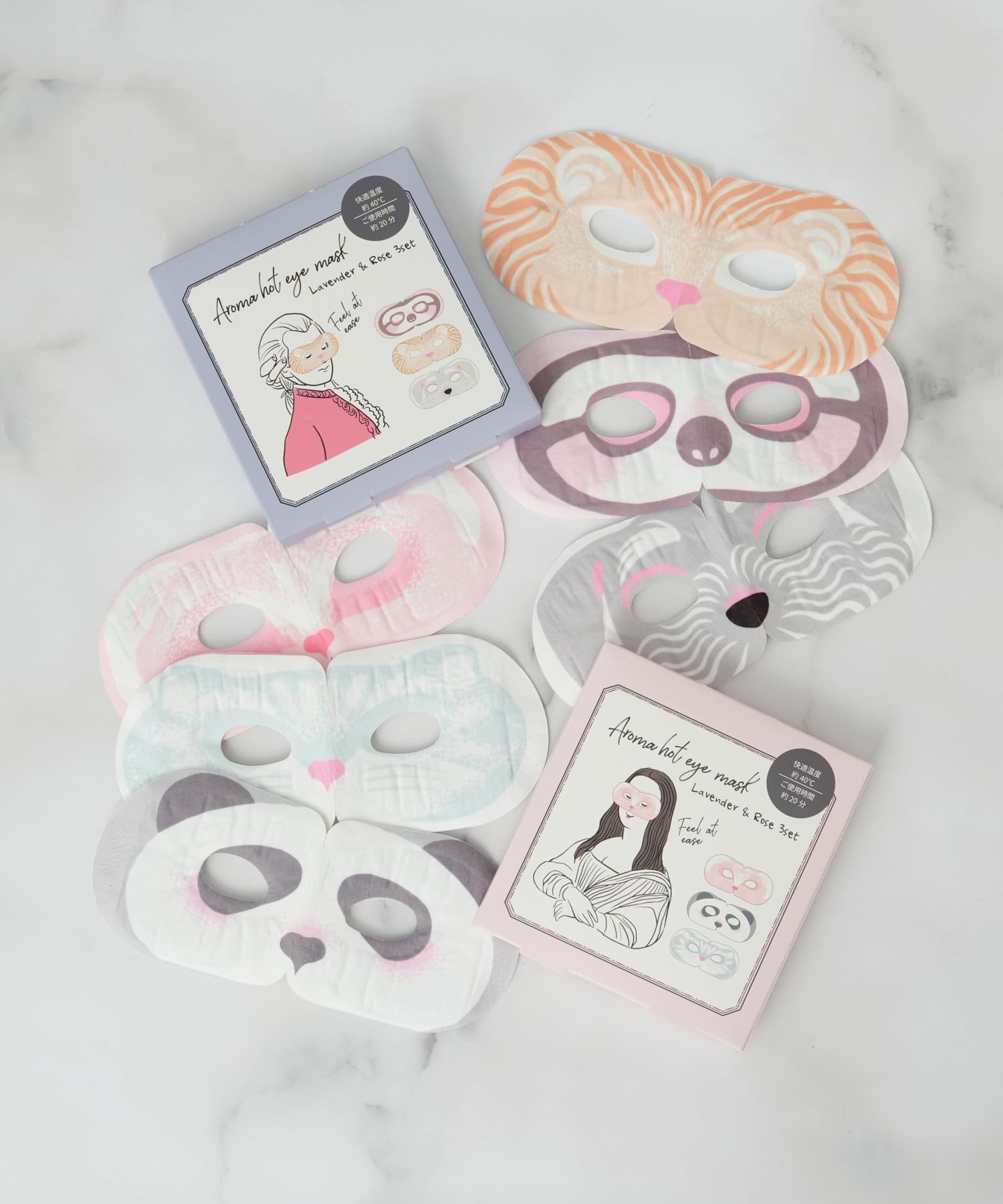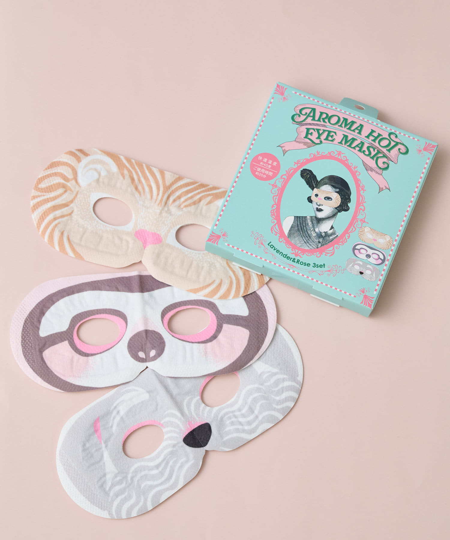 袋の中には3種類のアニマルのイラストが描かれた愉快なアイマスクが3種類入っています。約40℃の温度が目元を温め疲れを癒します。