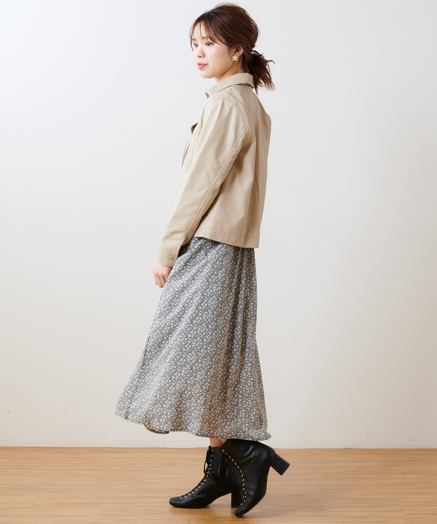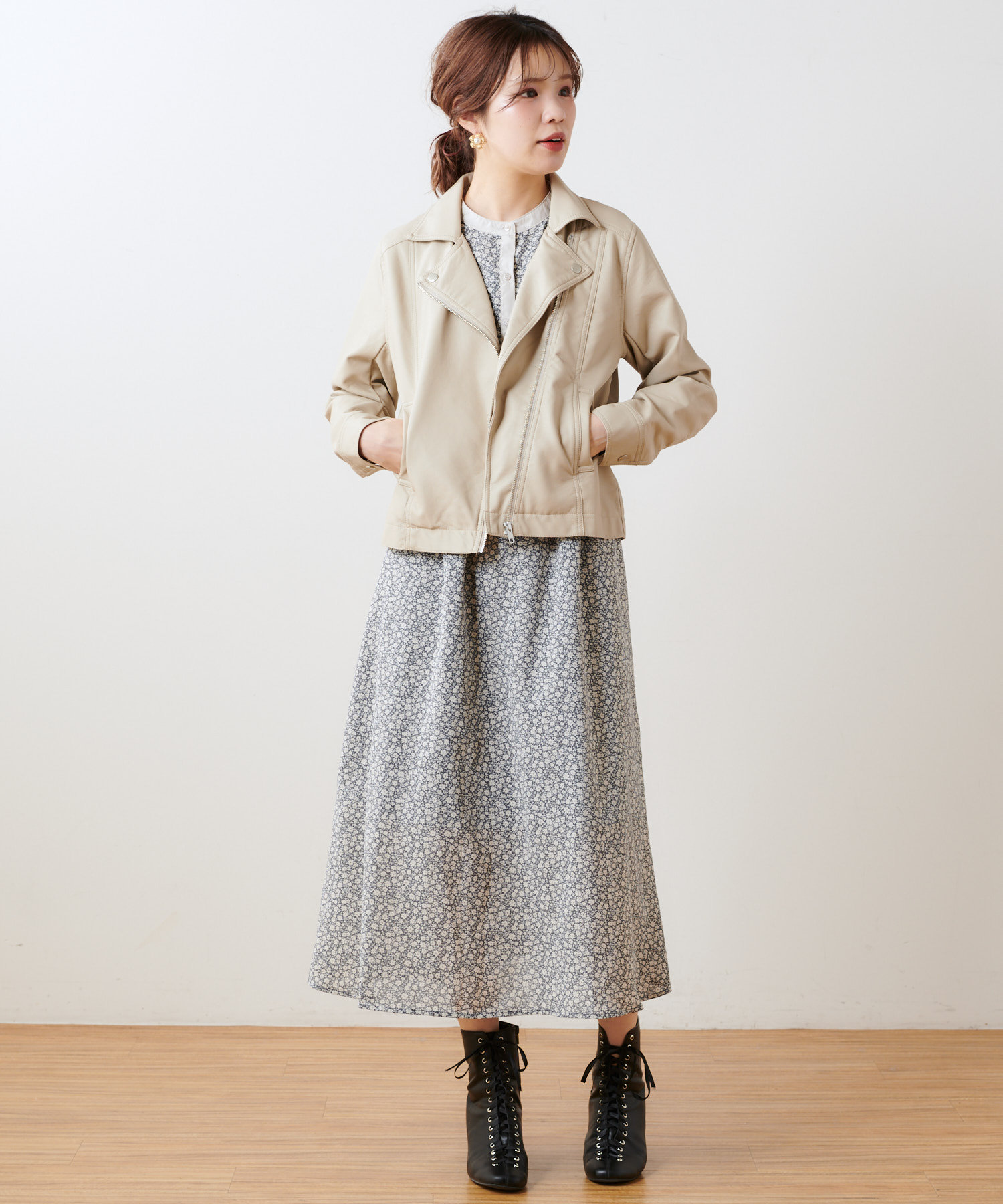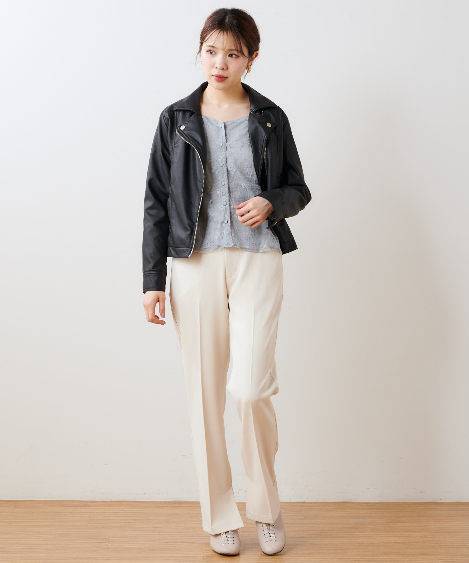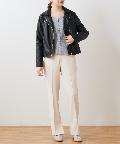 《定番人気のシンプルなダブルライダースジャケットもコンパクトな丈感で女性らしい着こなしに!》