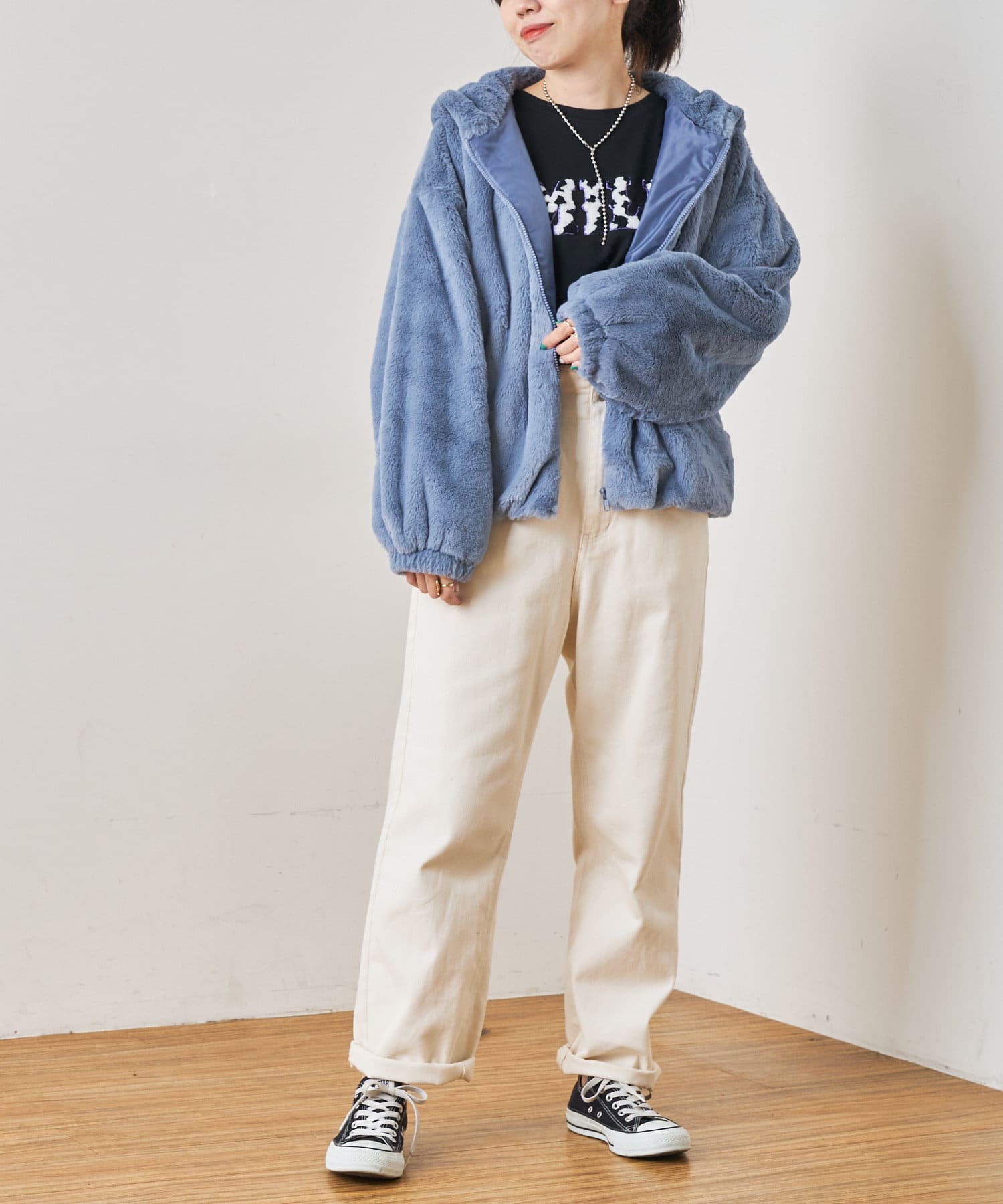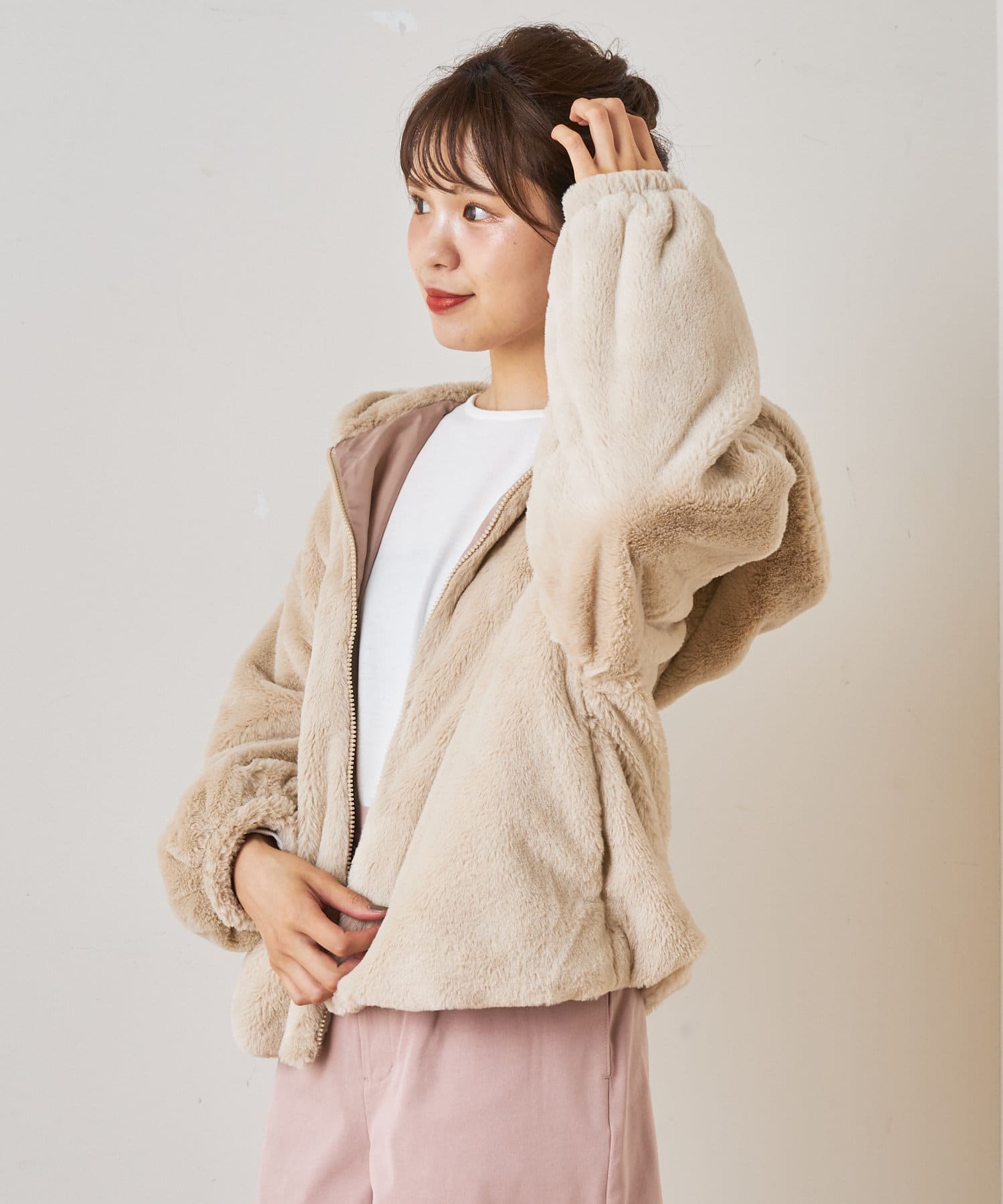 とても肌触りのよいフェイクファーを使ったアウターの登場です。