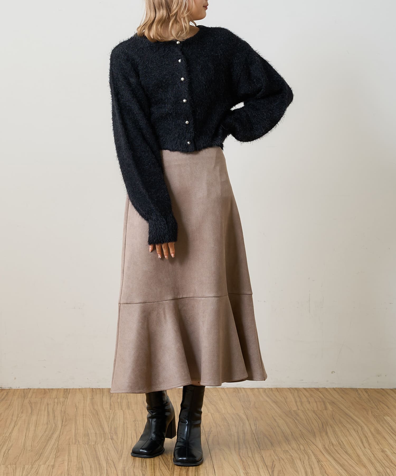 襟付きブラウスやショート丈ニットと合わせて女性ライクに◎