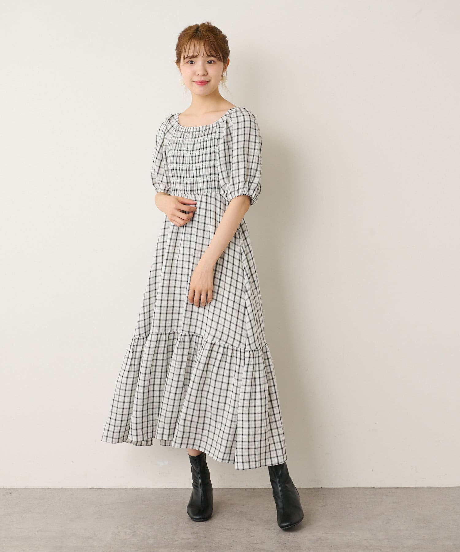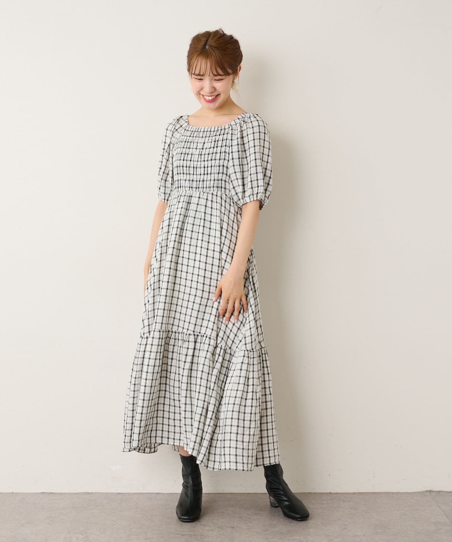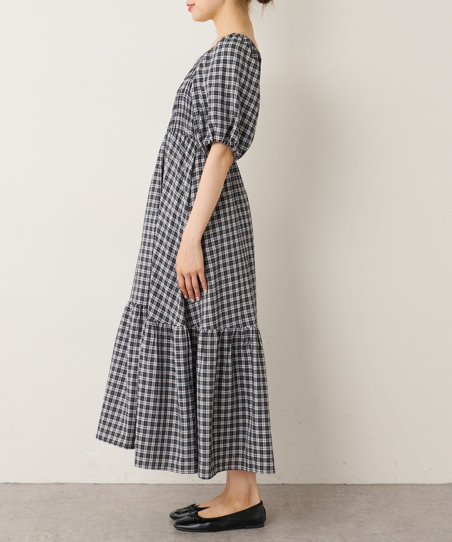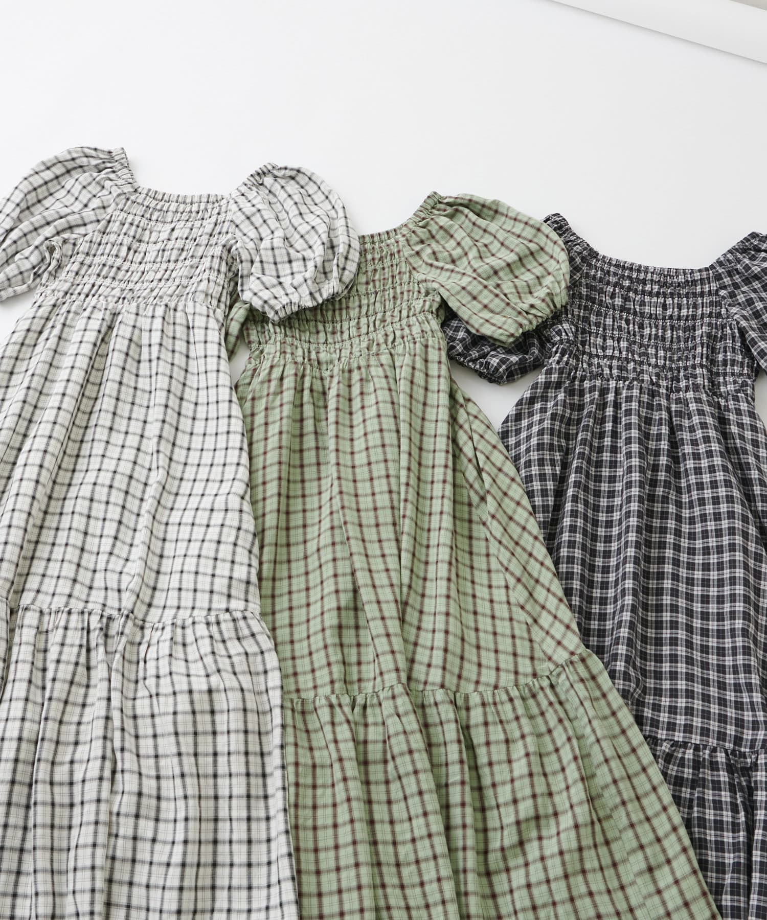 裾ティアード チェックワンピース