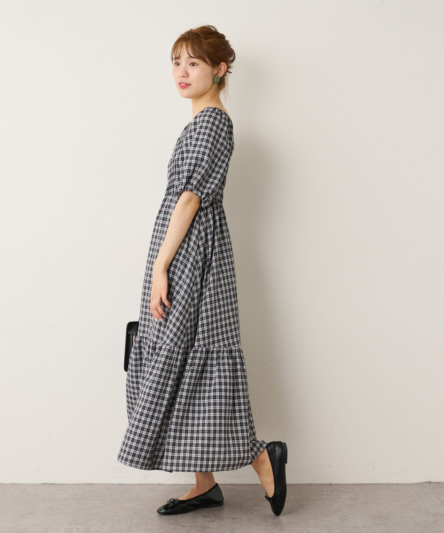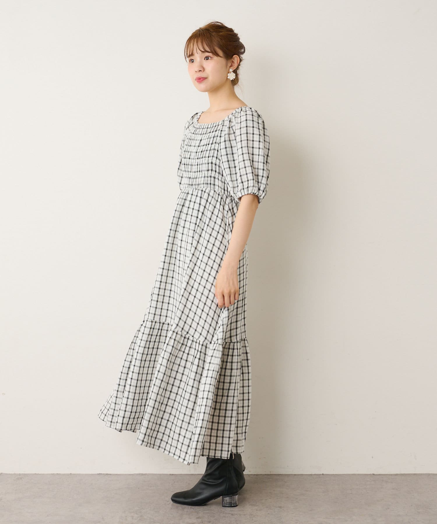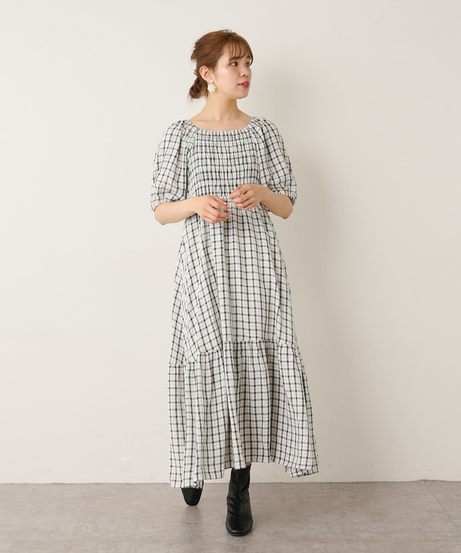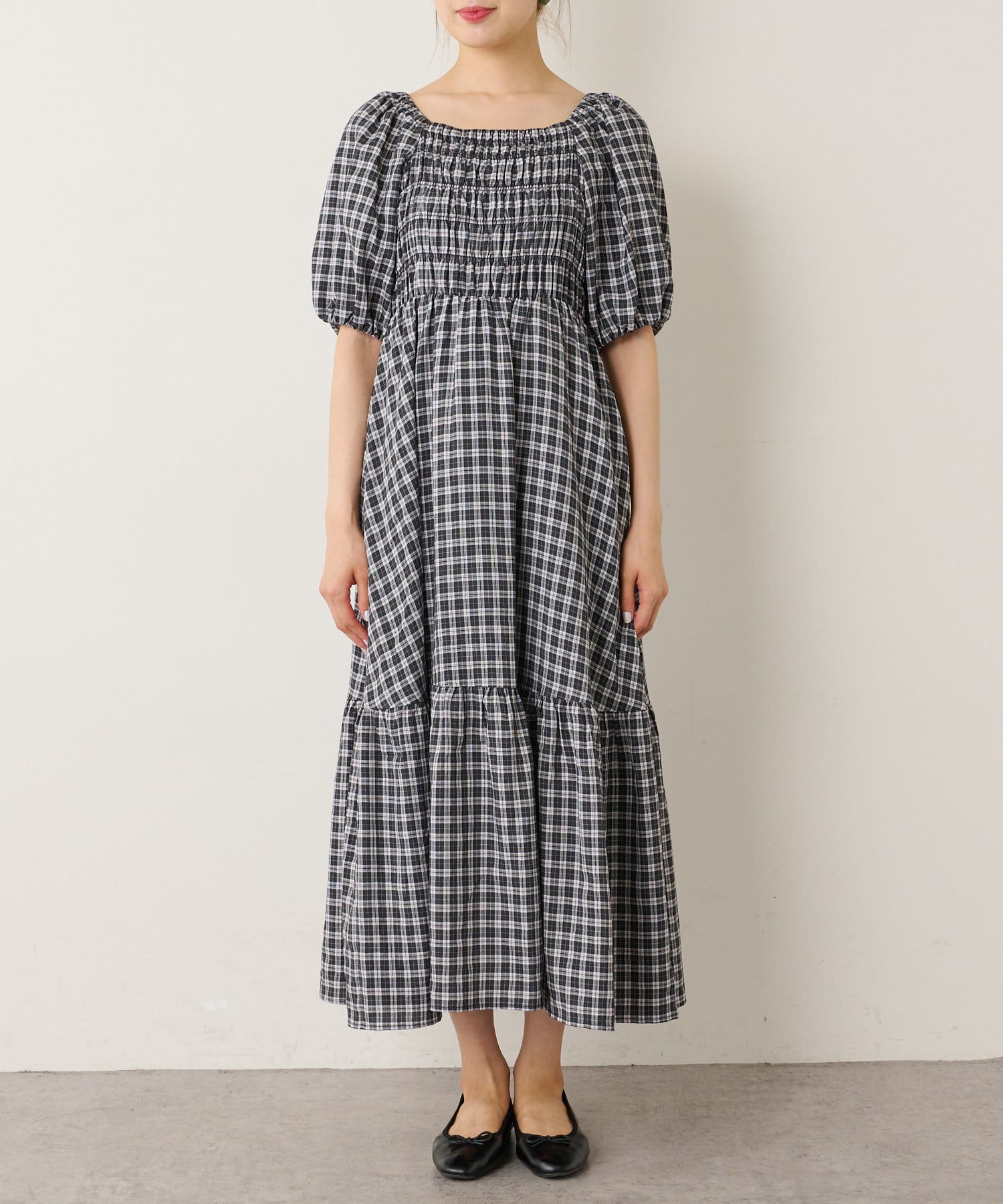 裾ティアード チェックワンピース