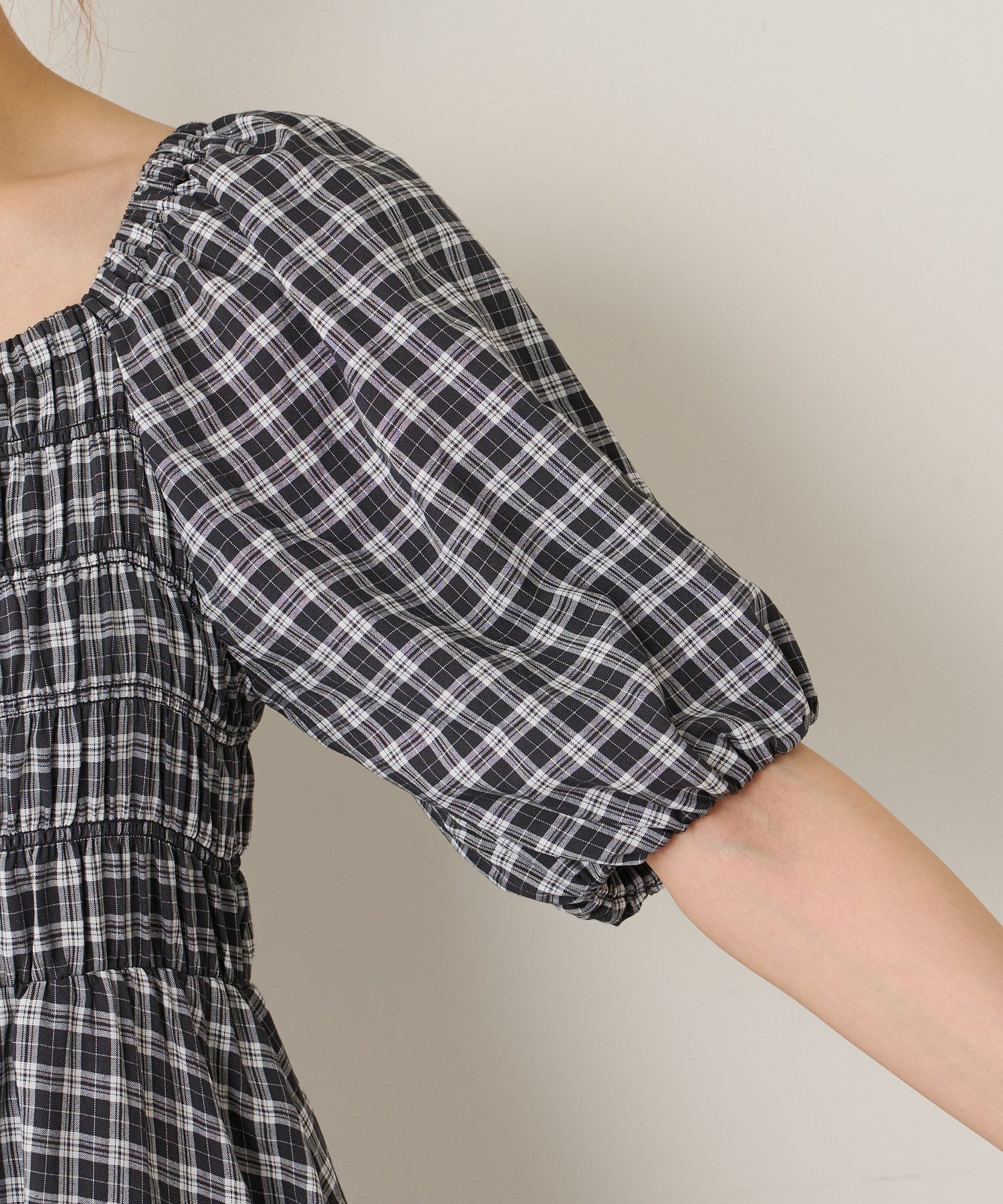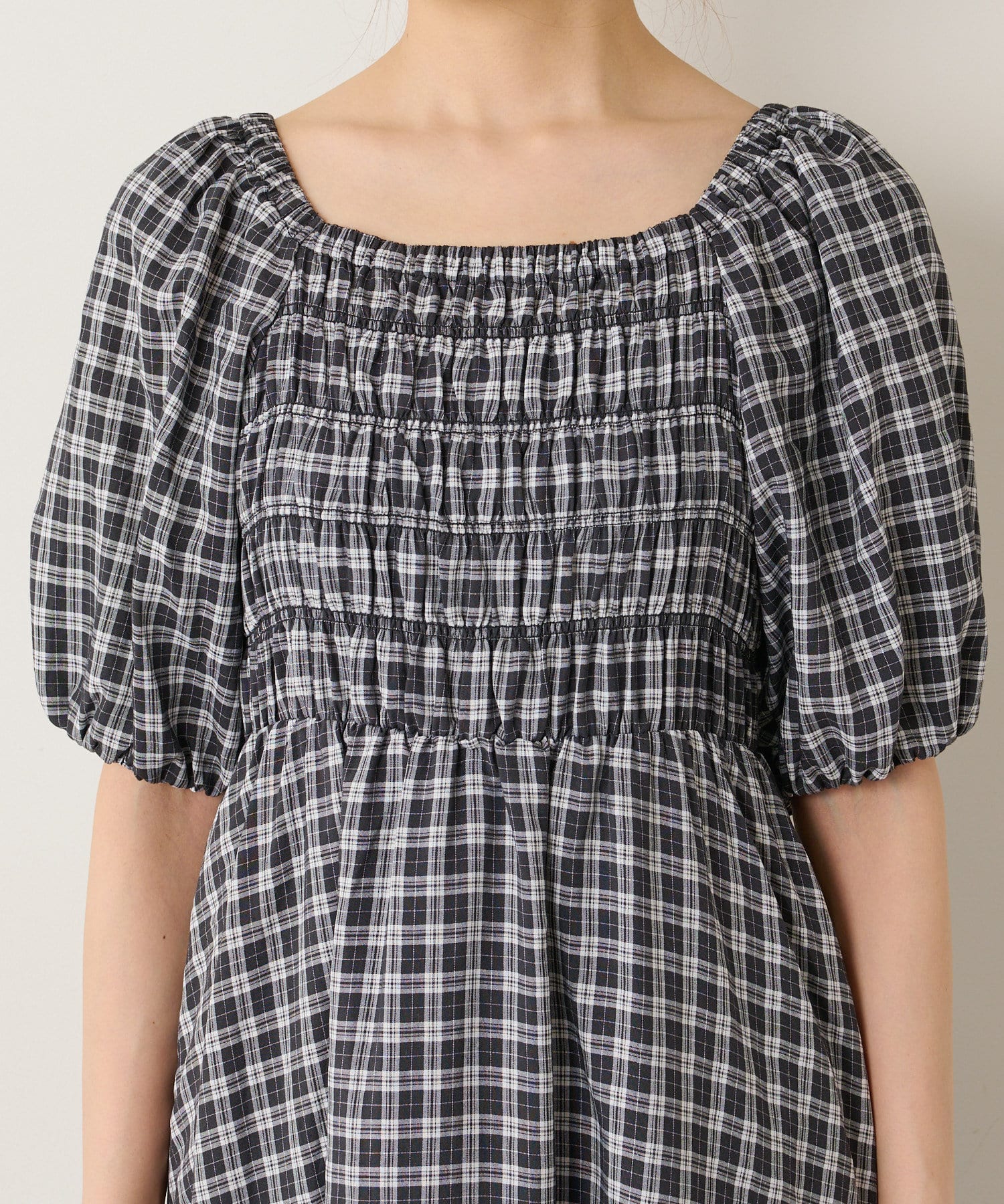 《たっぷりとギャザーを寄せたシャーリングデザイン》