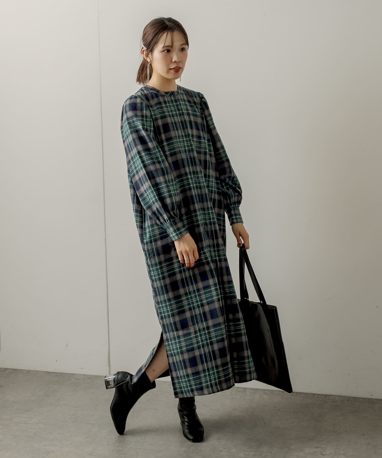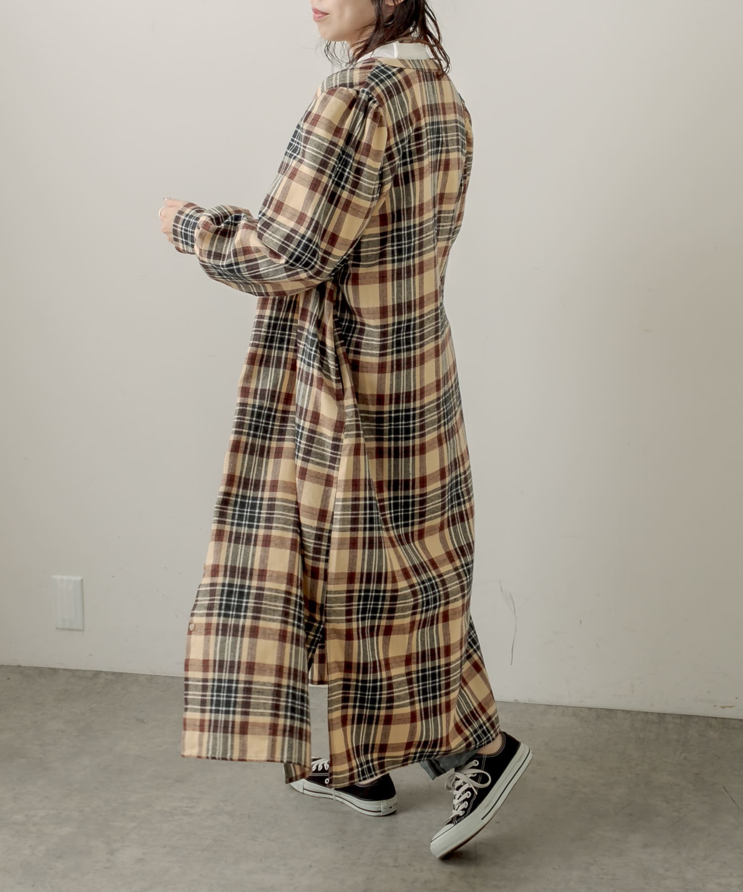 《 シャツのようにサッと羽織れるチェック柄の羽織ワンピース 》