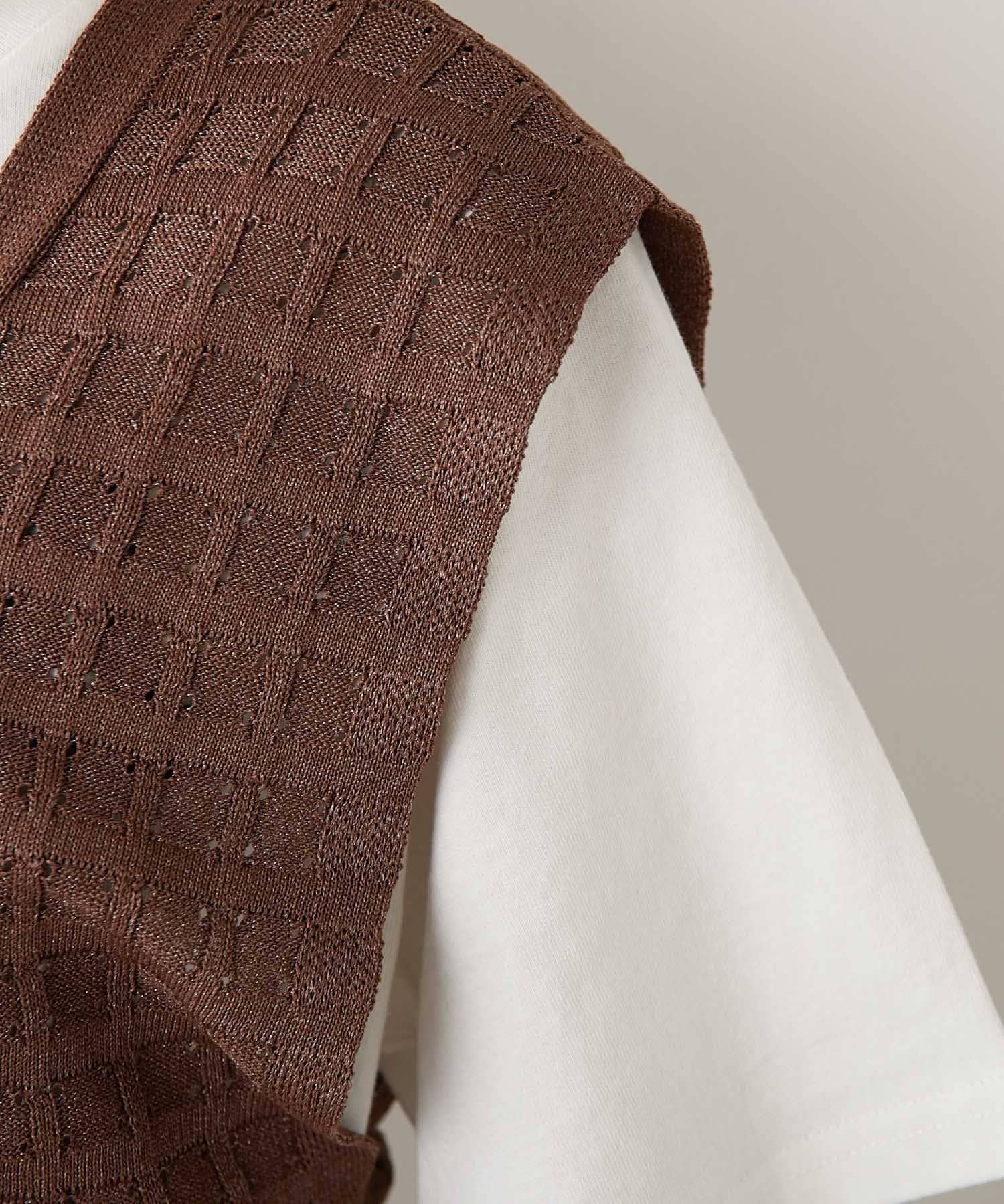 格子透かし編みベスト