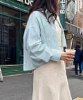 ・ボタン閉め切ってハイウェストなボトムスと合わせてスタイルアップ。