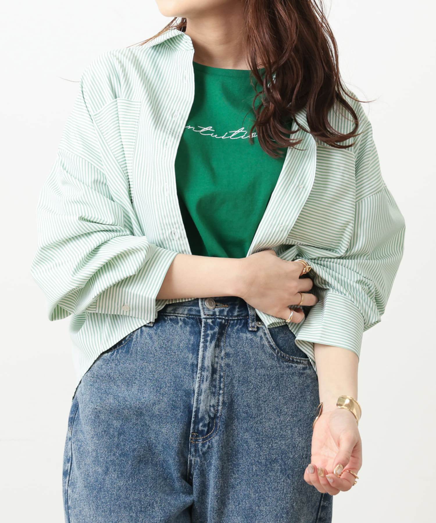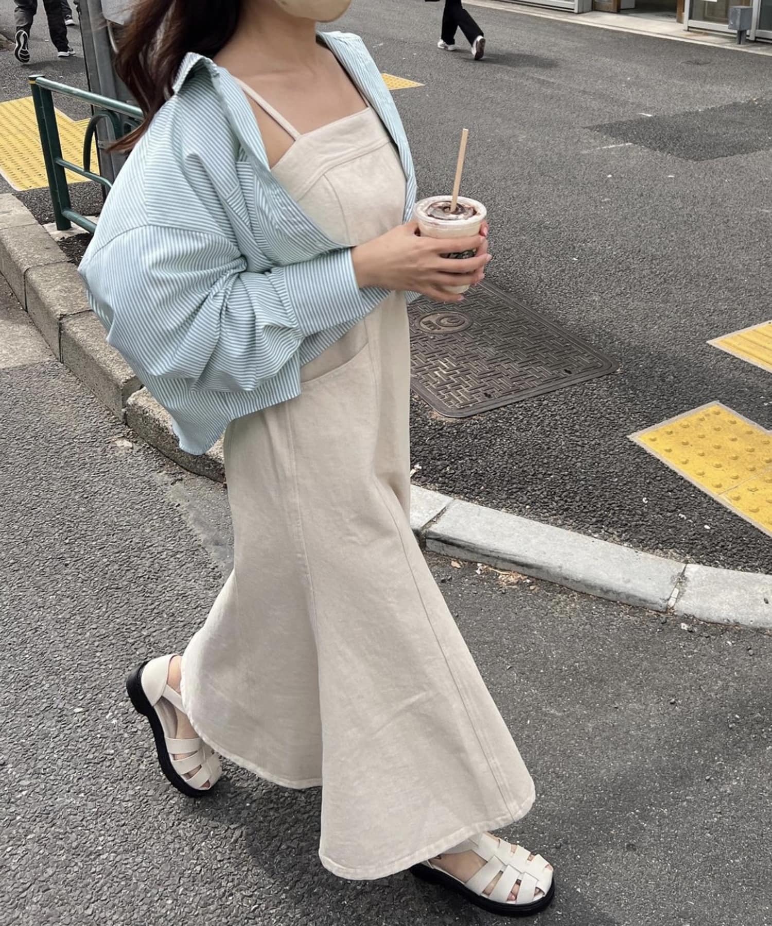 ・キャミワンピースに羽織って大人カジュアルスタイルに。