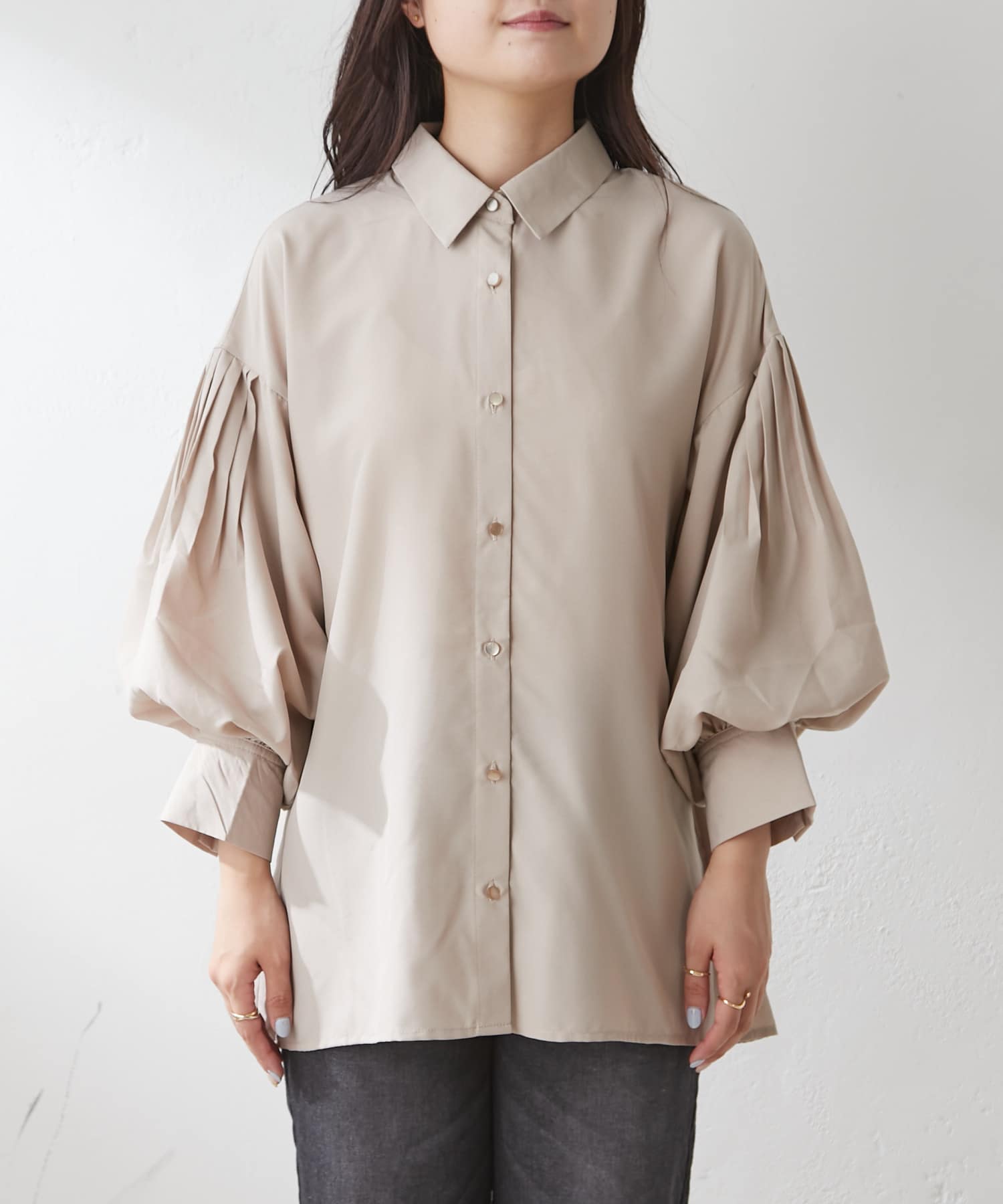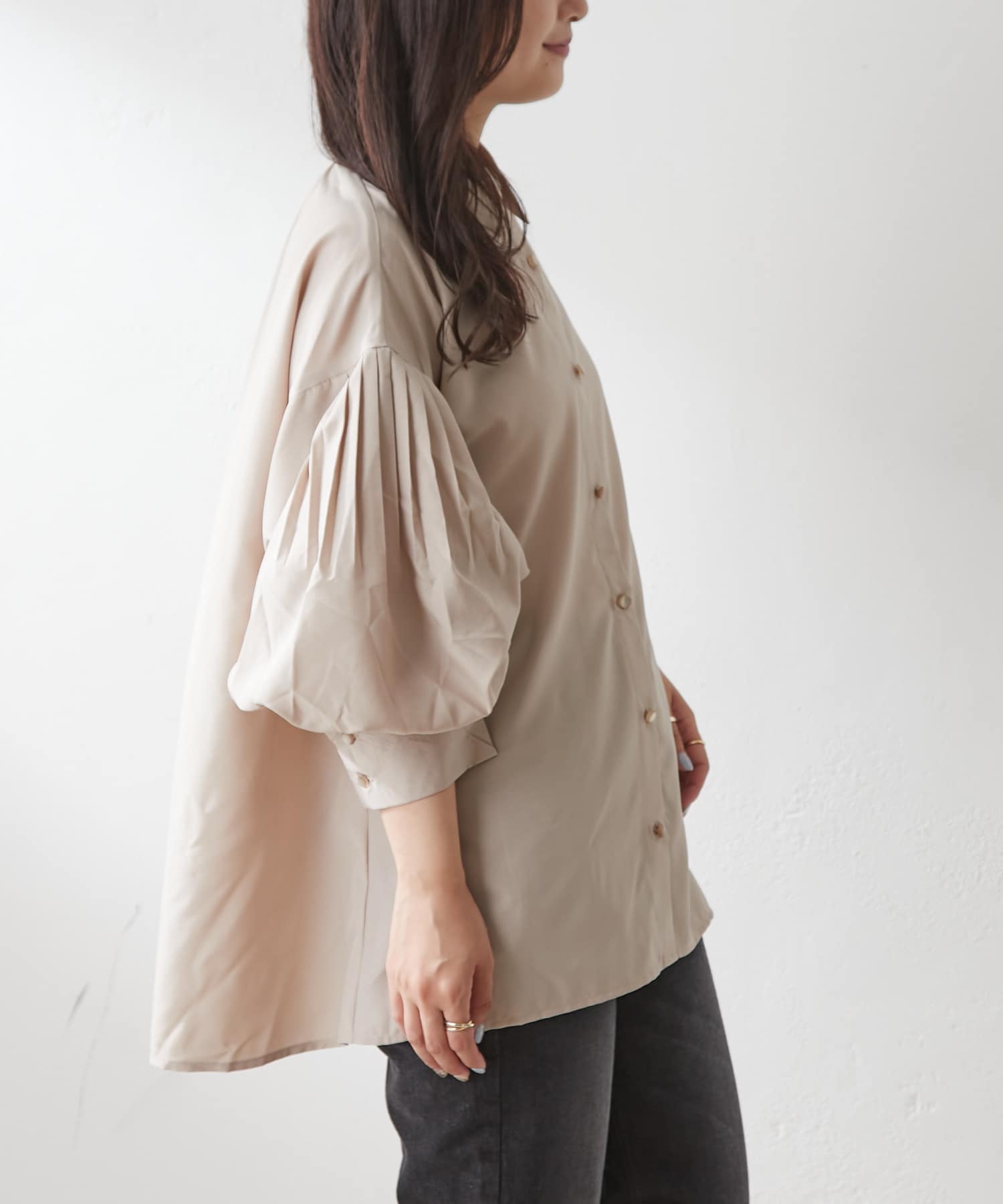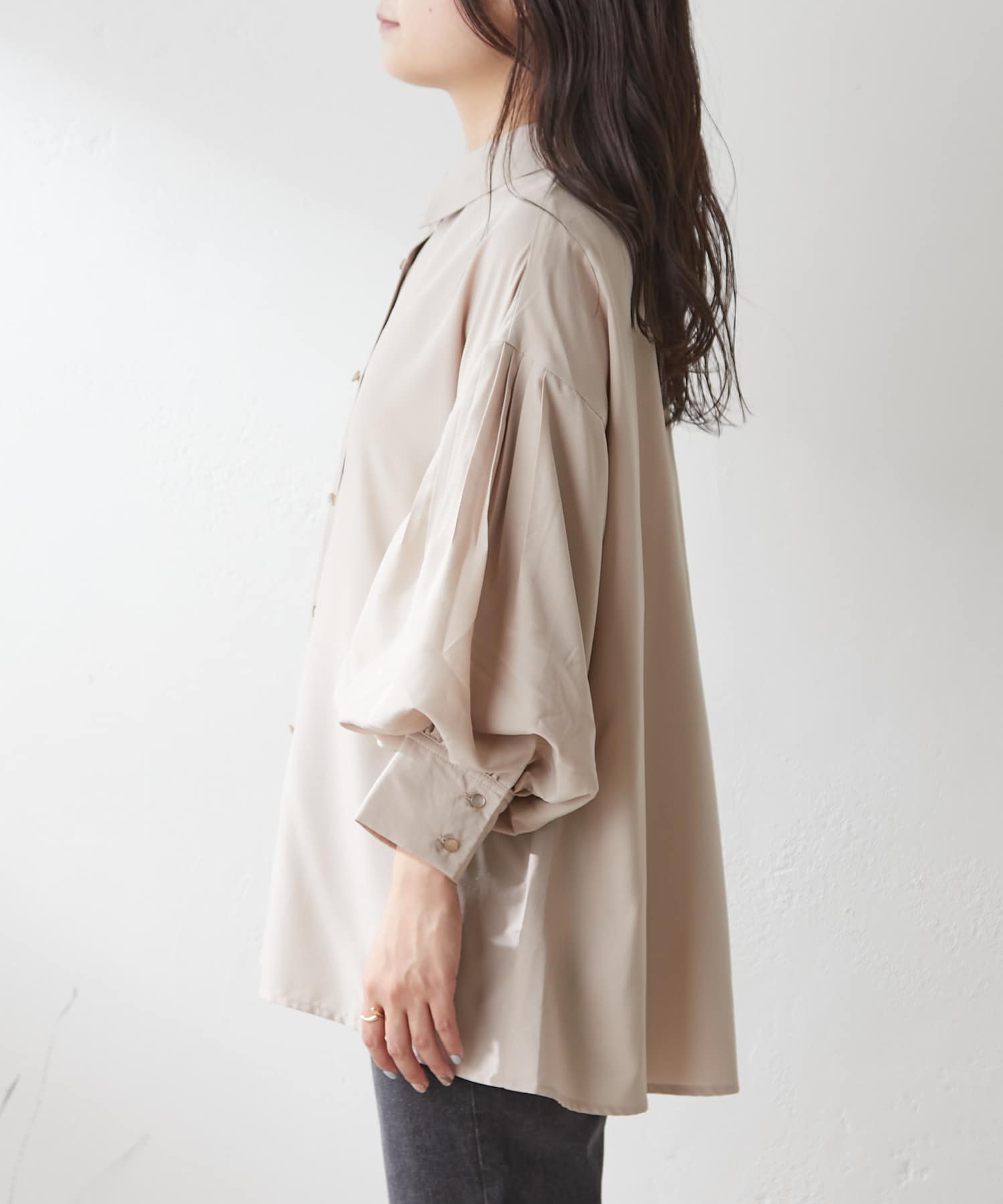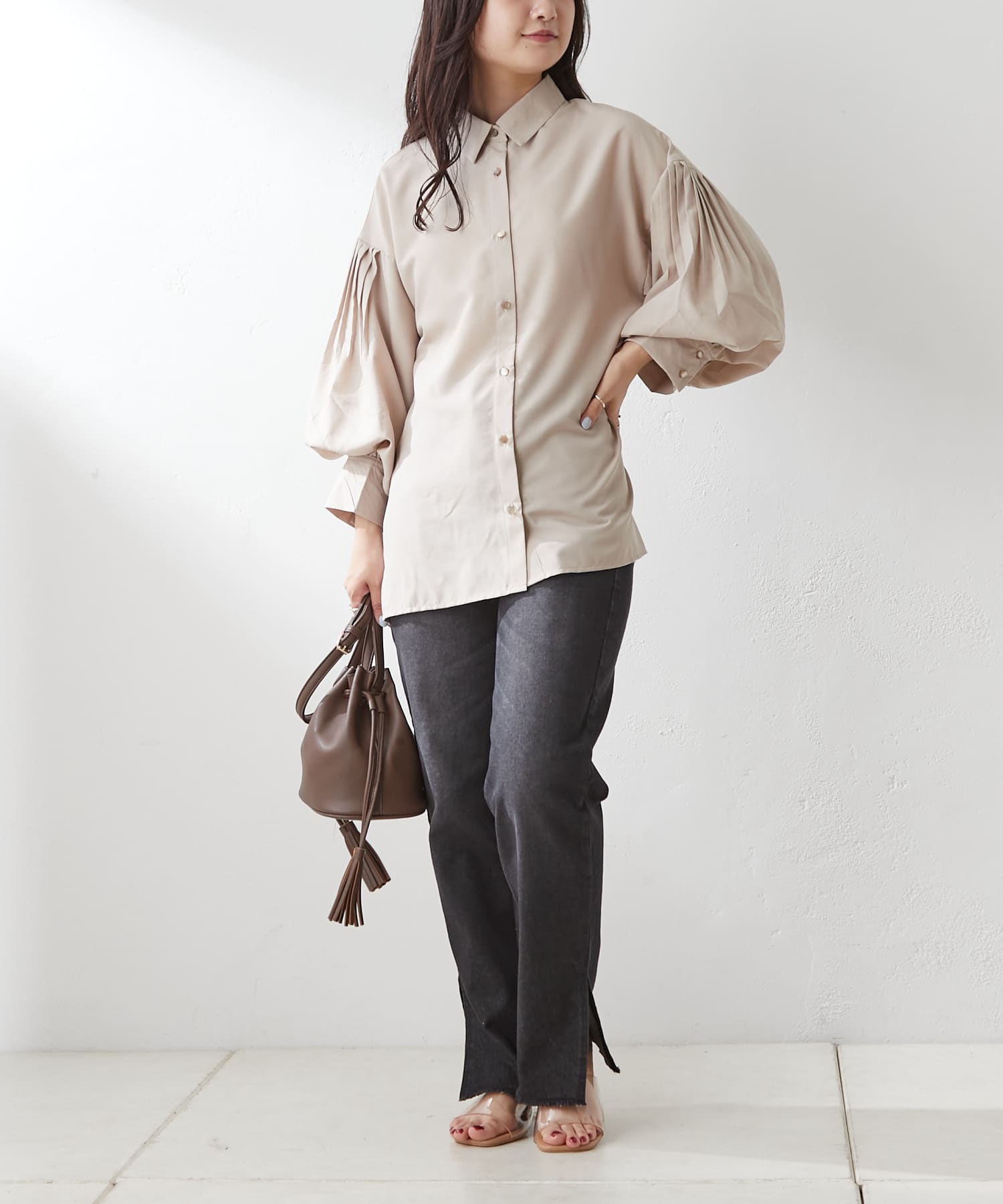 ・こなれ感のある素材とボリューミーな袖で華奢見え。