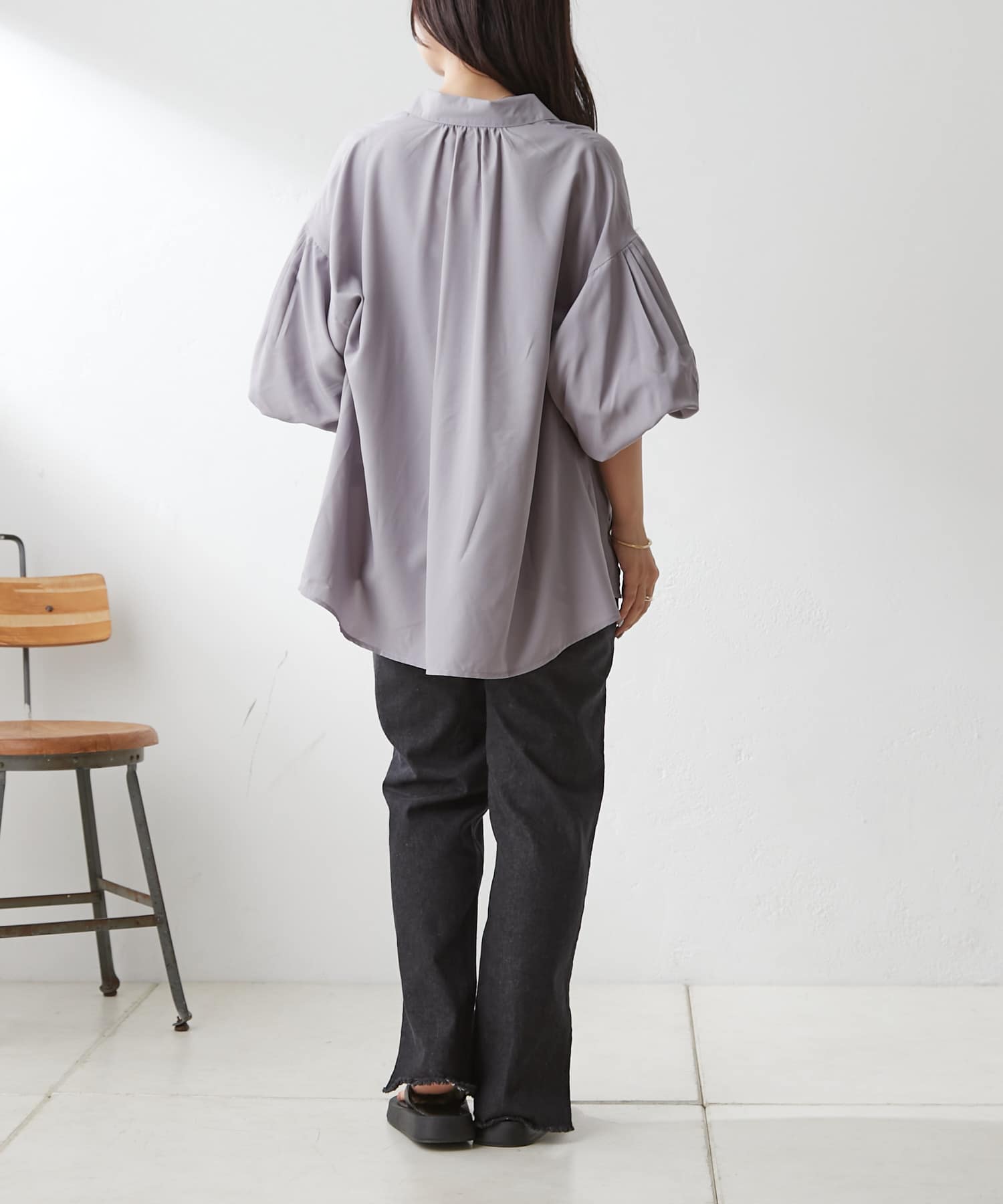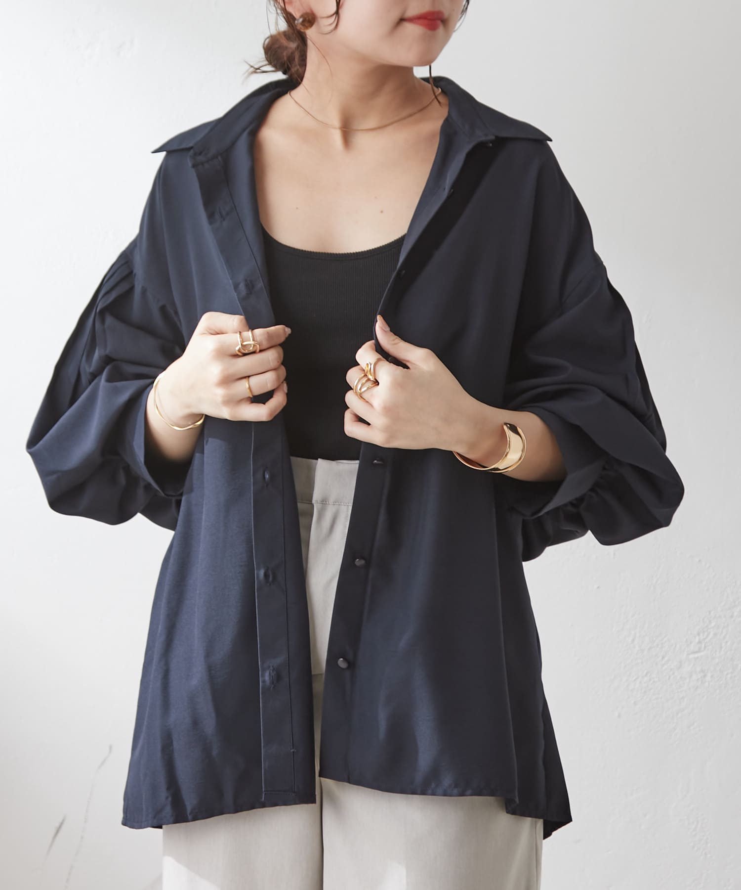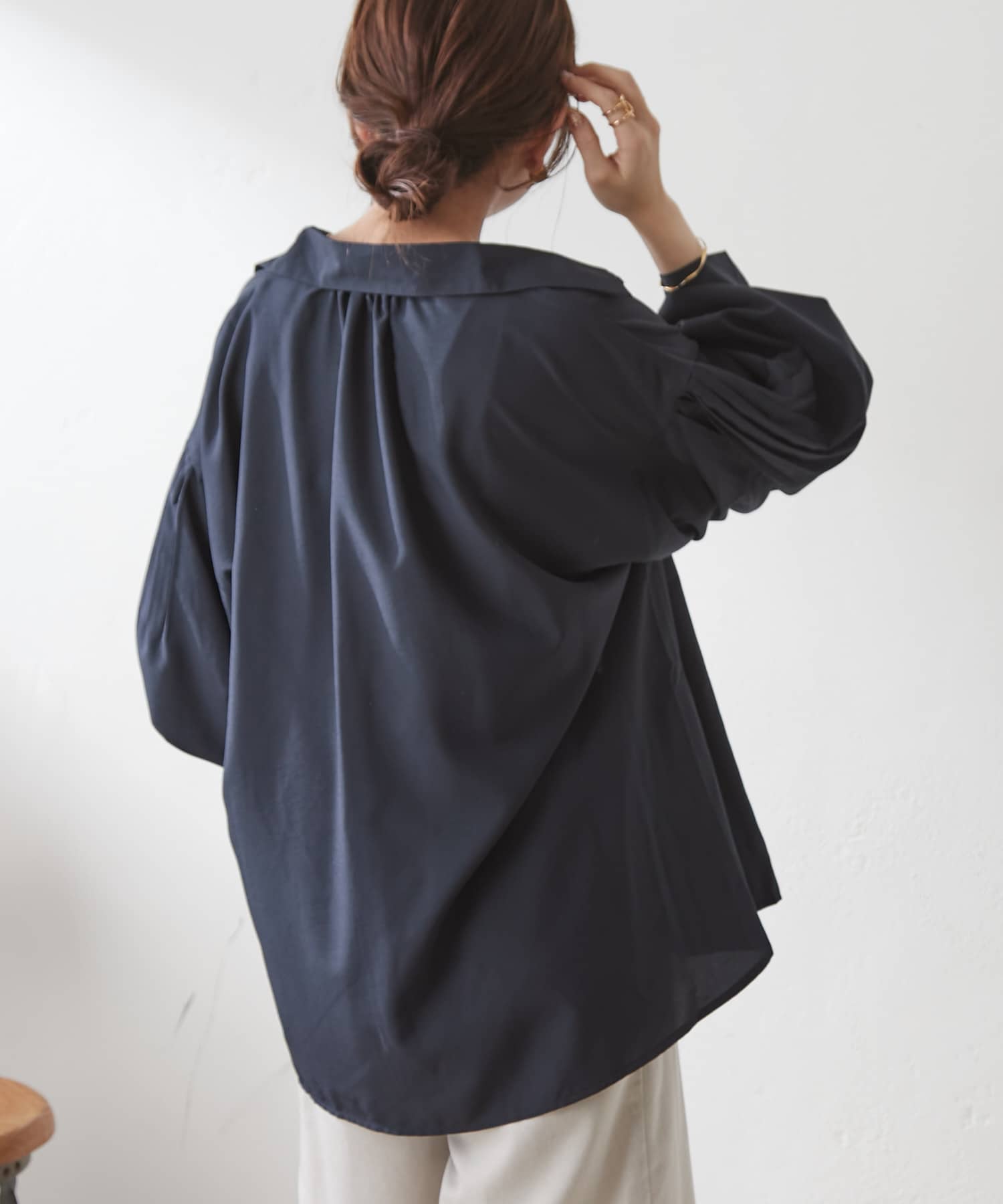 ・こなれ感のある素材とボリューミーな袖で華奢見え。