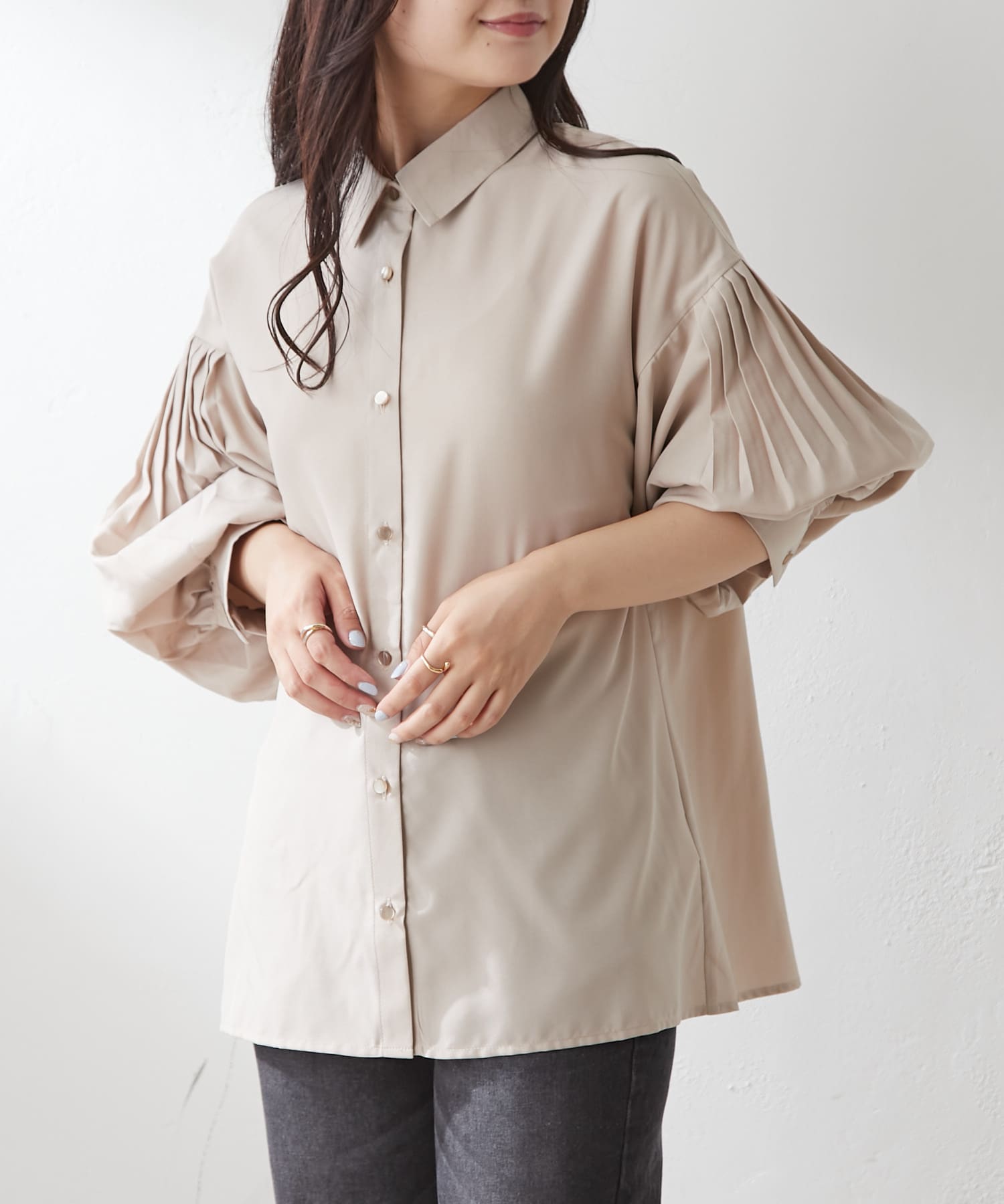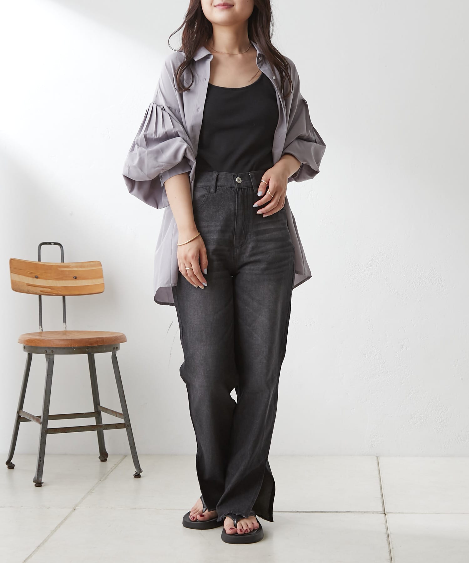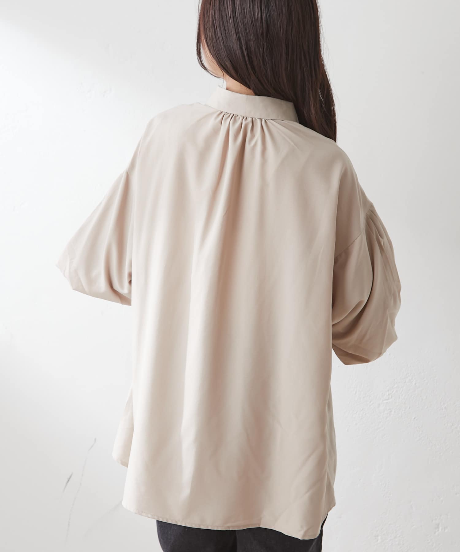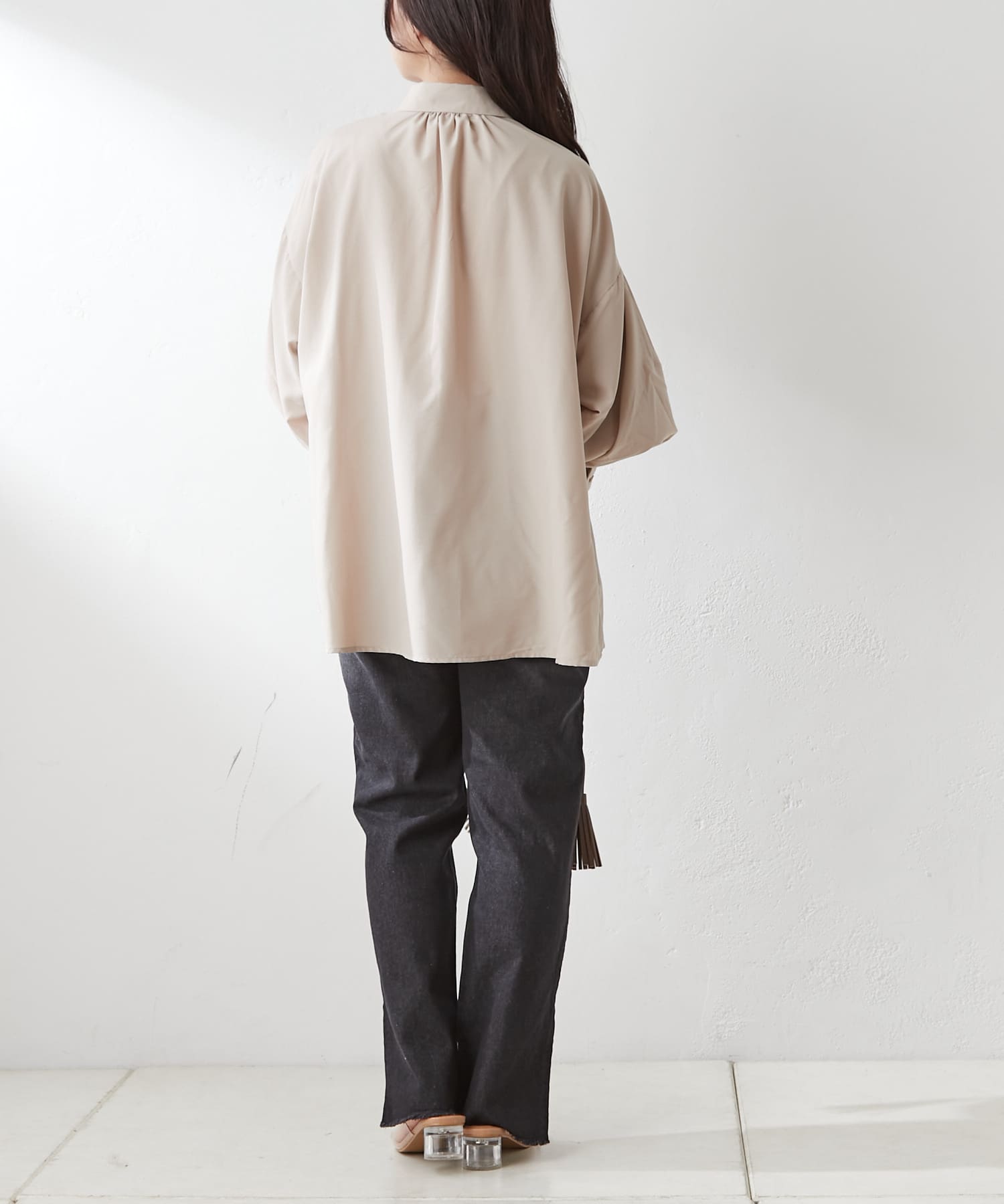 ・こなれ感のある素材とボリューミーな袖で華奢見え。