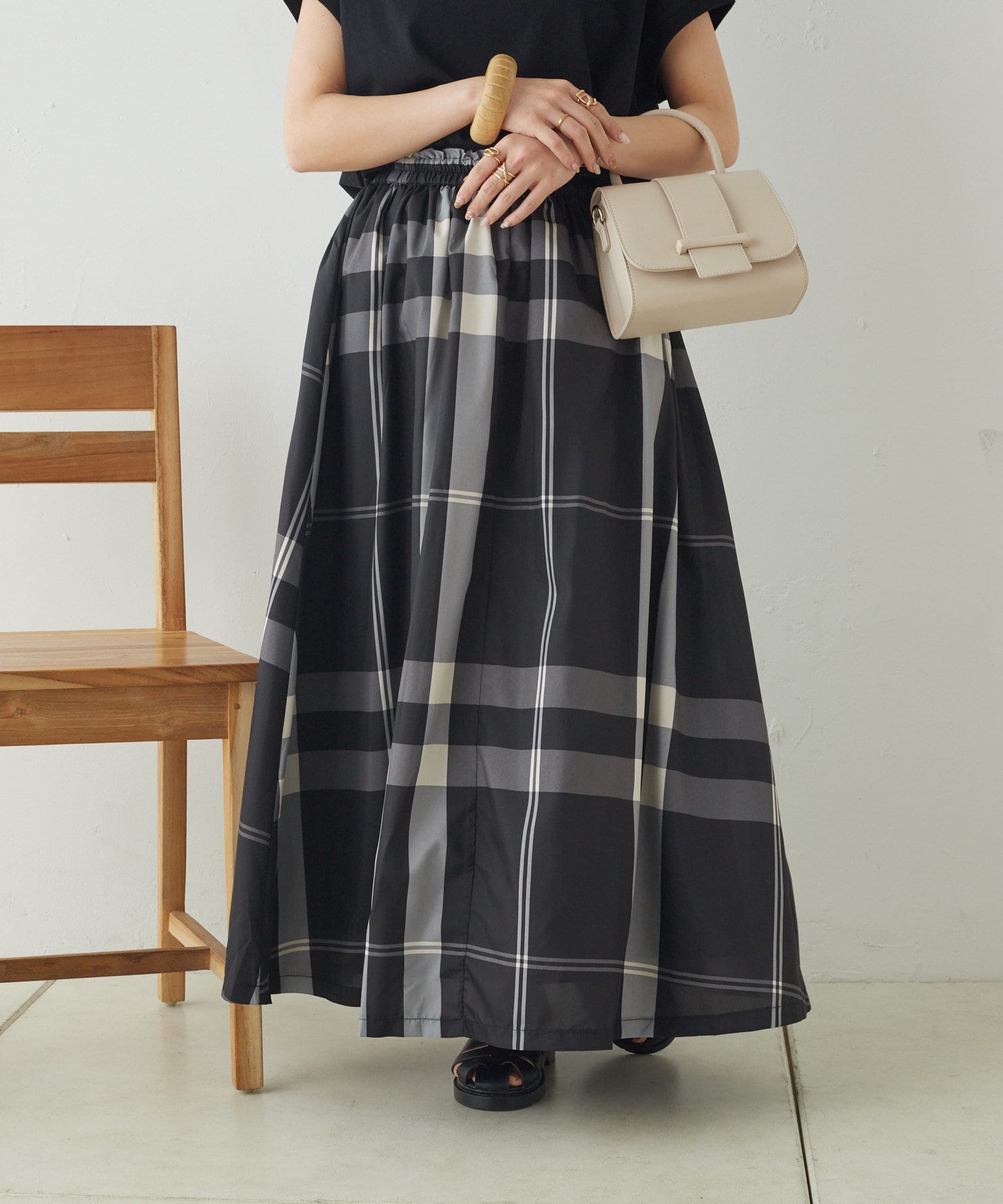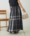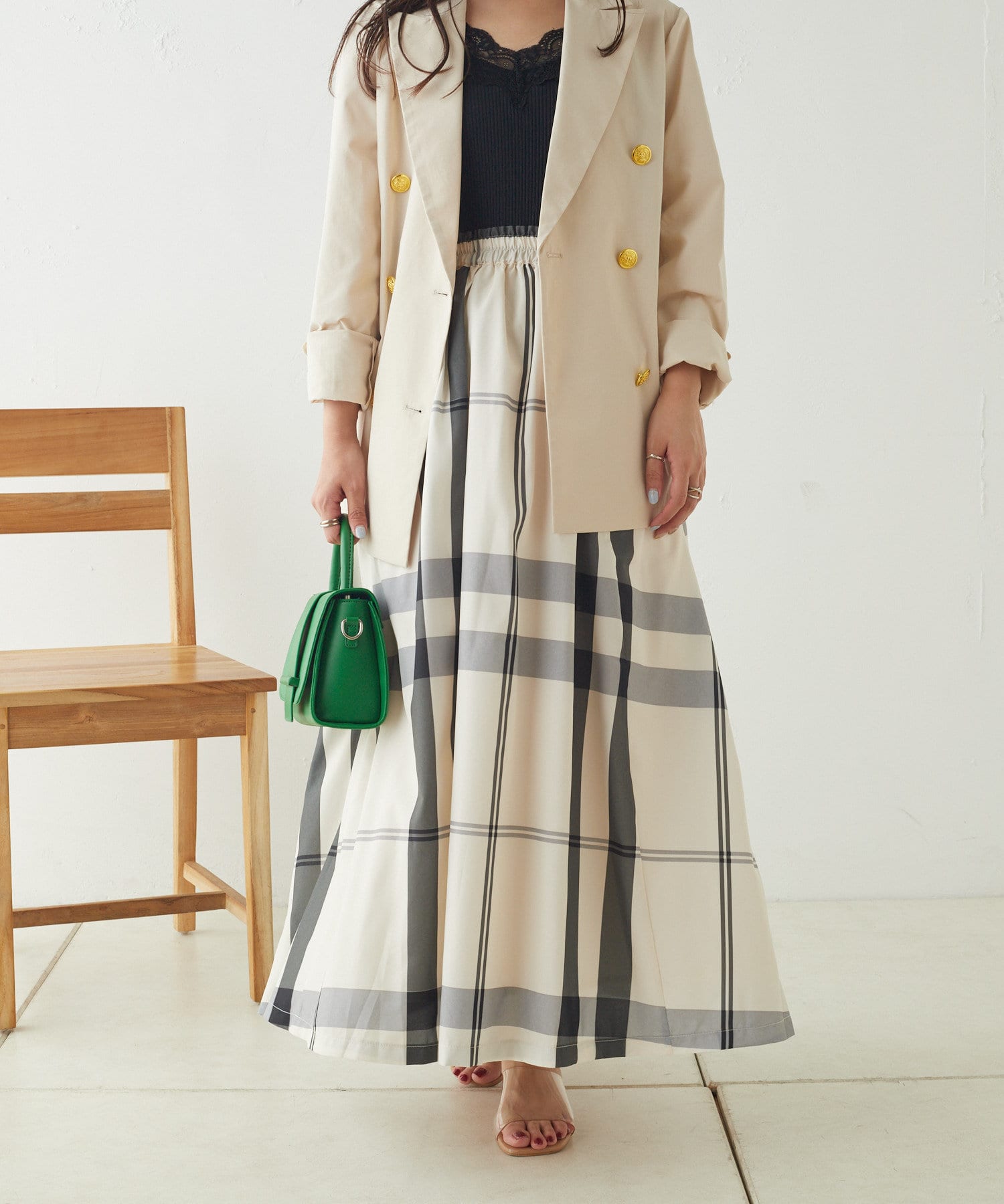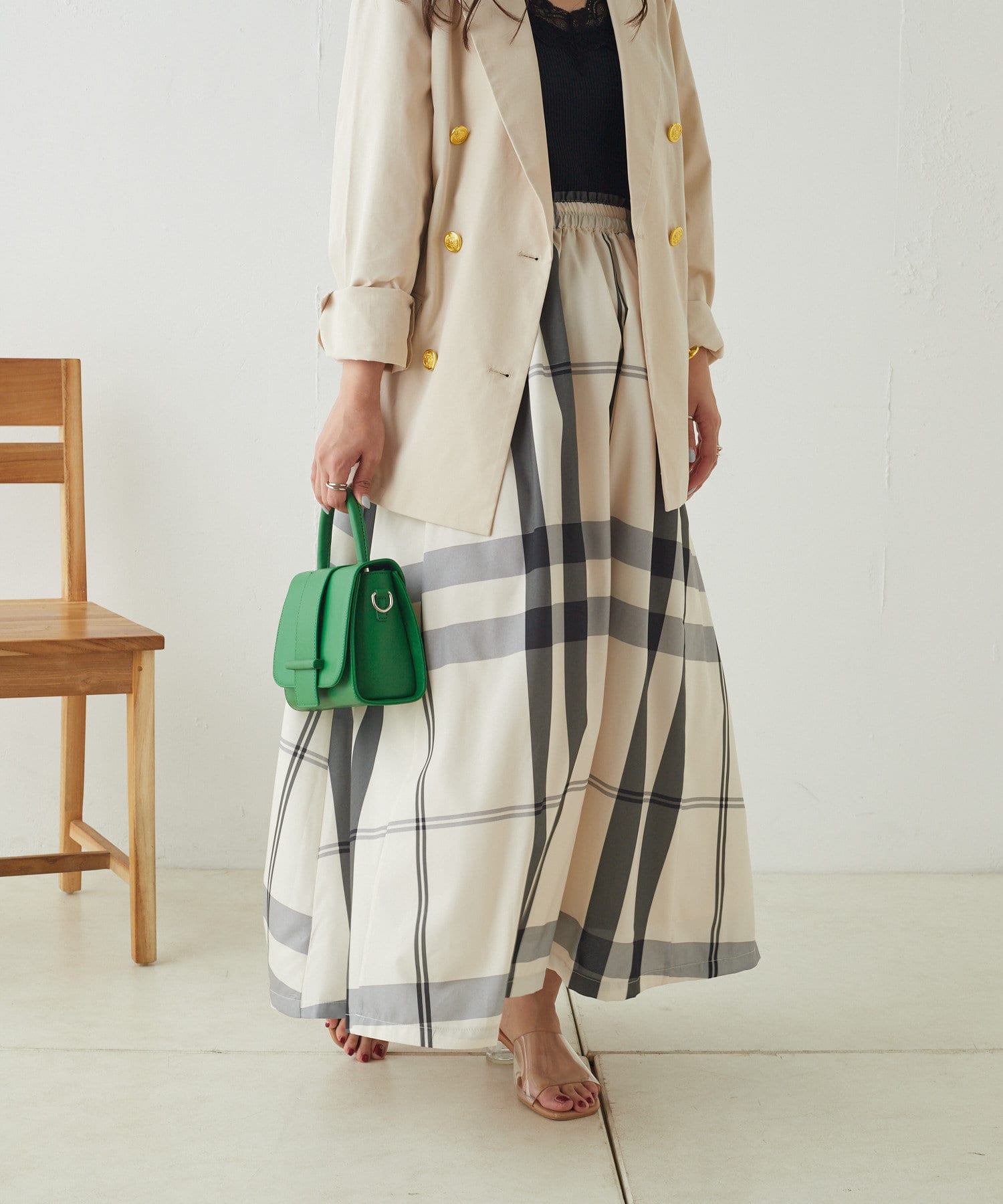 大柄のチェックが目を惹く、大人カジュアルなフレアスカート