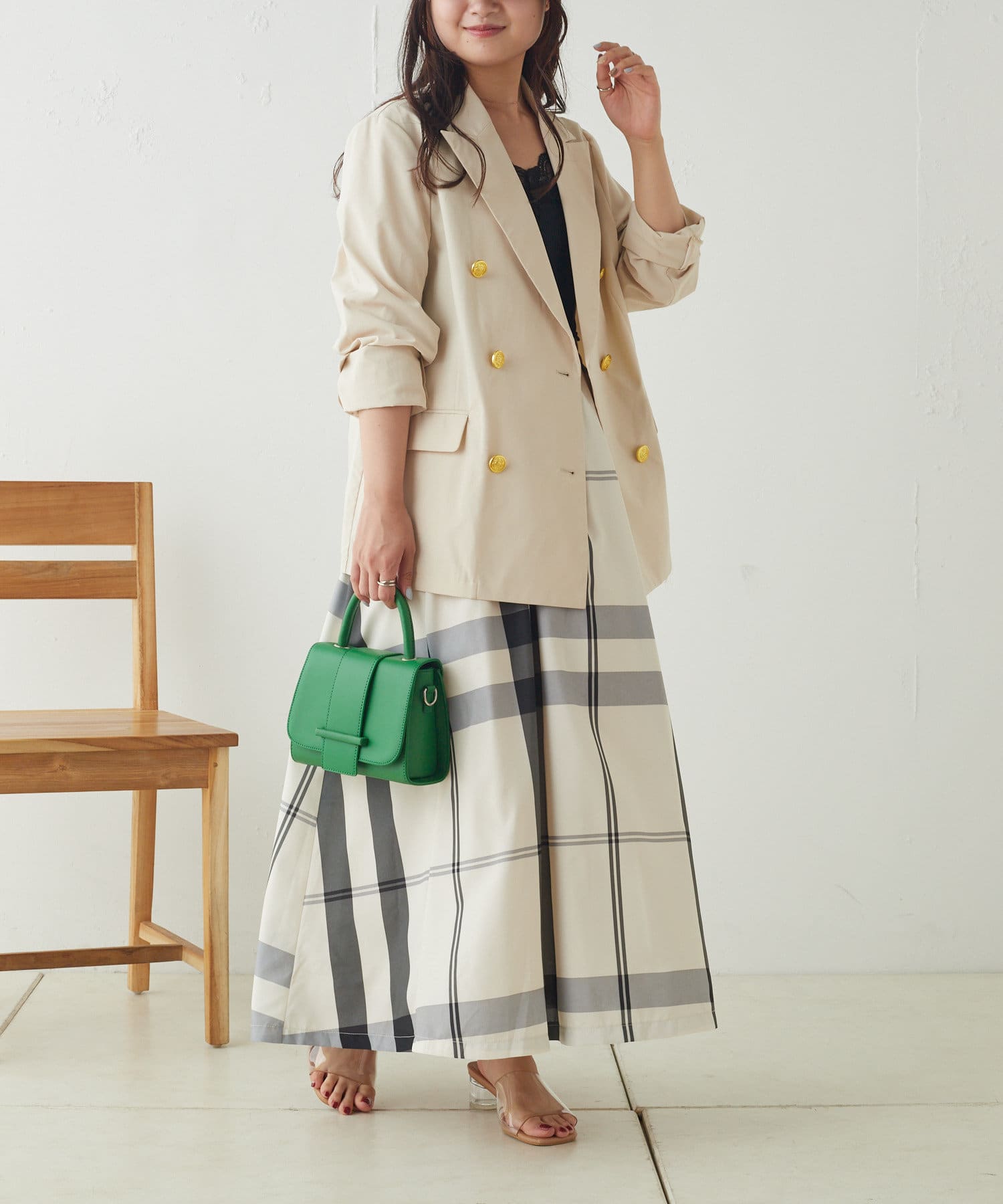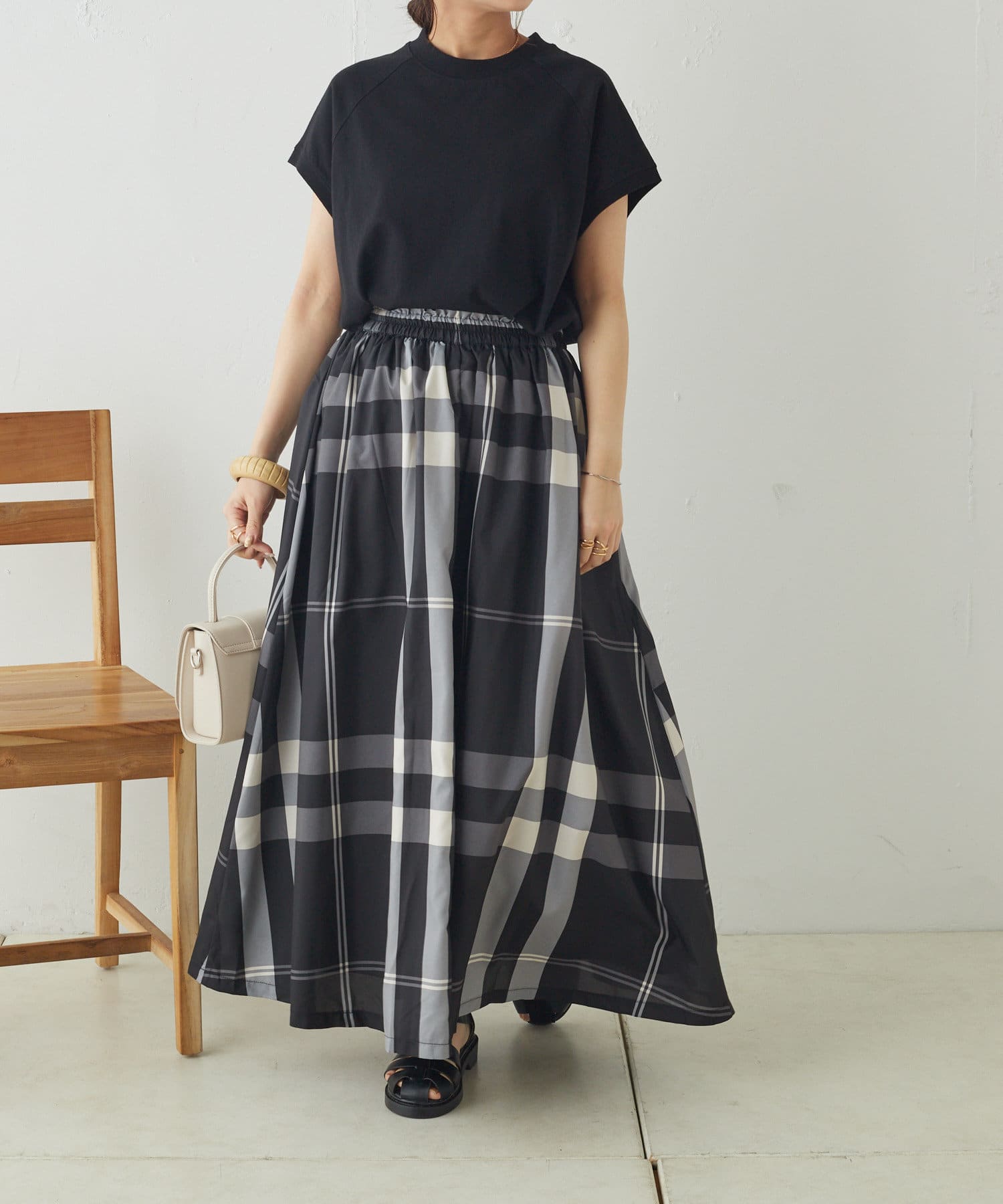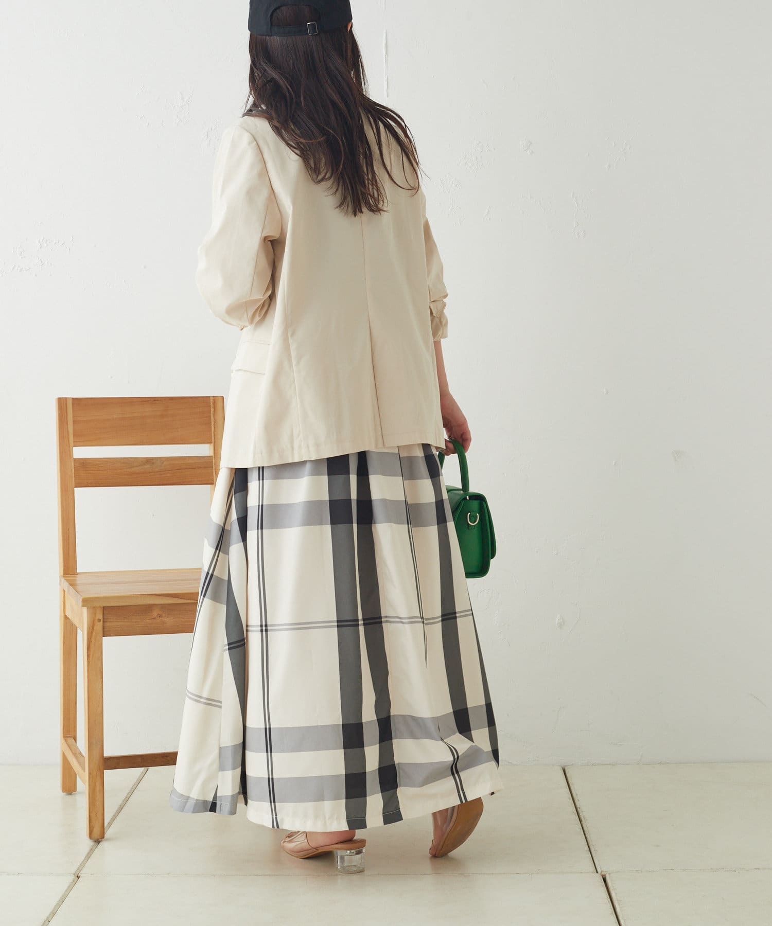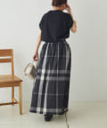 大柄のチェックが目を惹く、大人カジュアルなフレアスカート