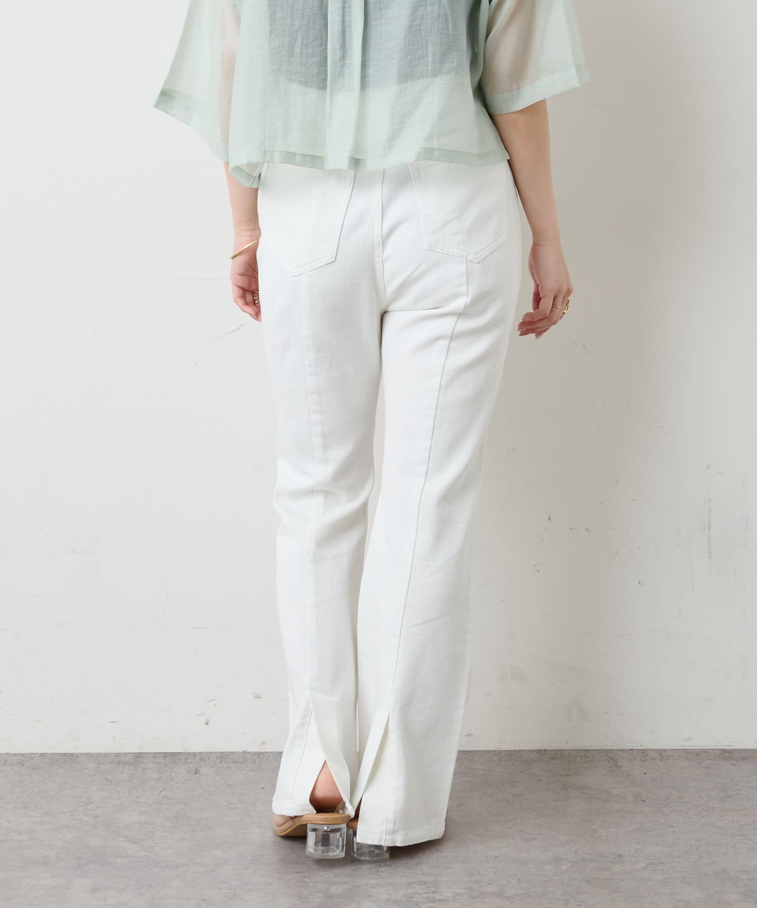 ・程よいフレアシルエットとバックスリットを施した美脚シルエットなパンツ。