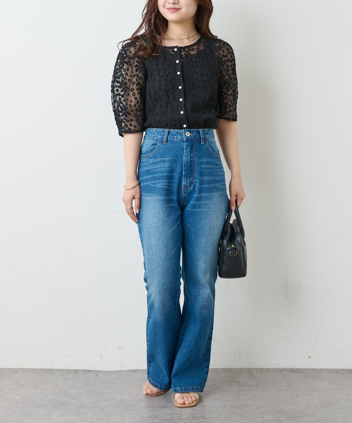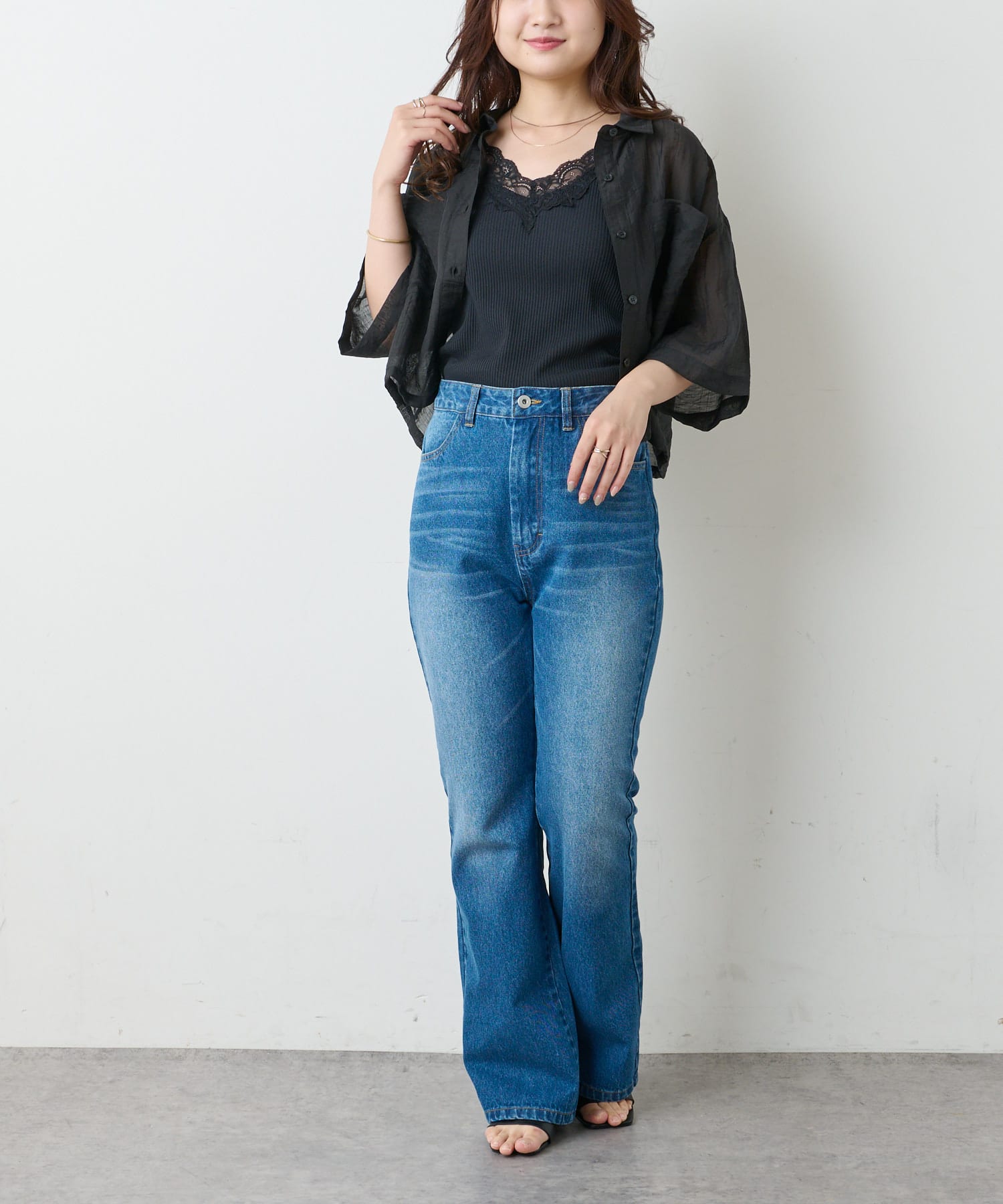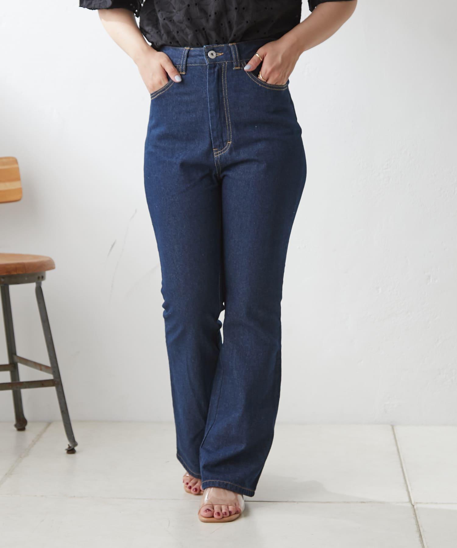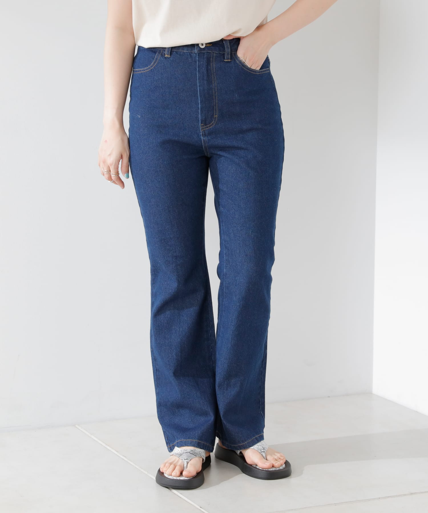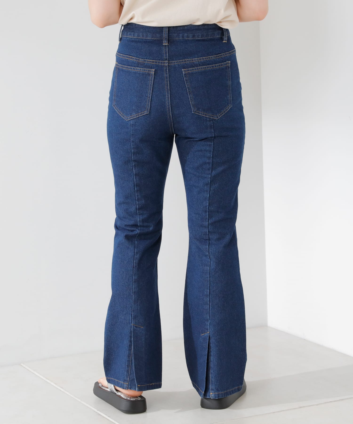 【Sサイズあり】後ろスリットデニムフレアパンツ