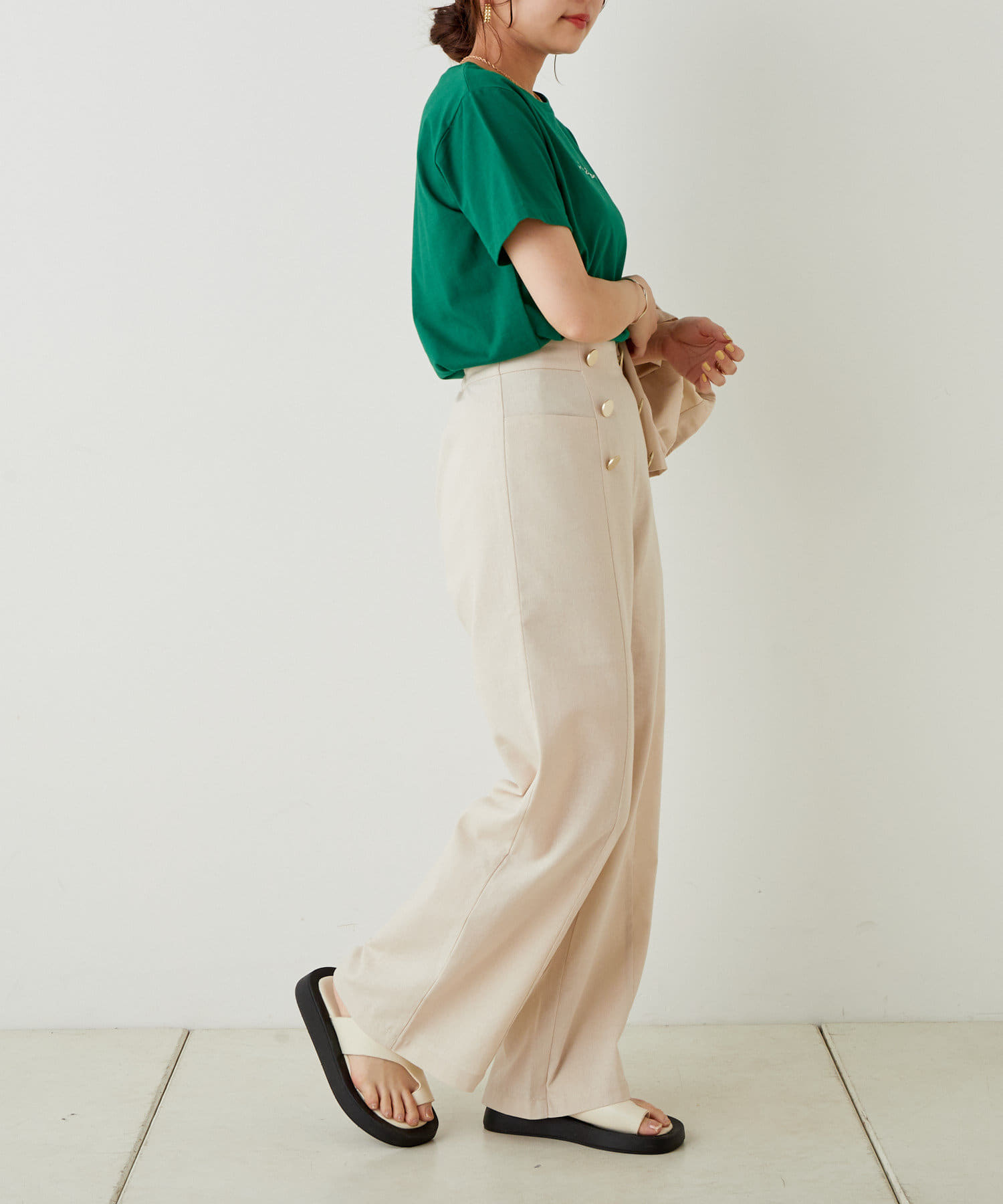 ・程よいワイドシルエットですらっとした立ち姿が美しい、ストレートワイドパンツ。