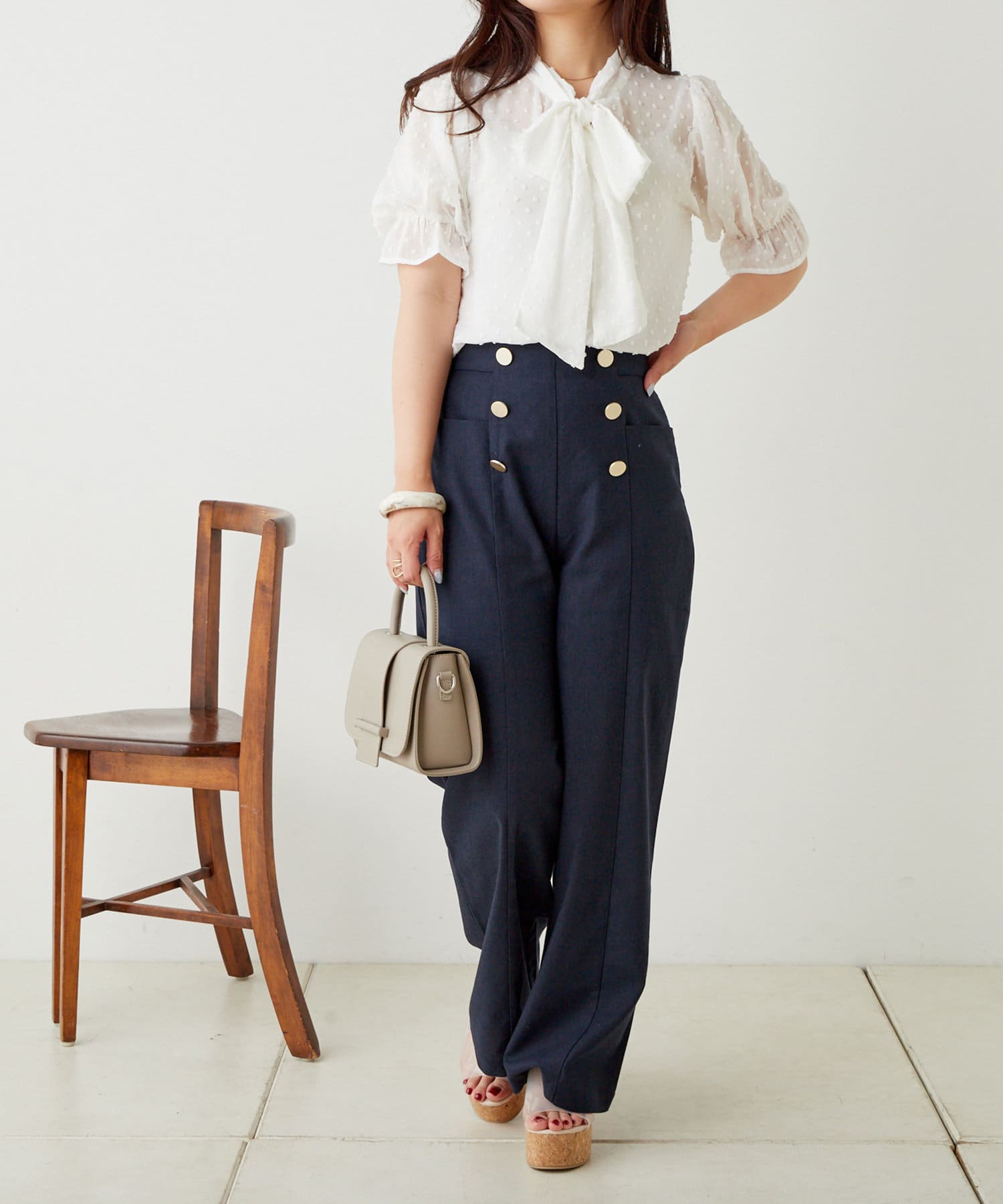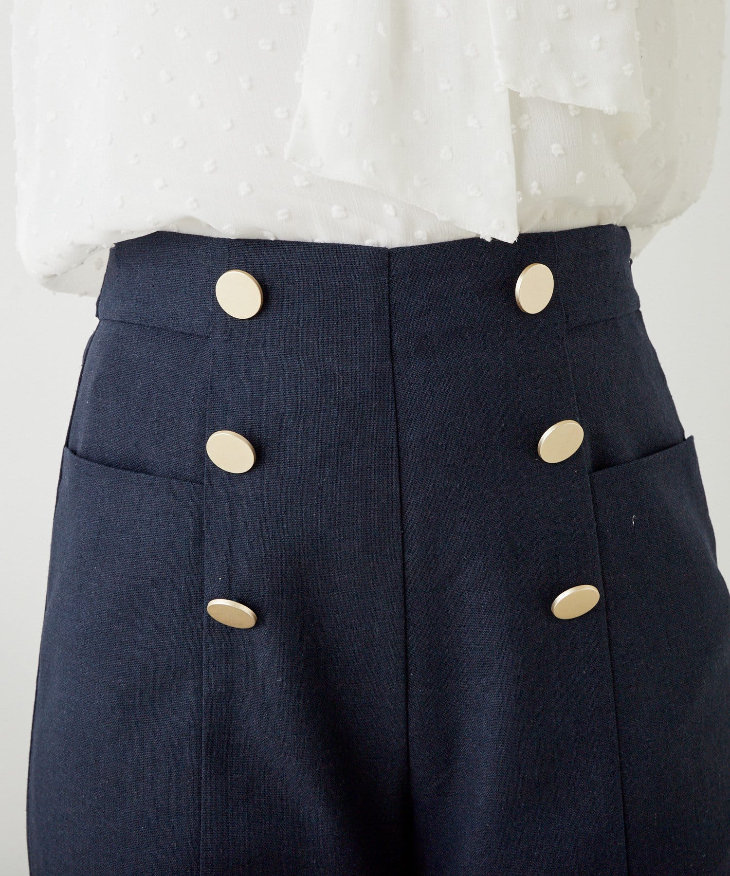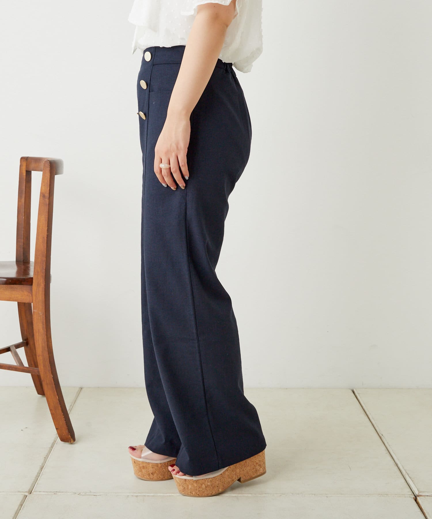 ・フロントのボタンがポイントのマリンパンツ。