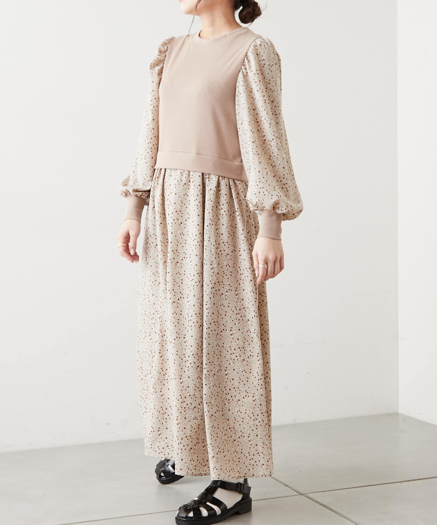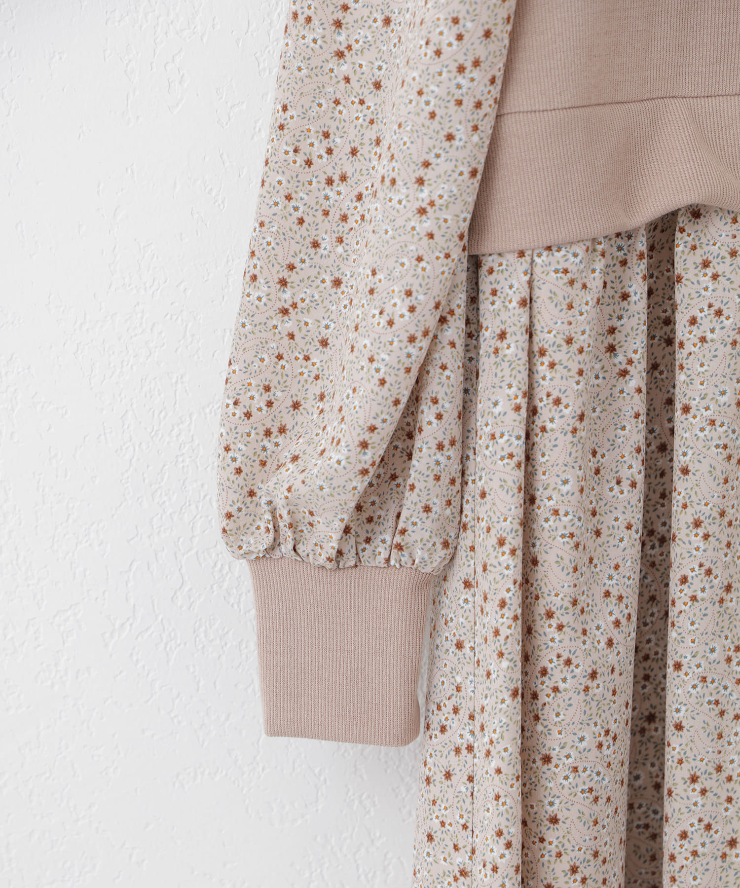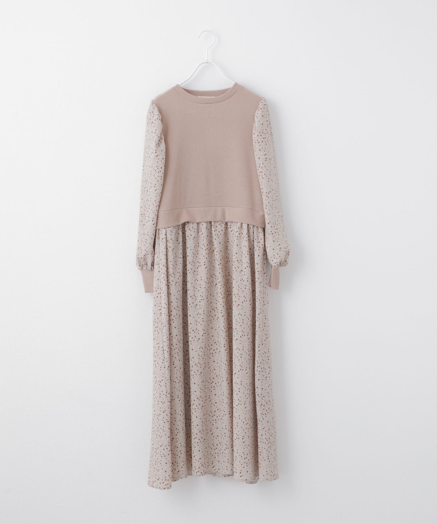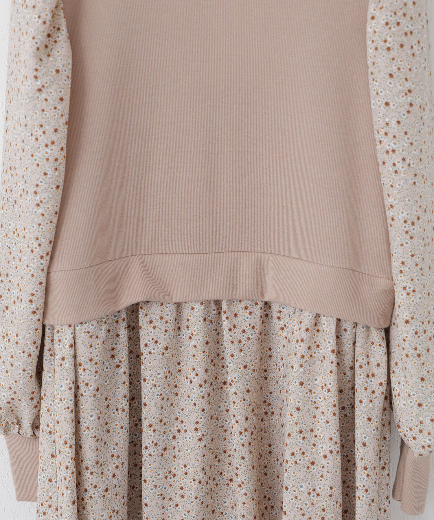 リブ花柄ドッキングワンピース