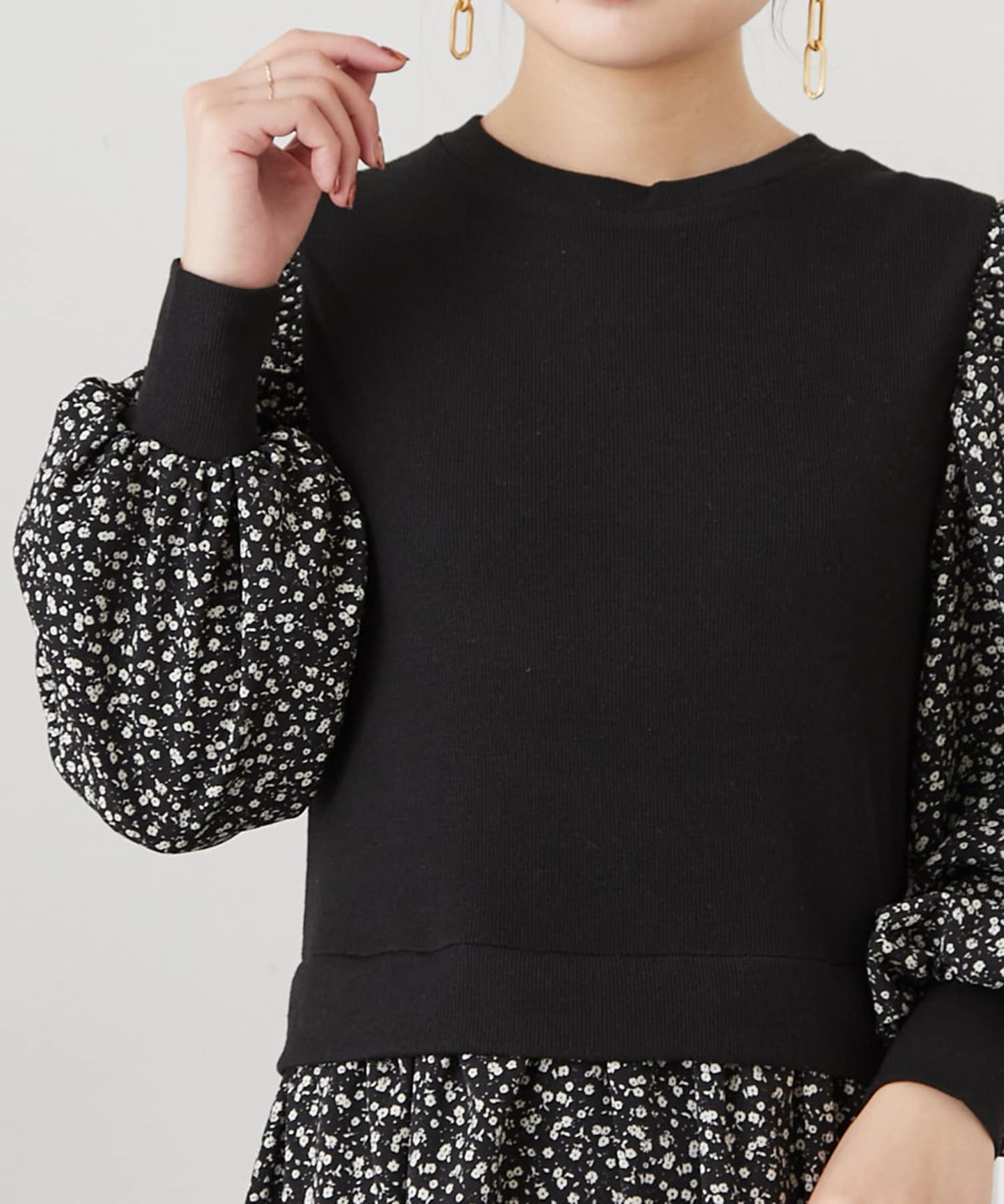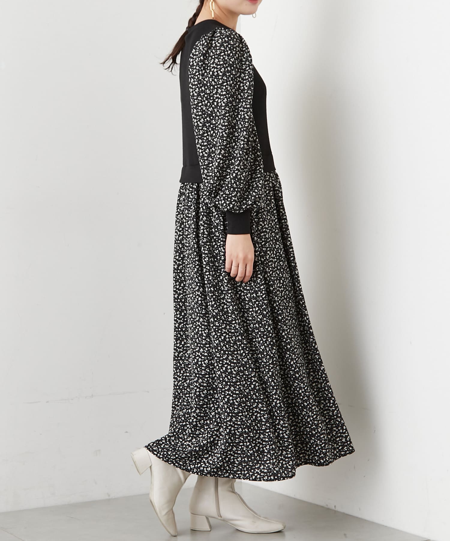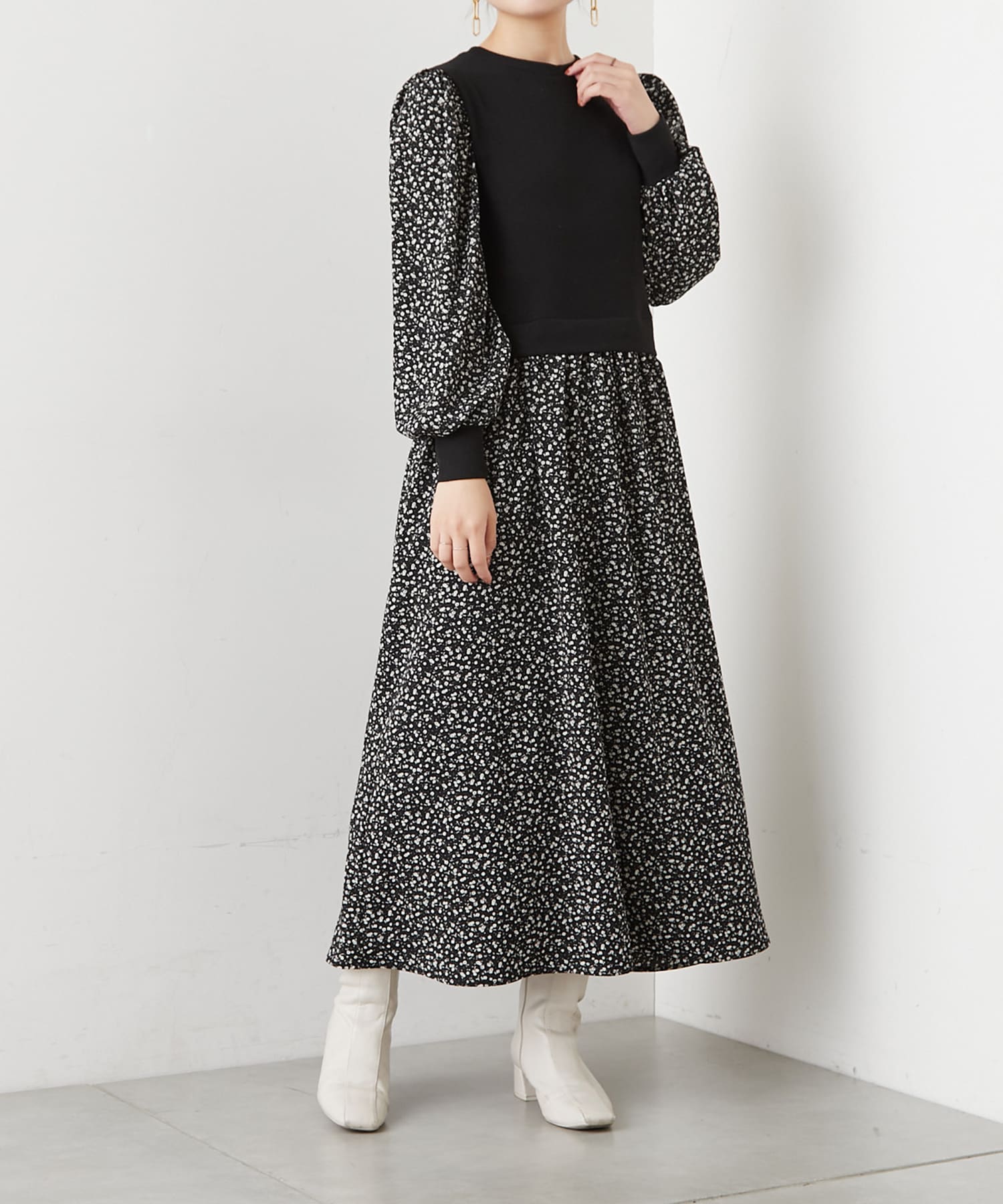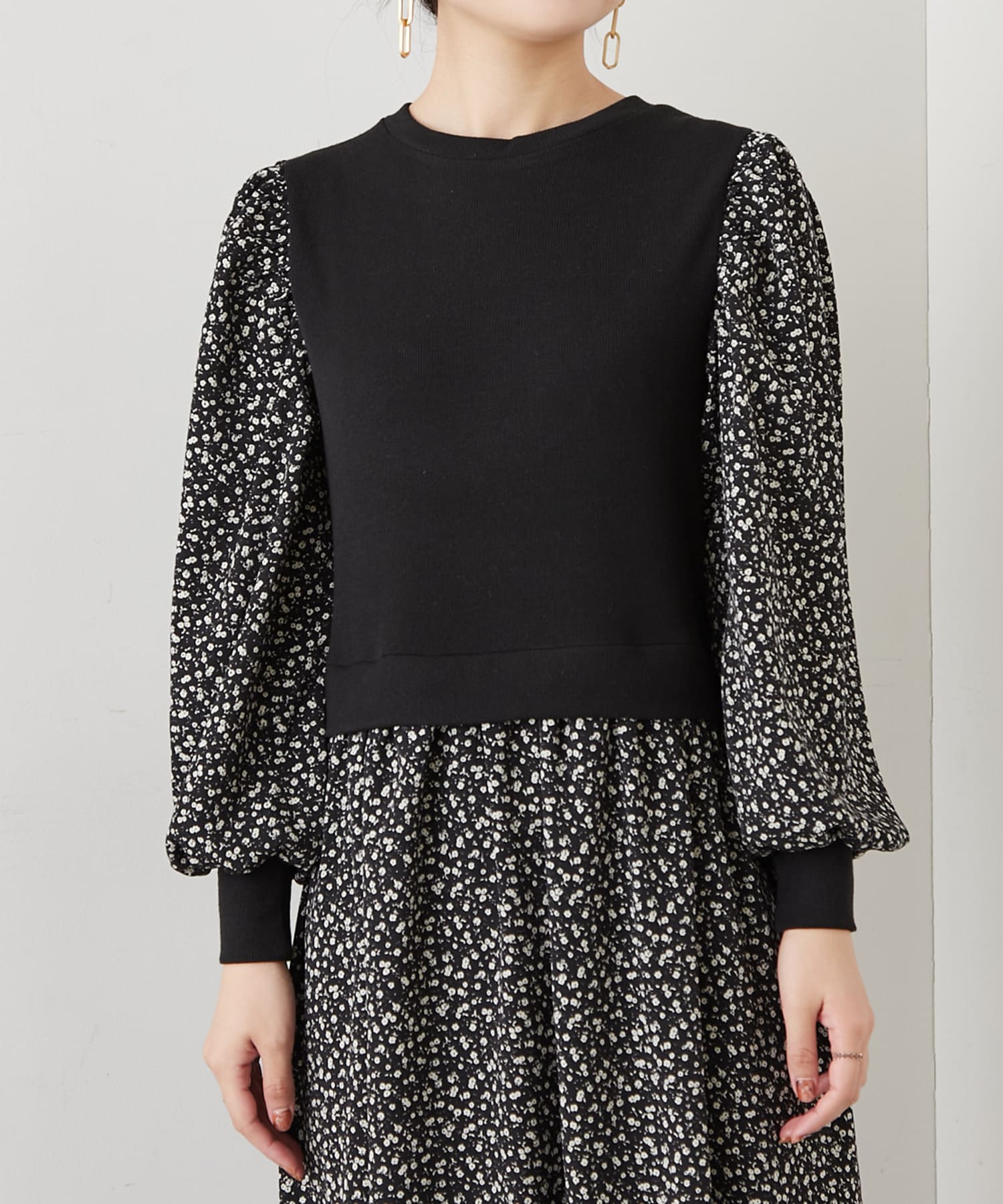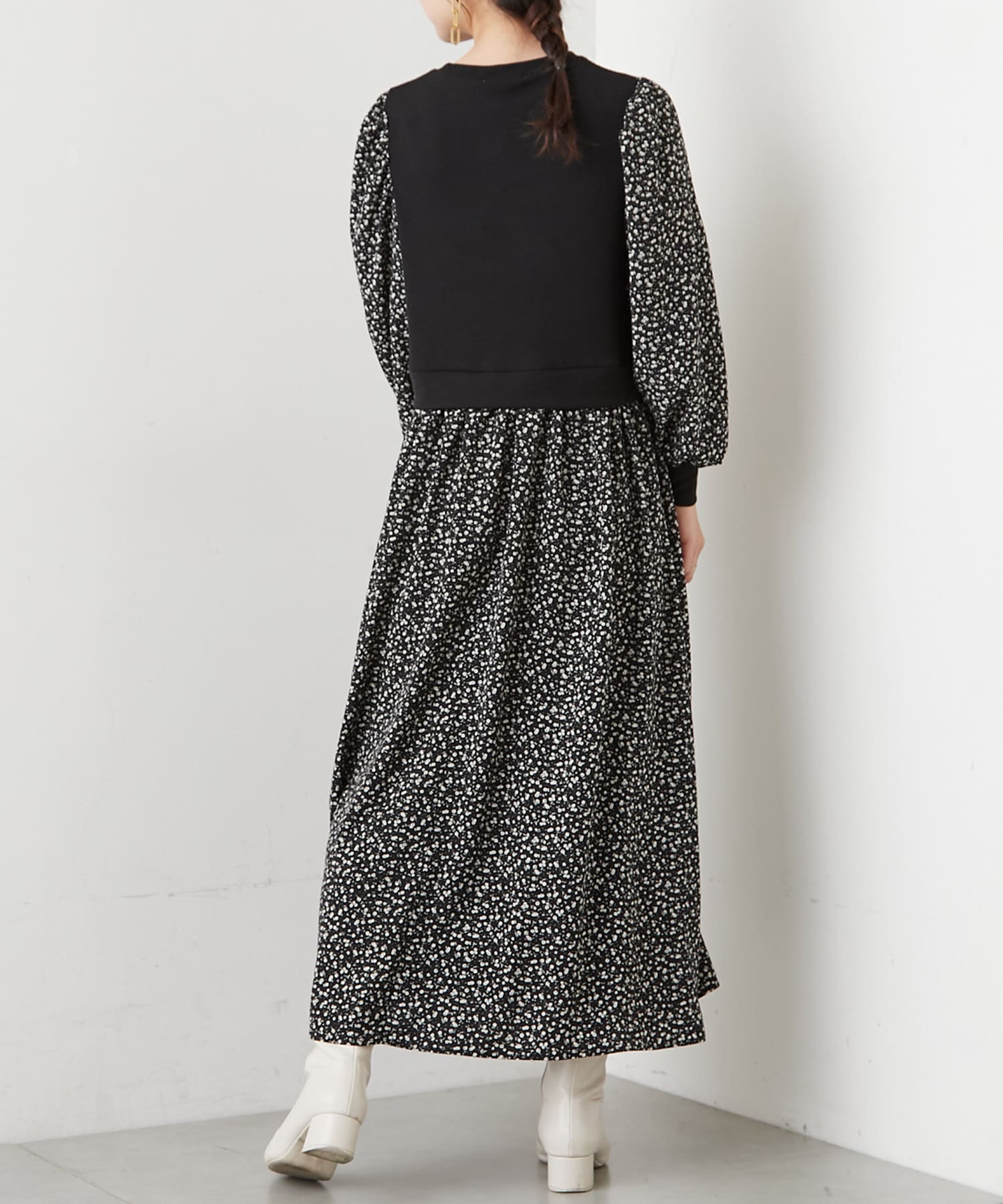リブ花柄ドッキングワンピース