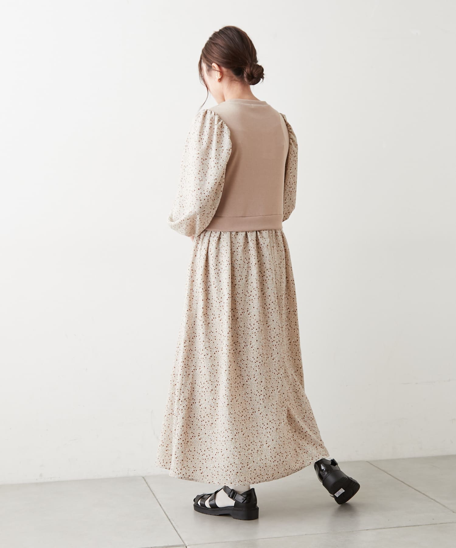 1枚でコーデが完成するドッキングワンピースが春仕様で花柄に。