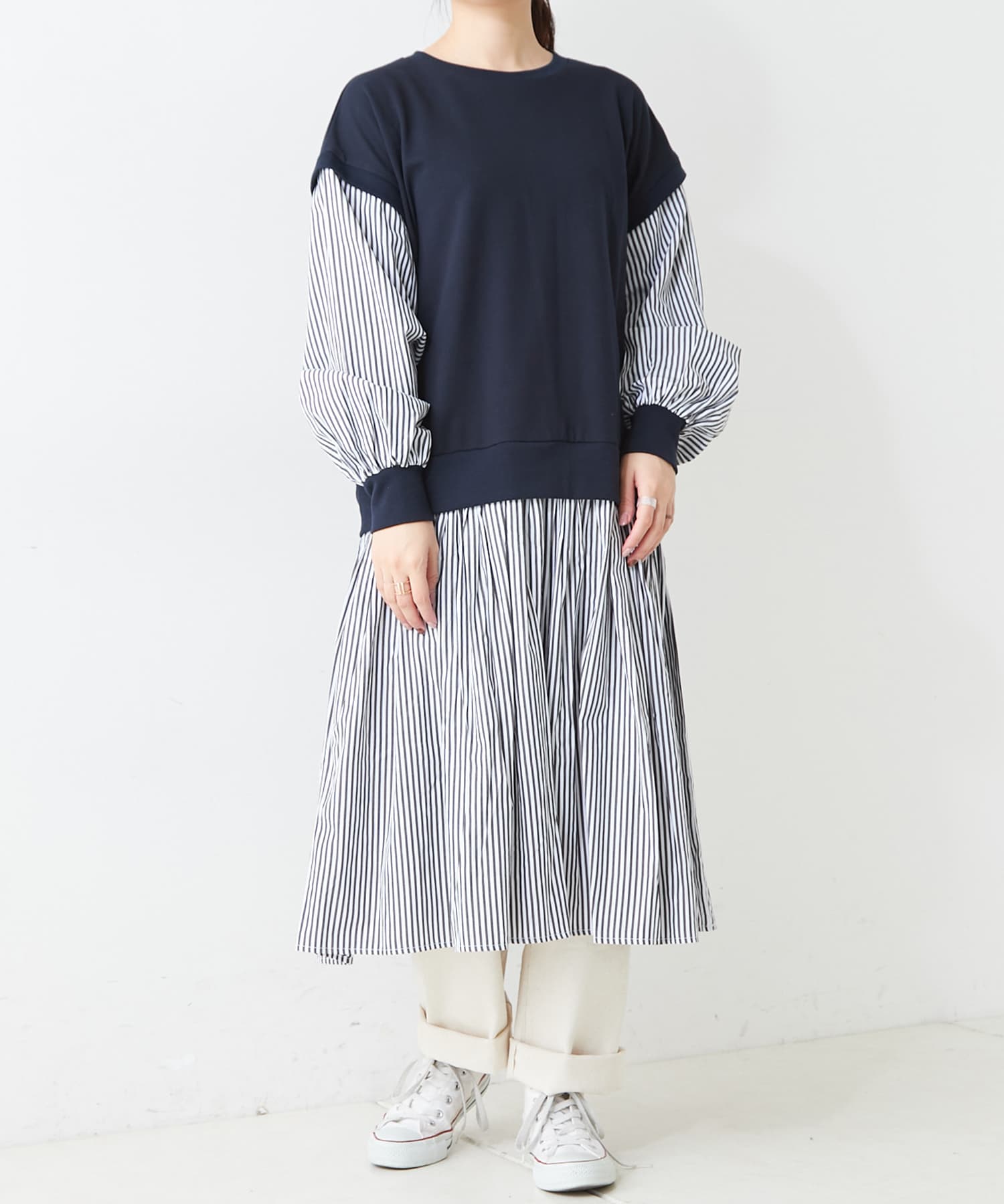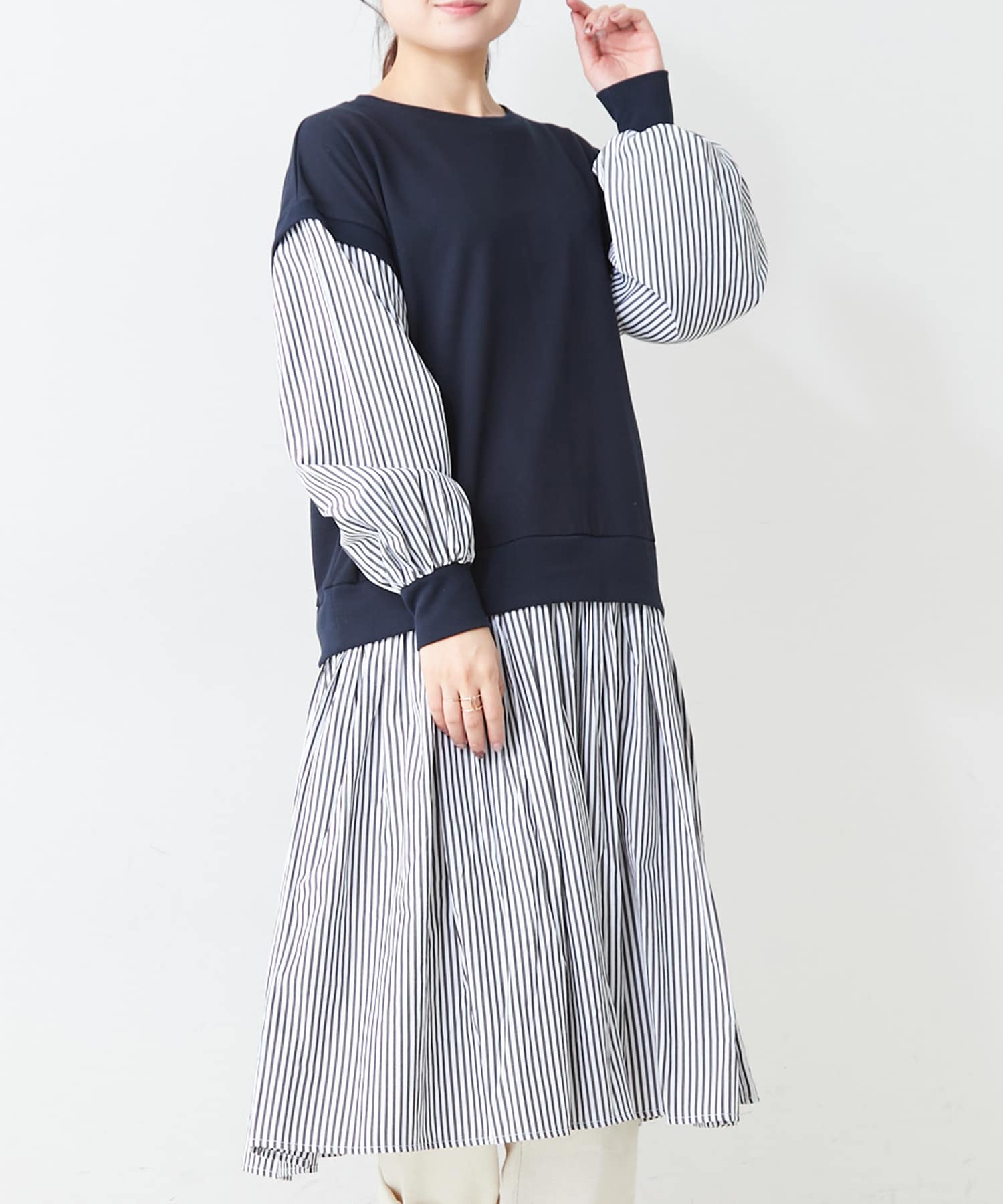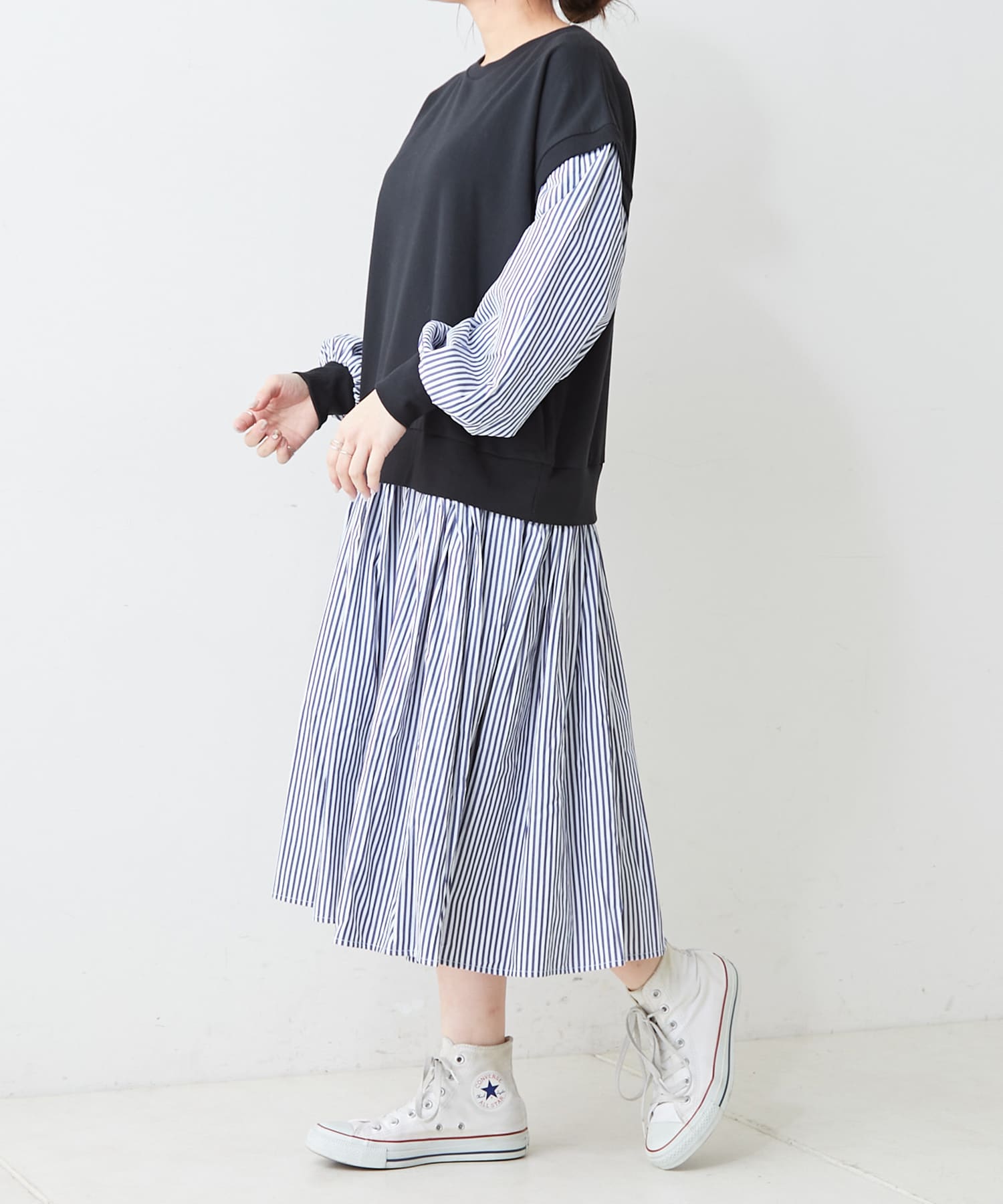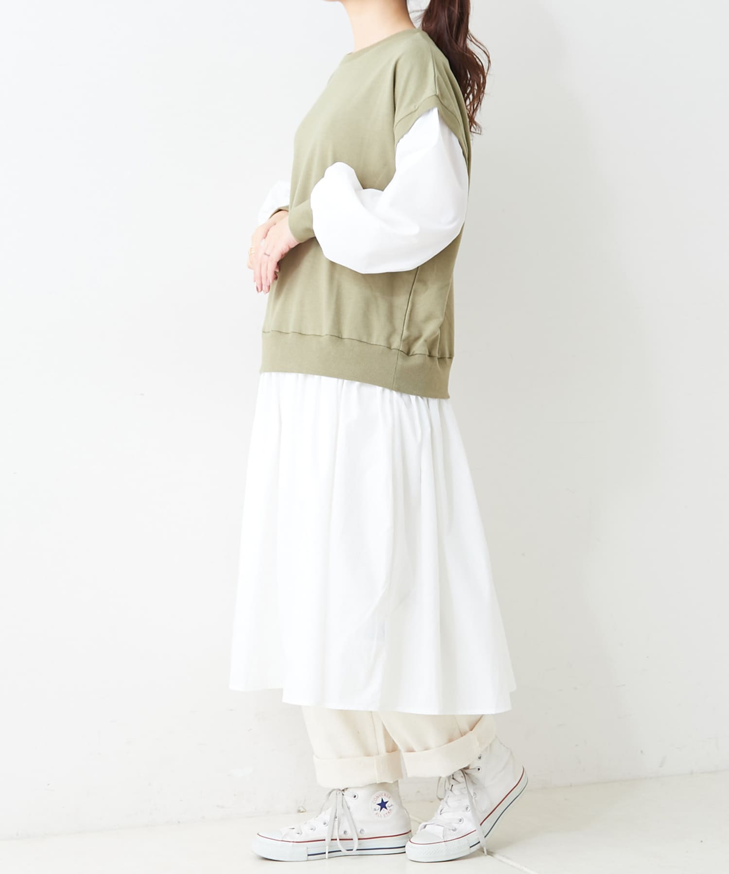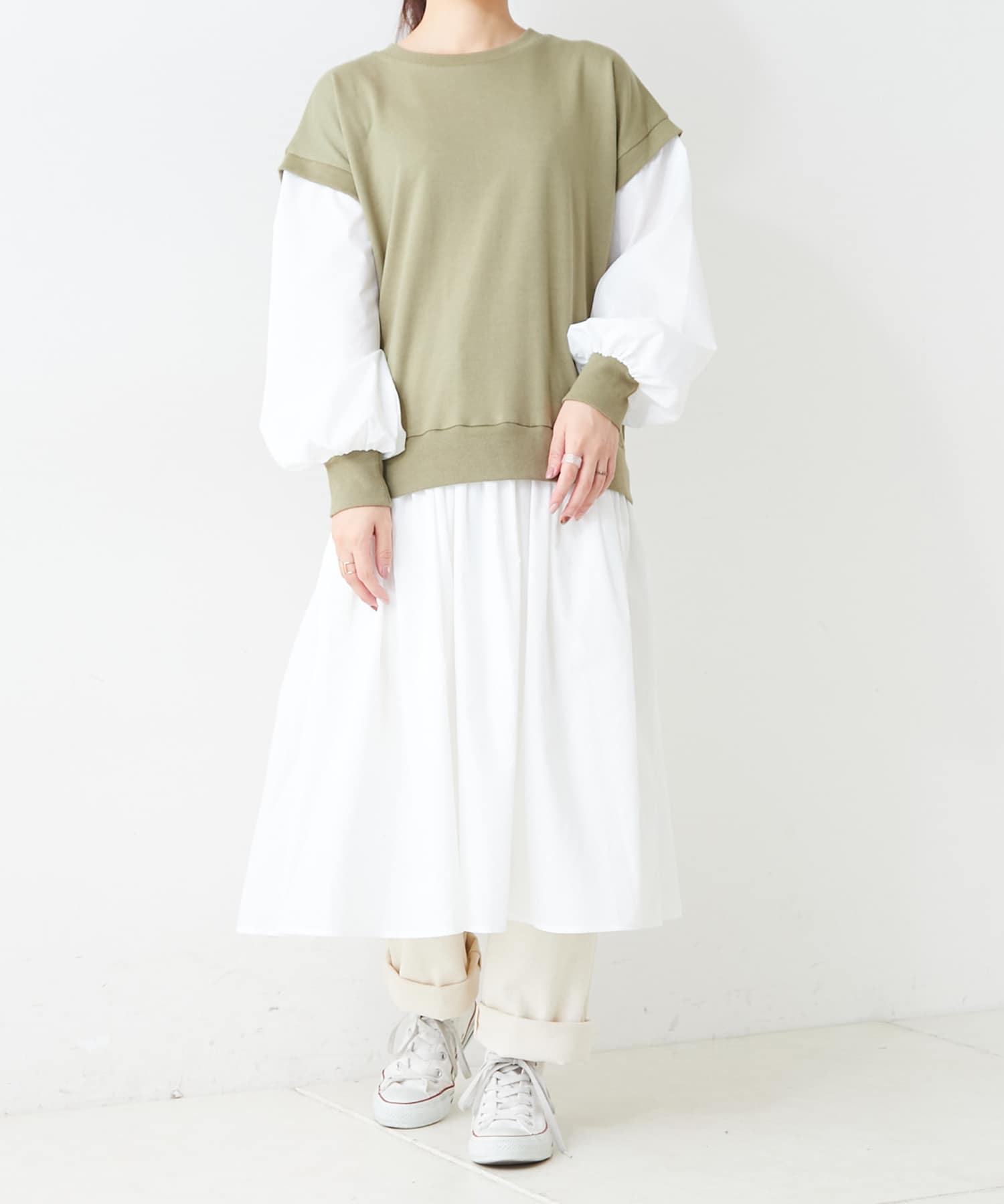 ・袖とスカートのボリュームが女性らしく、1枚でコーデが完成する万能アイテム。