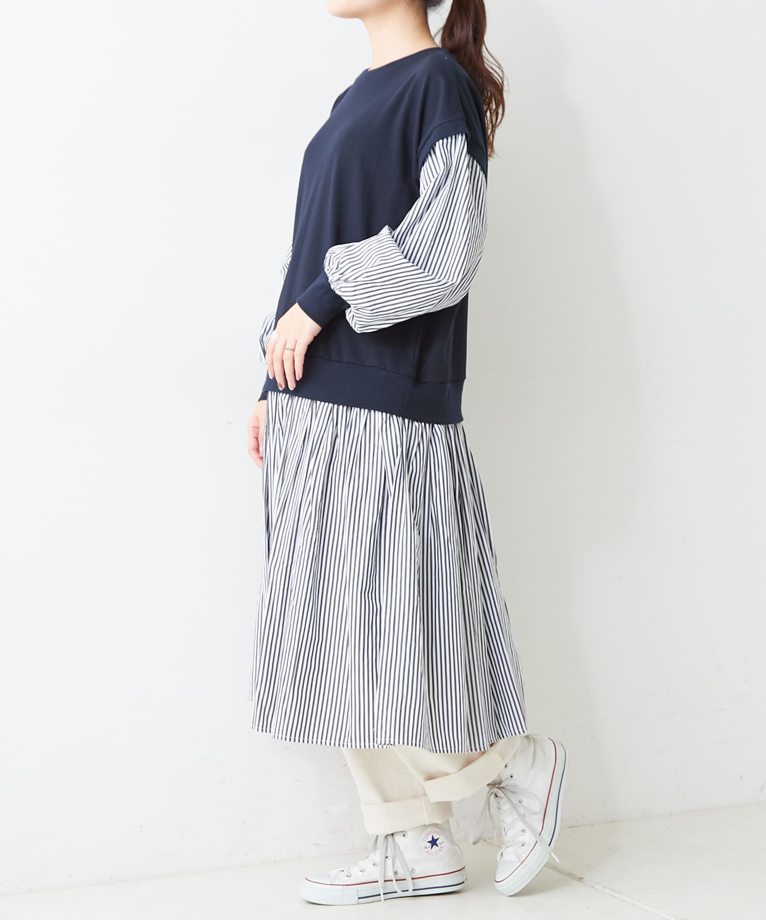 ・春夏の季節はワンピースとしてサラリと着こなして頂くのも◎秋ならロングブーツを合わせるのも!小物によって着こなしを変えて楽しめるアイテムです。