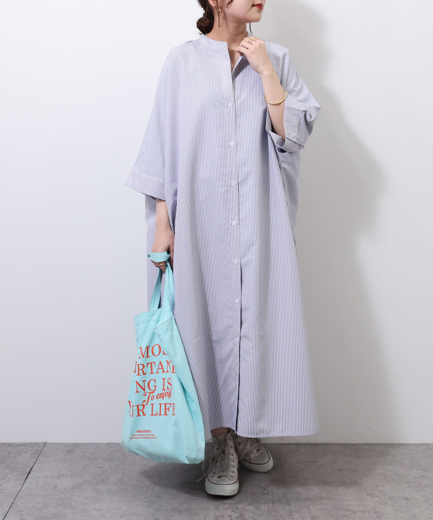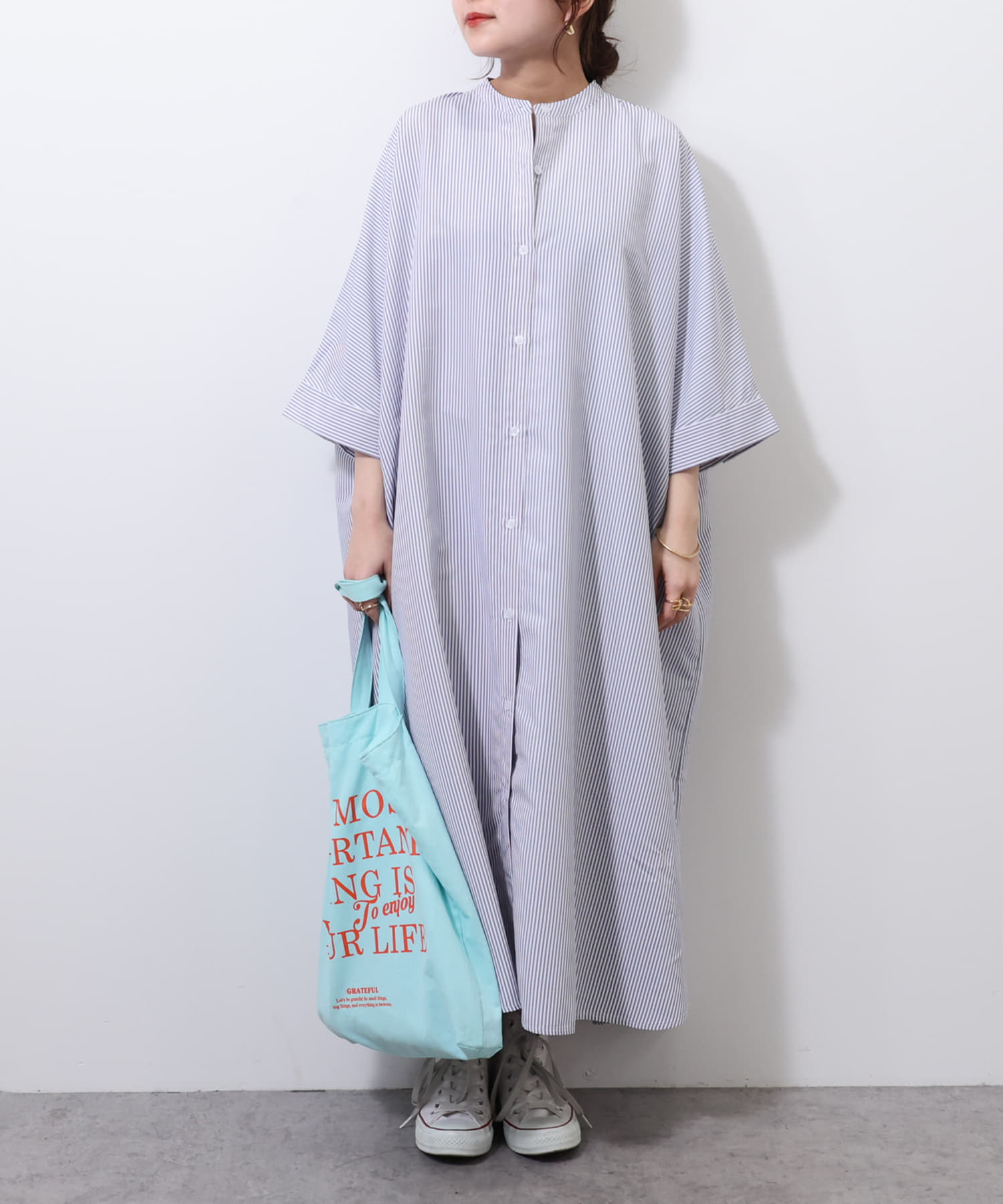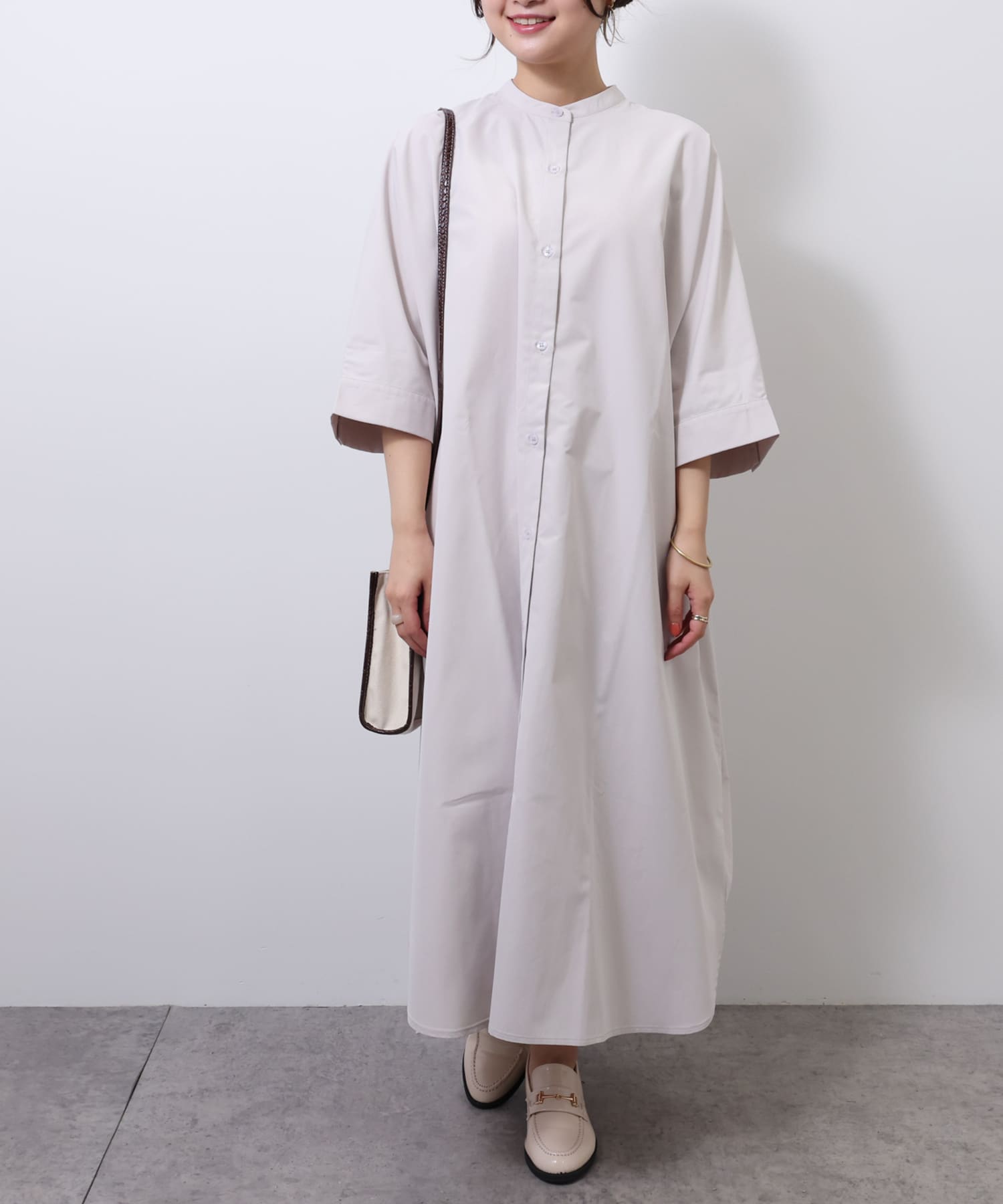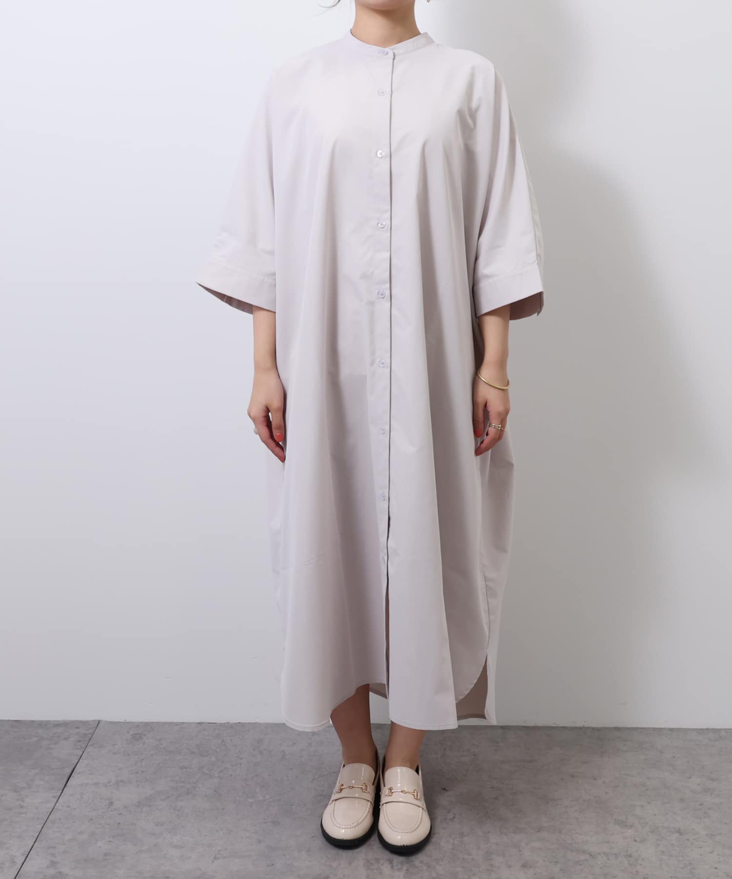 バンドカラーシャツワンピース