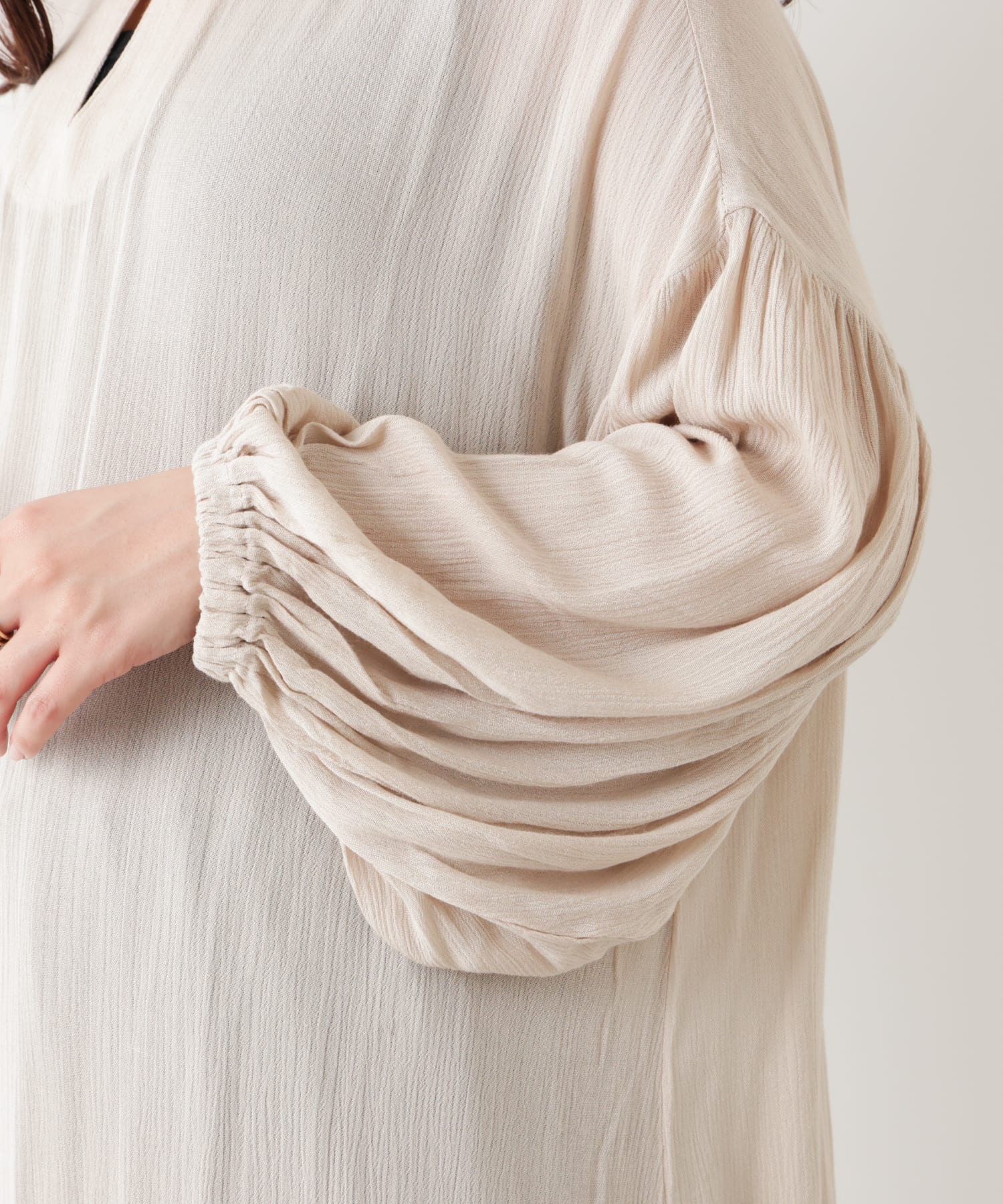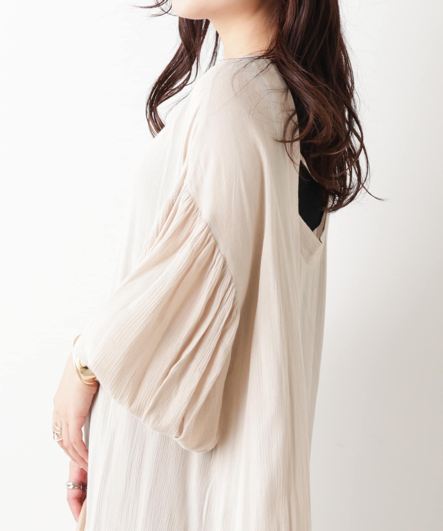 ・ボリューム袖で華奢見えするデザインに。