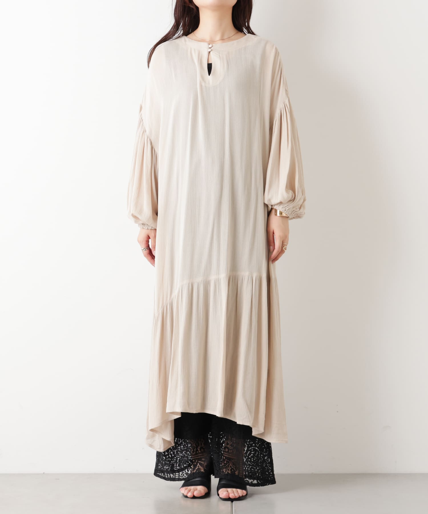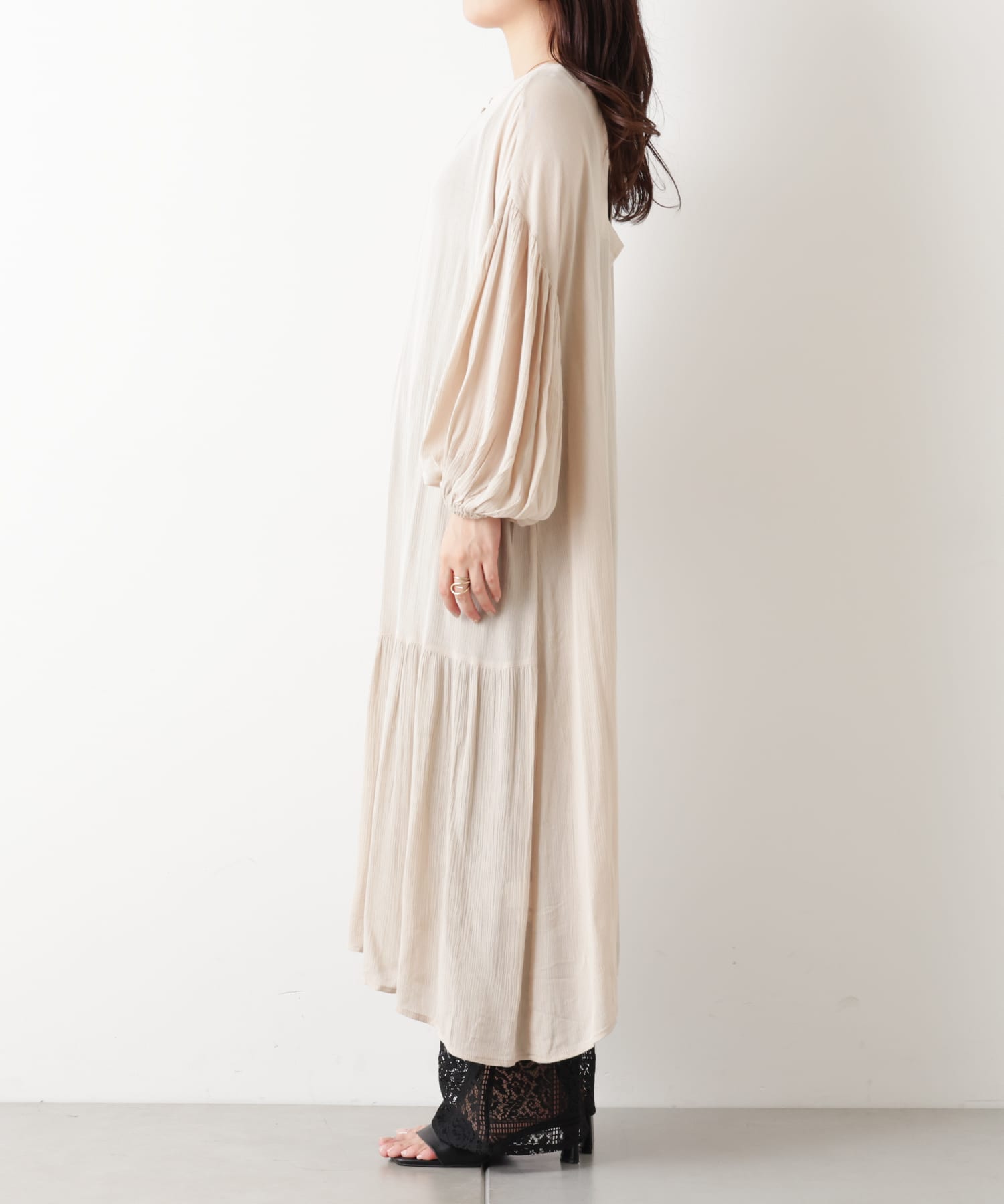 ・裾はあえてティアード切替をラウンドにすることでアクセントをプラスしました。